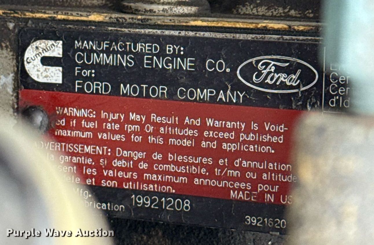 1993 Ford F700 dump flatbed truck. Miles: 52,656 on odometer, Hours: 6,302 on meter, VIN: 1FDWK74C3PVA23041. Engine Cummins B5.9-190, Displacement: 5.9L, Cylinders: 6, Fuel type: Diesel. Transmission Automatic. Chassis Axles: Single, Suspension: Spring, Brakes: Air, GVWR: 24,800 lbs, Wheelbase: 154". Interior Heat. Features Dump flatbed 12' L x 96" W, Ram: Single, Removable sides. Tires Size: 9R22.5. Notes Bed rust damage. Oklahoma classic title. Seller is an Oklahoma licensed motor vehicle dealer. Title will be assigned and distributed by the dealer. Please contact the seller for distribution questions. Title distribution may be delayed up to 30 days from verification of funds. Collinsville, OK 74021