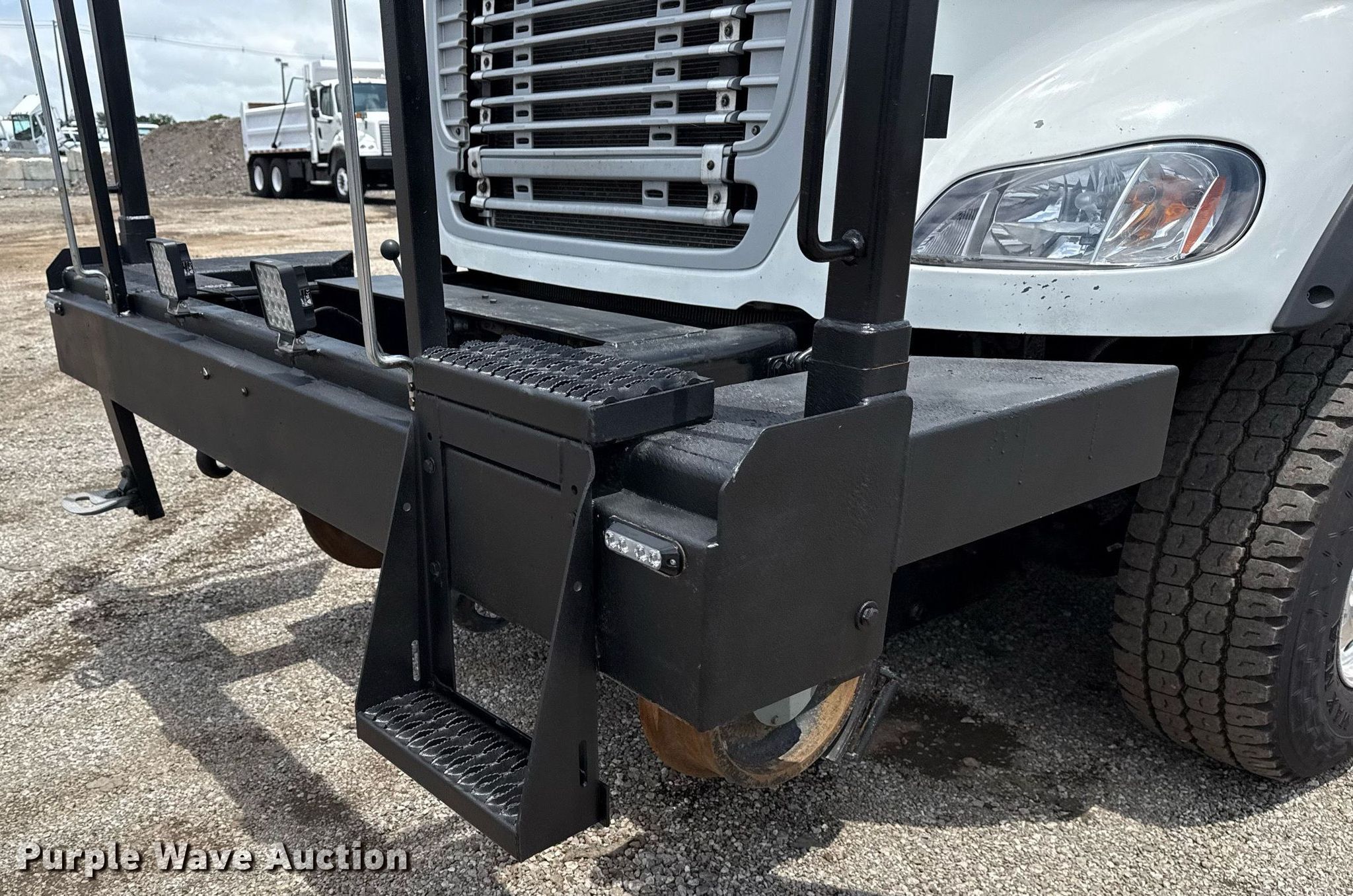 2012 Freightliner Business Class M2 grapple crane truck. Miles: 349,151 on odometer, Engine hours: 7,814 on meter, VIN: 1FVMC7DV9CHBP3665. Engine Detroit Diesel DD13, Cylinders: 6, Fuel type: Diesel, Engine brake. Transmission Eaton Fuller 8LL, Manual, Speed: 10. Chassis Hi-rail system, Axles: Triple, Pusher axle, Differential lock: Inter-axle, Suspension: Air, Brakes: Air, PTO. Interior AC, Heat, Heated mirrors, Cruise control. Features Flatbed 22' 6" L x 96" W, Crane 2011 Palfinger PRL260 Serial: 100142441, Boom Telescopic, Knuckle, Maximum boom length: 40' Sections: 1, Maximum lift capacity: 7,030 lbs, Boom controls Ground, Remote control, Lift chart. Tires Front: 385/65R22.5, Rear: 11R22.5, Lift axle: 275/80R22.5. Oklahoma title. Seller is an Oklahoma licensed motor vehicle dealer. Title will be assigned and distributed by the dealer. Please contact the seller for distribution questions. Title distribution may be delayed up to 30 days from verification of funds. Collinsville, OK 74021