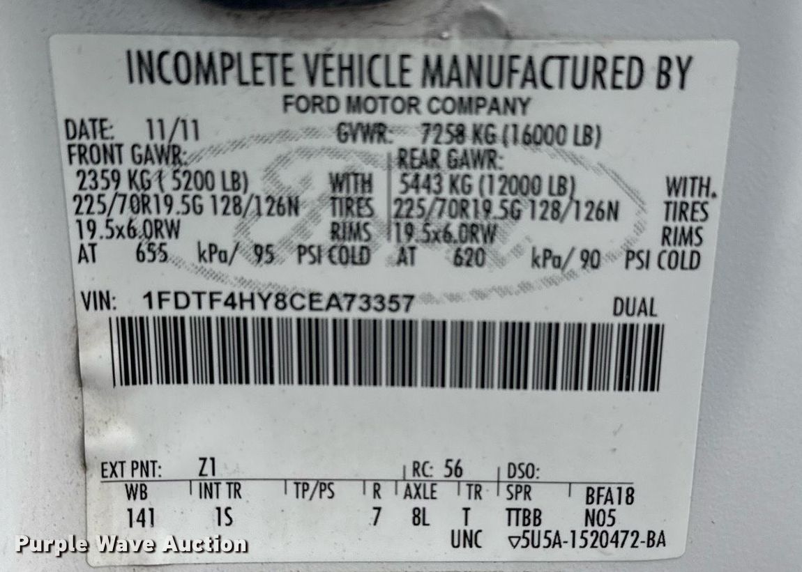 2012 Ford F450 Super Duty utility / service truck. Miles: 183,932 on odometer, VIN: 1FDTF4HY8CEA73357. Engine Displacement: 6.8L, Cylinders: 10, Fuel type: Gas. Transmission Automatic. Chassis Four wheel drive, Axles: Single, Suspension: Spring, Brakes: Hydraulic, GVWR: 16,000 lbs, Wheelbase: 141". Interior AC, Heat, Cruise control, Auxiliary controls, Brake controller. Features Bed BrandFX, 8' L x 94" W, Generator Pelsue, Hours: 160 on meter, Engine Cylinders: 4, Fuel type: Diesel.. Tires Size: 225/70R19.5. Notes Dash warning indicator: ABS, Brake, Traction control. Oklahoma title. Seller is an Oklahoma licensed motor vehicle dealer. Title will be assigned and distributed by the dealer. Please contact the seller for distribution questions. Title distribution may be delayed up to 30 days from verification of funds. Collinsville, OK 74021