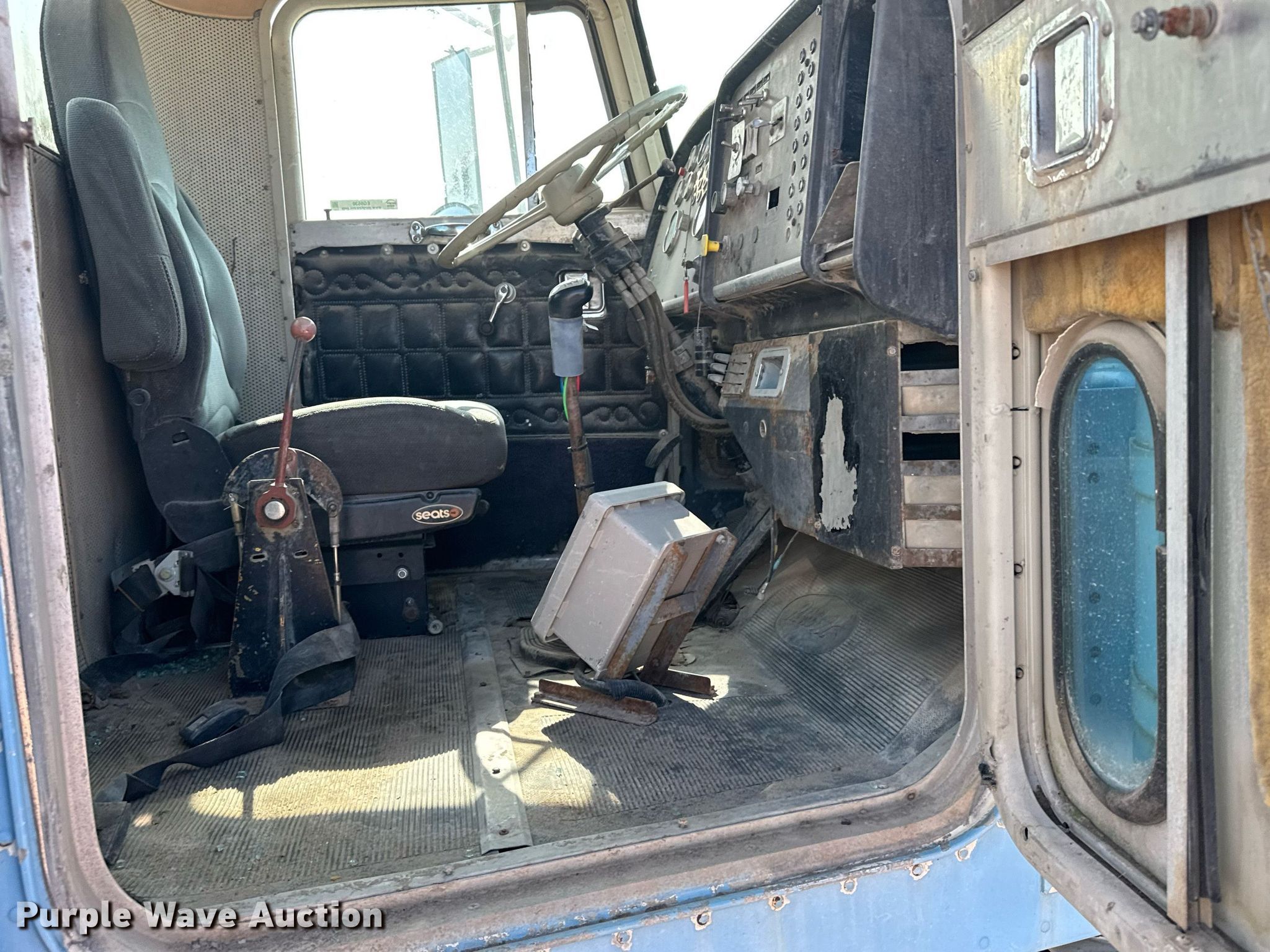 1978 Peterbilt 348M ready mix truck. Miles: 81,582 on odometer, VIN: 102526P. Engine Cylinders: 6, Fuel type: Diesel. Transmission Manual, Speed: 8. Chassis Axles: Tandem, Differential lock: Inter-axle, Suspension: Spring, Brakes: Air, Front mount PTO. Interior Heat. Features Mixer McNeilus, Capacity: 8 cu.yd., Discharge: Rear, In-cab controls, Rear drum controls, Water tank capacity: 125 gallons, Chute Extensions: 3, Chute type: Steel.. Tires Front: 385/65R22.5, Rear: 11R22.5. Nebraska title. Gordon, NE 69343