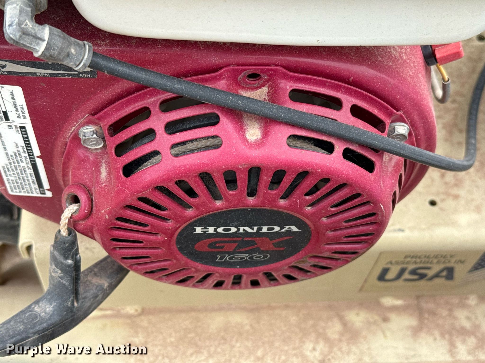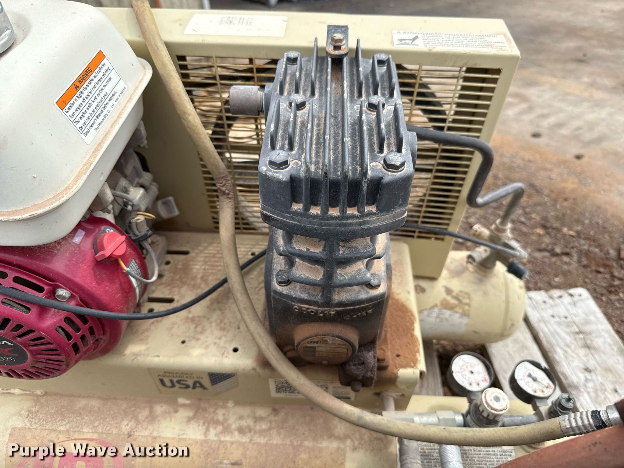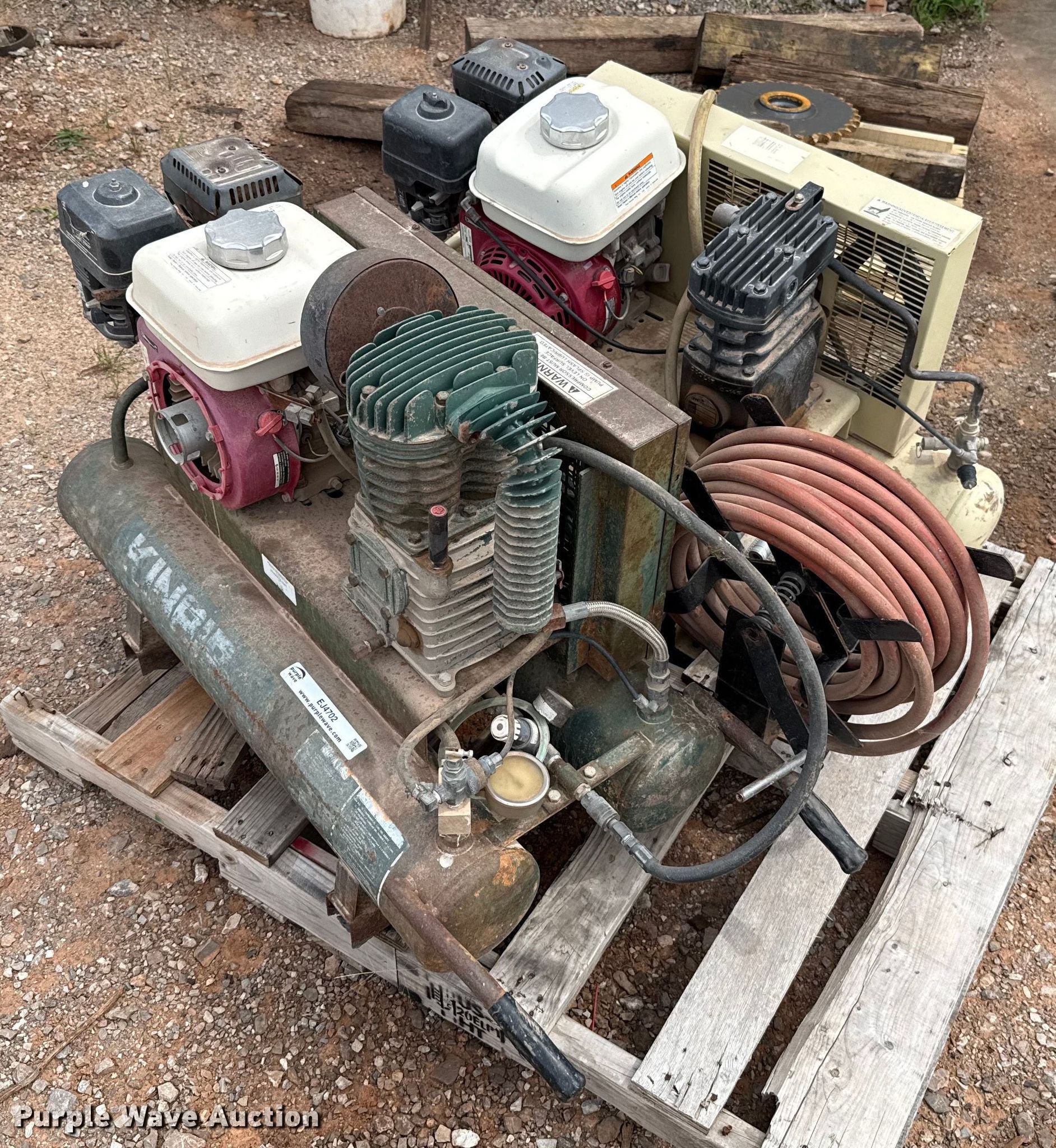 Purple Wave is selling a used Air Compressor in Oklahoma. This item is a (2) air compressors with the following: Kinair 6590HK18-0001, Engine, Honda, Displacement: 196 cc, Cylinders: 1, Fuel type: Gas,