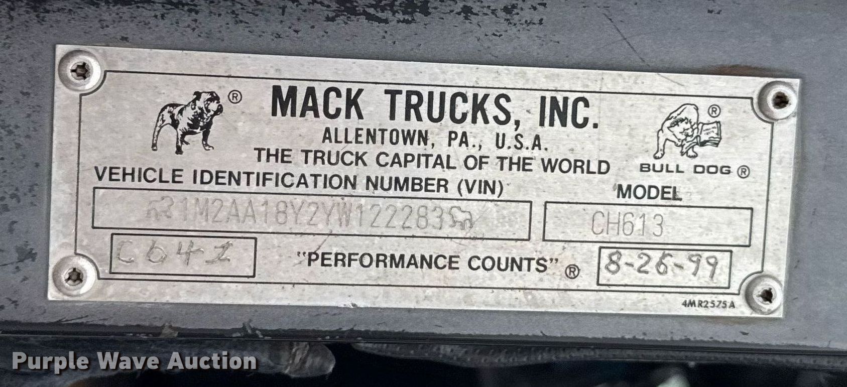 Purple Wave is selling a used Construction Dump Truck in Oklahoma. This item is a 2000 Mack CH613 dump truck with the following: Miles: 597,035 on odometer, VIN: 1M2AA18Y2YW122283