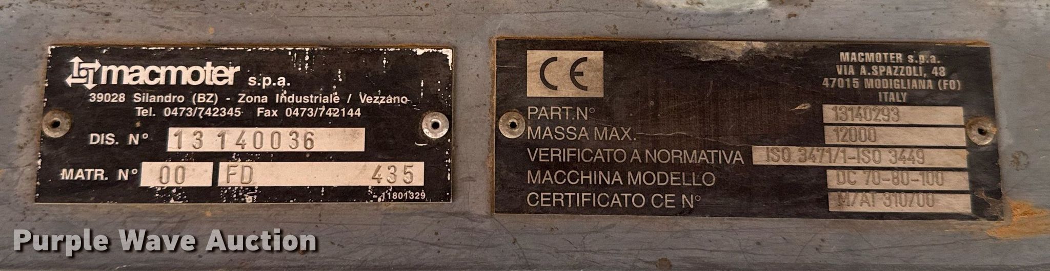 2000 New Holland DC80 dozer. Hours: 1,373 on meter, Serial: 13141147. Engine Cummins B3.9-C, Serial: 21423100, Displacement: 3.9L, Cylinders: 4, Fuel type: Diesel, HP: 95, kW: 71. Transmission Hydrostatic, Two speed travel. Operators station Canopy, Steering: Joystick. Features Sweeps, Dozer blade Blade type: 6-way, Blade shape: Straight, Width: 9'. Tracks Width: 20", Grouser pads: Single, Bottom rollers: 6, Track guards. Notes Solenoid issues. Lexington, OK 73051