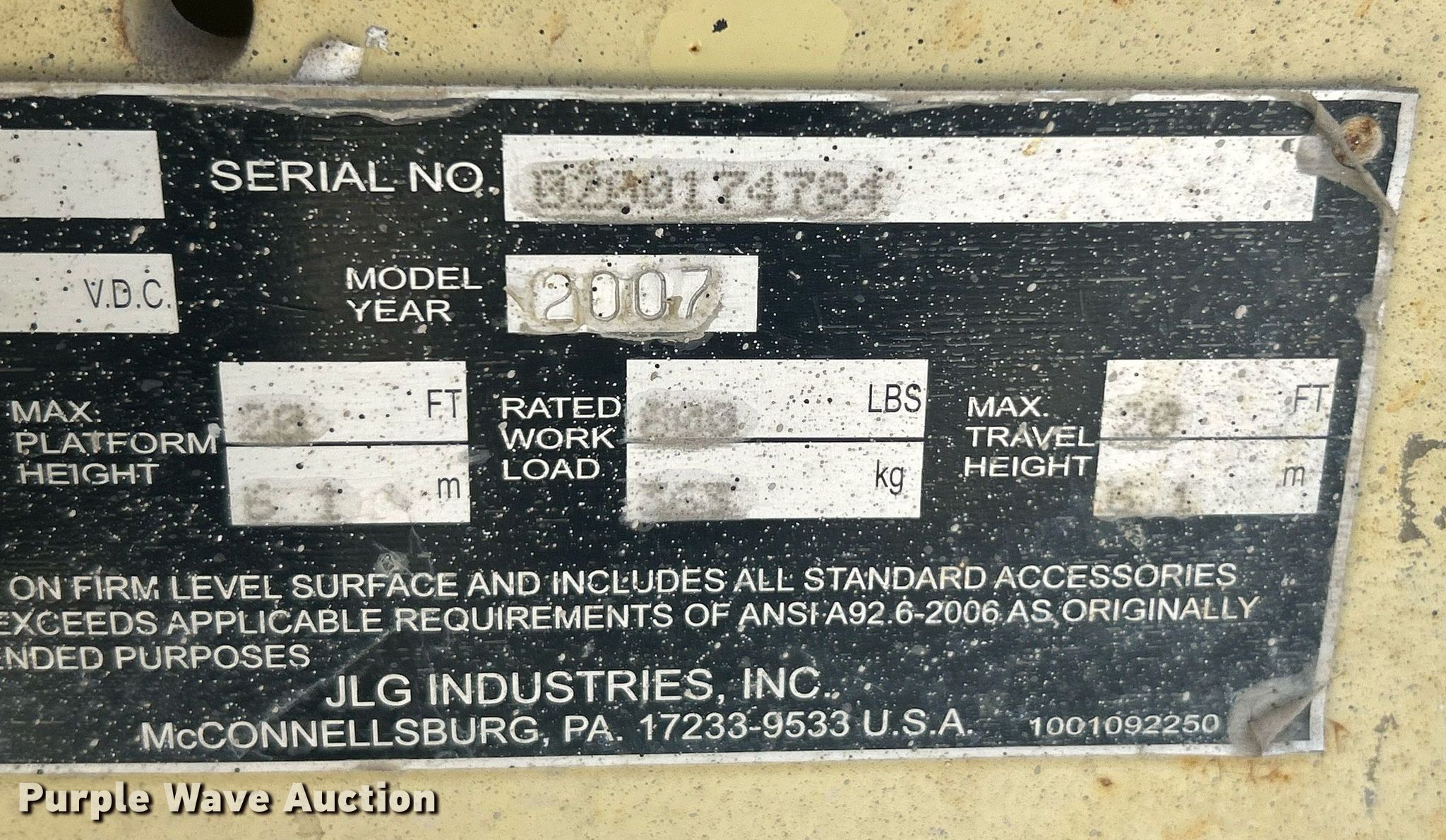 Take a look at this used 2007 JLG 2030ES scissor lift being sold on July 17th, 2025 in the SOLD! July 17 Construction Equipment Auction made by JLG. Take a look at all of the item information below or take a look at similar auctions for Aerial Lifts.