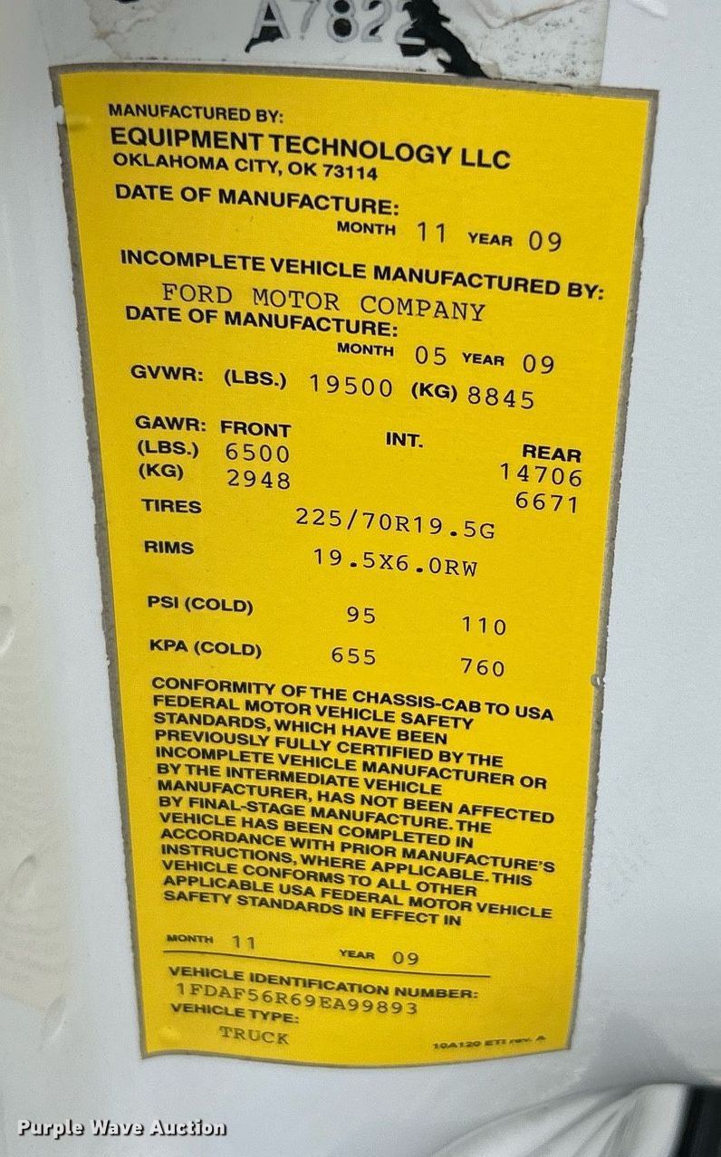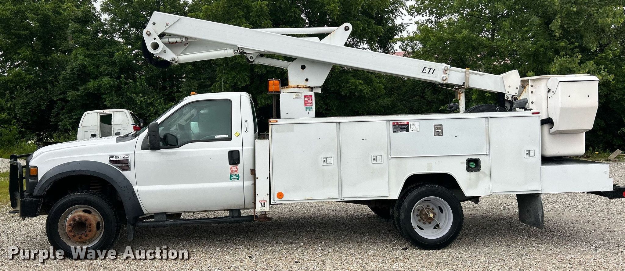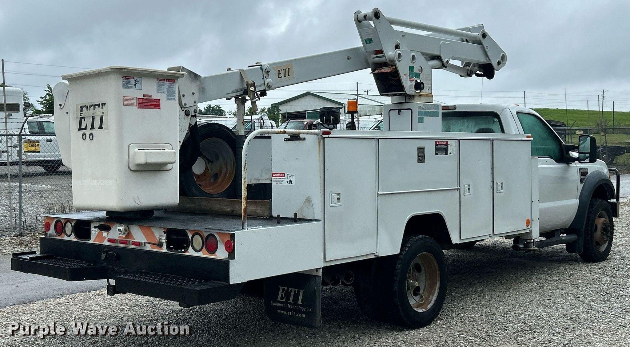 2009 Ford F550 Super Duty XL bucket truck. Miles: 175,948 on odometer, VIN: 1FDAF56R69EA99893. Engine Displacement: 6.4L, Cylinders: 8, Fuel type: Diesel. Transmission Automatic. Chassis Axles: Single, Suspension: Spring, Brakes: Hydraulic, PTO, GVWR: 19,500 lbs. Interior AC, Heat, Cruise control, Auxiliary controls, Brake controller. Features Bed ETI, 10' 11" L x 94" W, Boom ETI ETC37IH, Serial: 1109C77163, Maximum lift capacity: 350 lbs, Maximum lift height: 37', Boom type: Articulating, Telescopic, Man basket, Boom controls Ground, Platform/ basket.. Tires Size: 225/70R19.5. Notes Windshield chipped or cracked. Nebraska title. Seller is a Missouri licensed motor vehicle dealer. Title will be assigned and distributed by the dealer. Please contact the seller for distribution questions. Title distribution may be delayed up to 30 days from verification of funds. Fruendly Auto Source Inc.. Moscow Mills, MO 63362