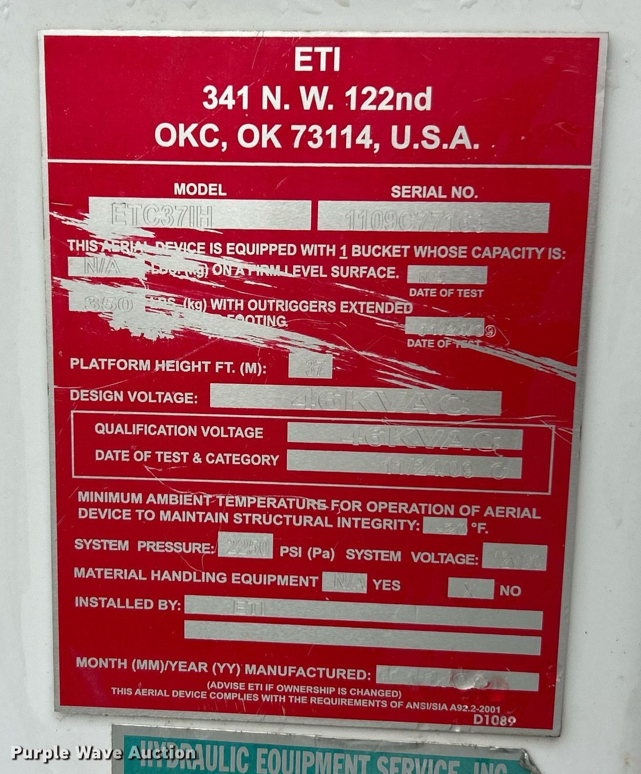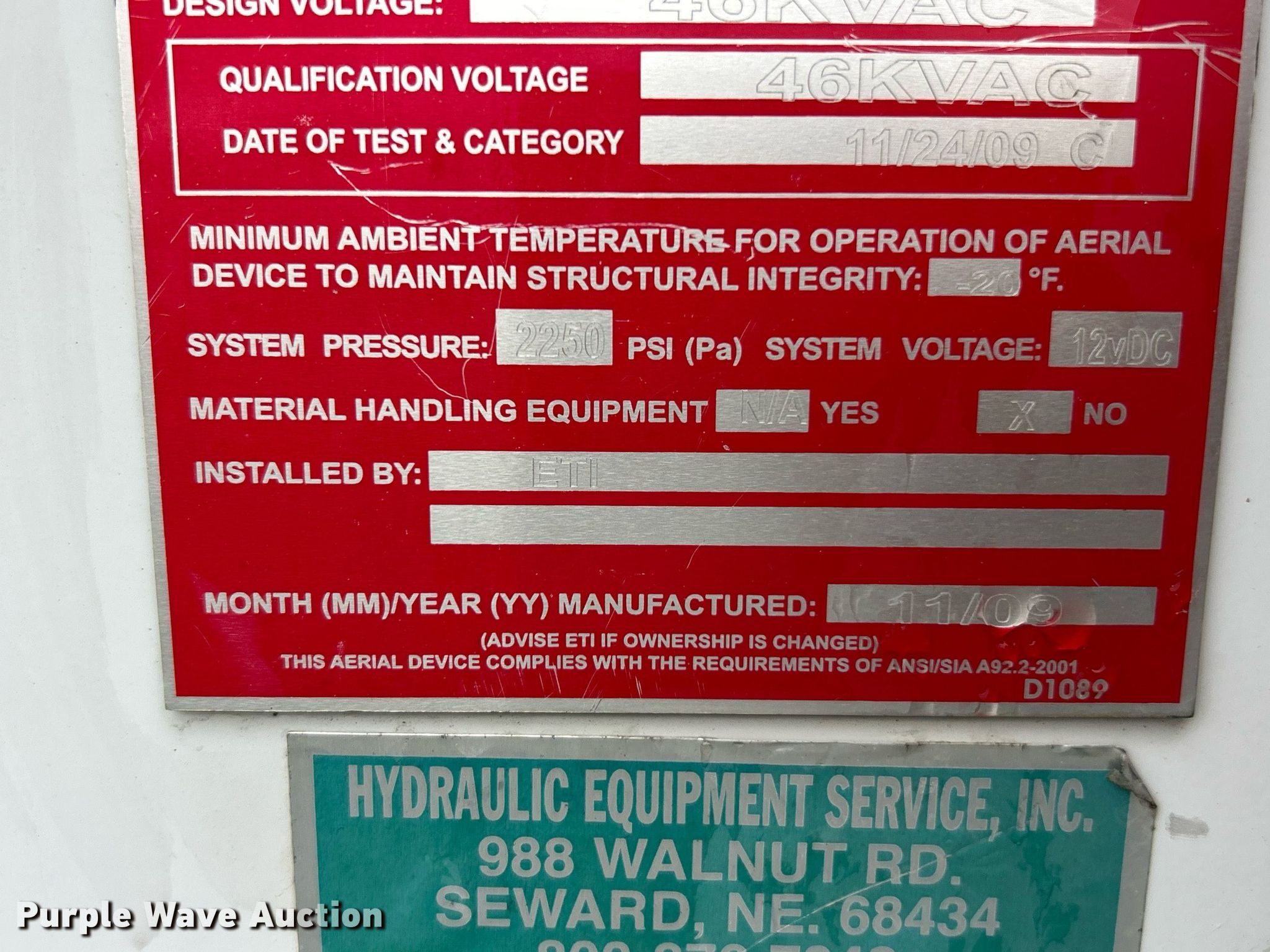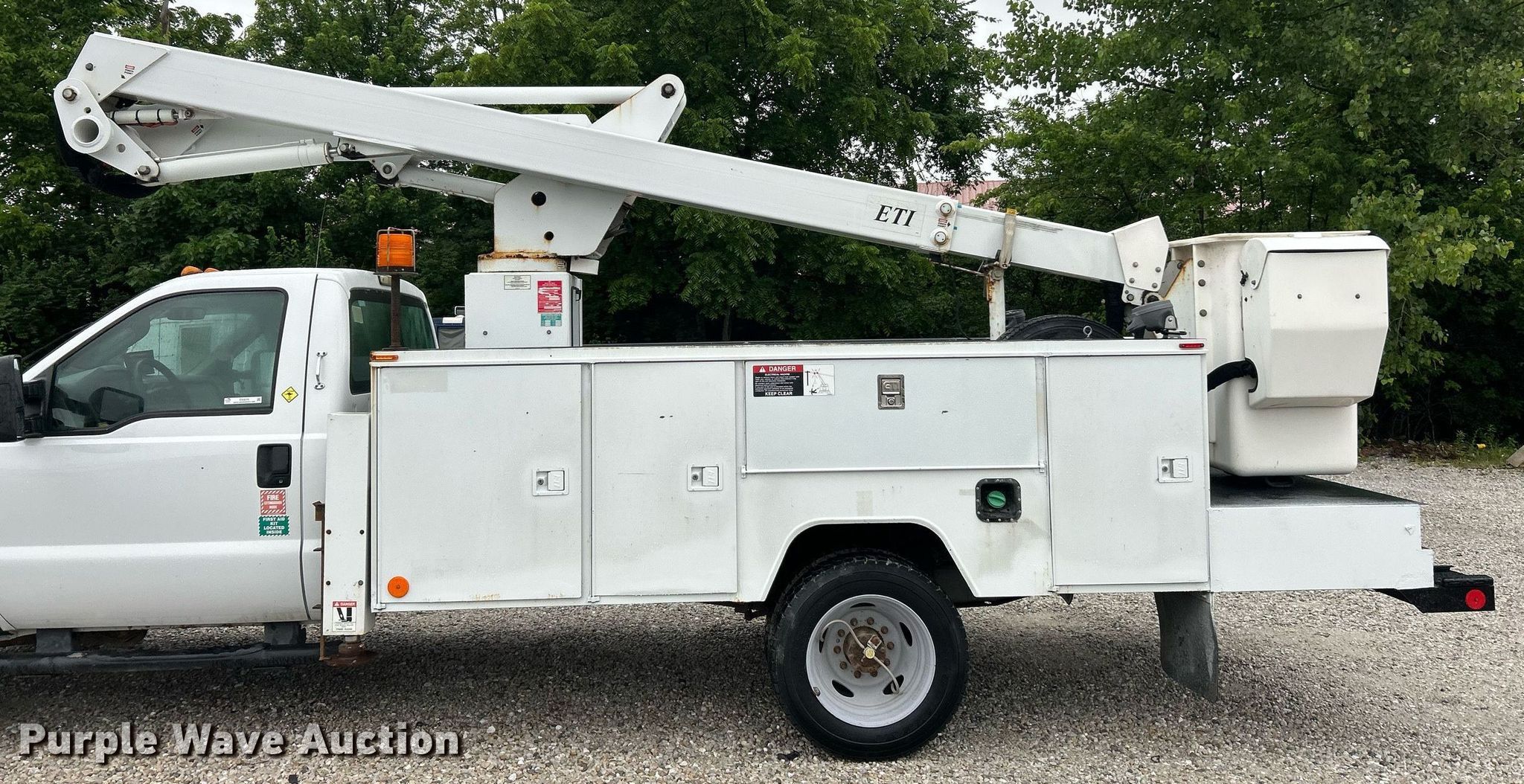 2009 Ford F550 Super Duty XL bucket truck. Miles: 175,948 on odometer, VIN: 1FDAF56R69EA99893. Engine Displacement: 6.4L, Cylinders: 8, Fuel type: Diesel. Transmission Automatic. Chassis Axles: Single, Suspension: Spring, Brakes: Hydraulic, PTO, GVWR: 19,500 lbs. Interior AC, Heat, Cruise control, Auxiliary controls, Brake controller. Features Bed ETI, 10' 11" L x 94" W, Boom ETI ETC37IH, Serial: 1109C77163, Maximum lift capacity: 350 lbs, Maximum lift height: 37', Boom type: Articulating, Telescopic, Man basket, Boom controls Ground, Platform/ basket.. Tires Size: 225/70R19.5. Notes Windshield chipped or cracked. Nebraska title. Seller is a Missouri licensed motor vehicle dealer. Title will be assigned and distributed by the dealer. Please contact the seller for distribution questions. Title distribution may be delayed up to 30 days from verification of funds. Fruendly Auto Source Inc.. Moscow Mills, MO 63362