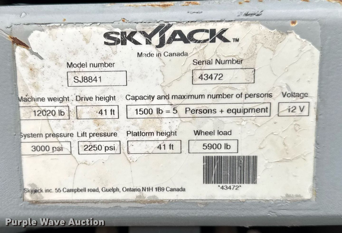 Purple Wave is selling a used Scissor or Vertical Lift in Iowa. This item is a 2006 Skyjack SJ8841 scissor lift with the following: Hours: 3,231 on meter, Serial: 43472