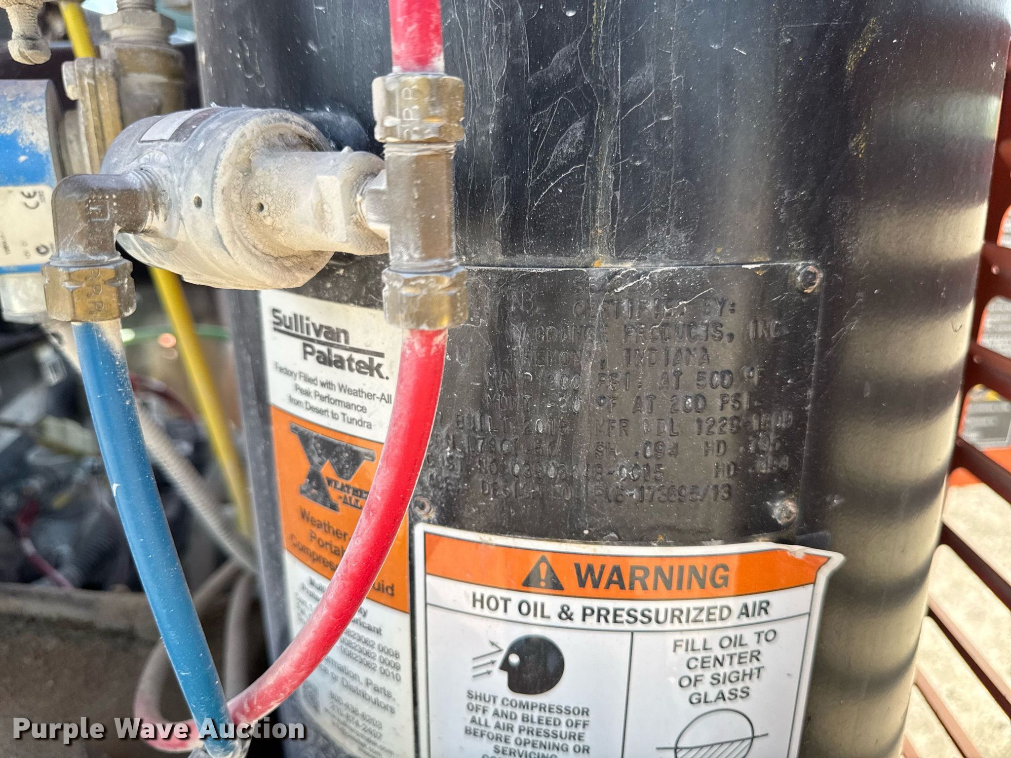Purple Wave is selling a used Air Compressor in Iowa. This item is a Sullivan palatek DF185P317 air compressor with the following: Hours: 625 on meter, Serial: 102344