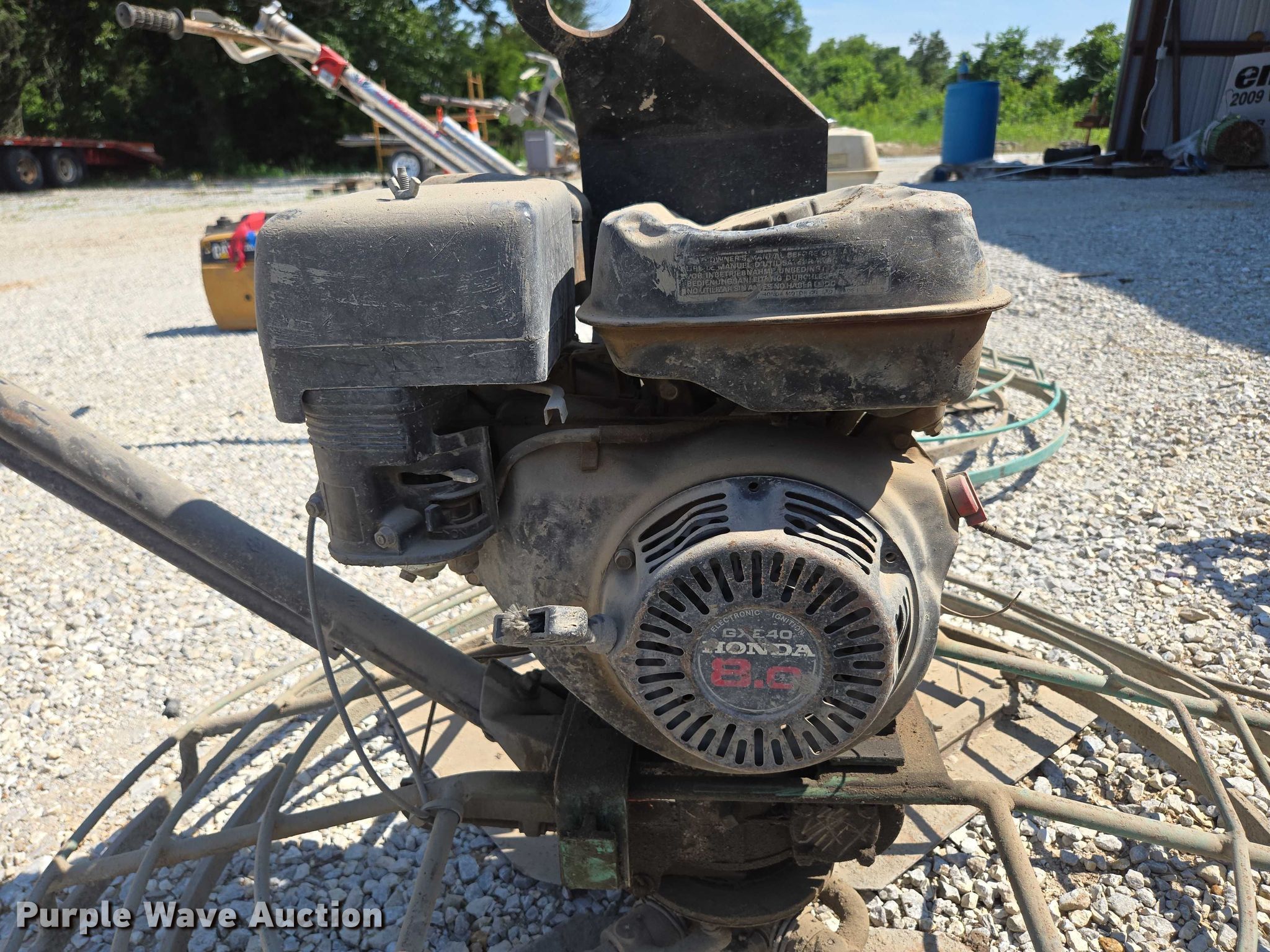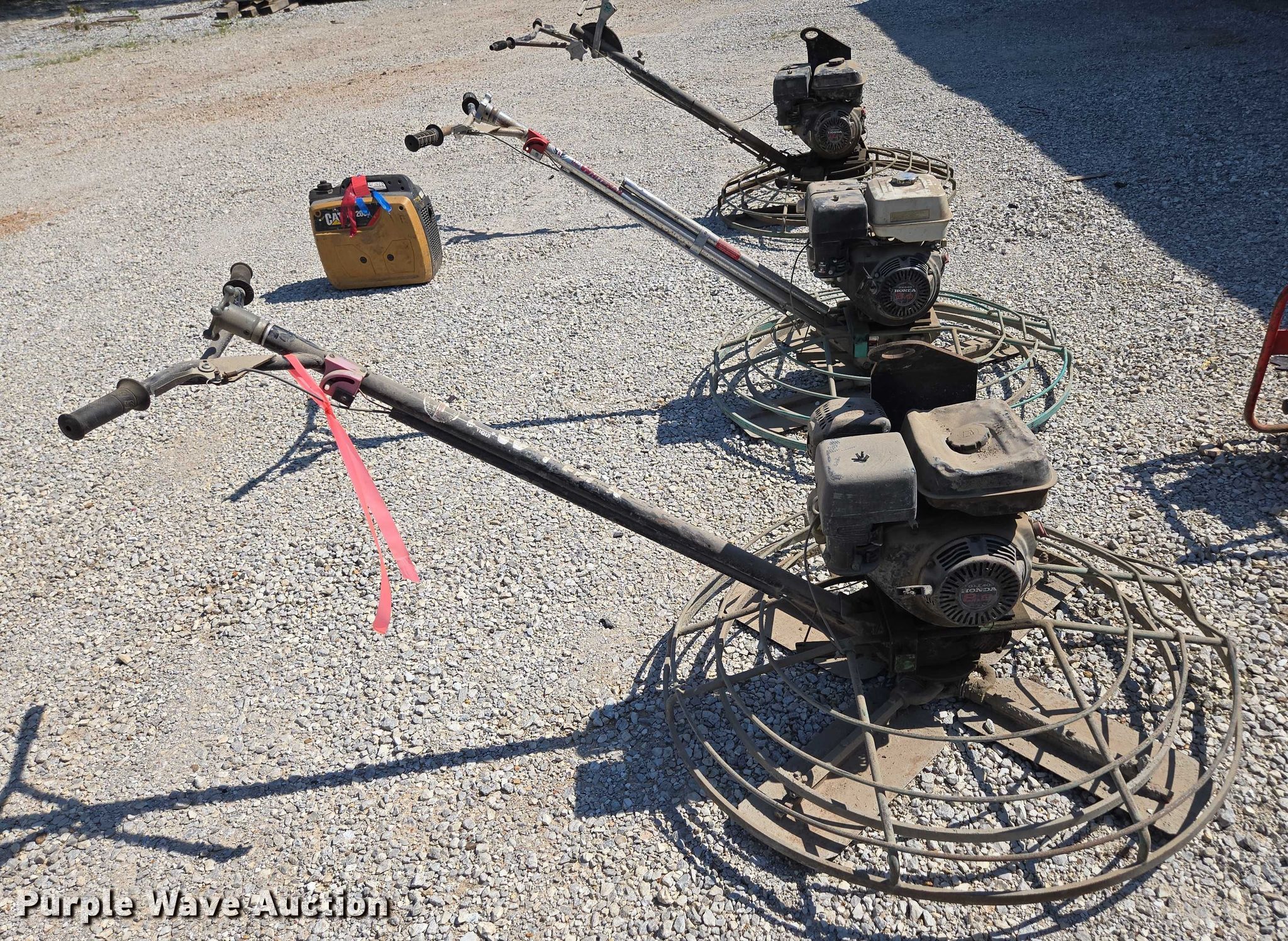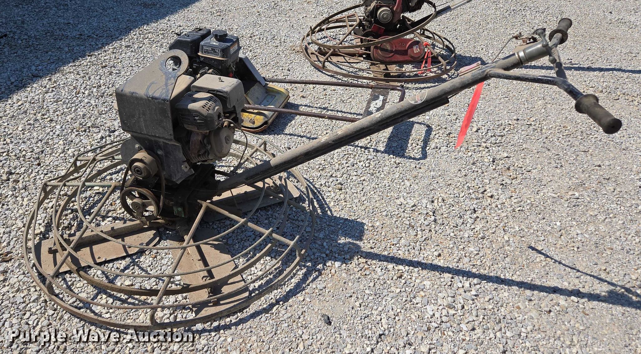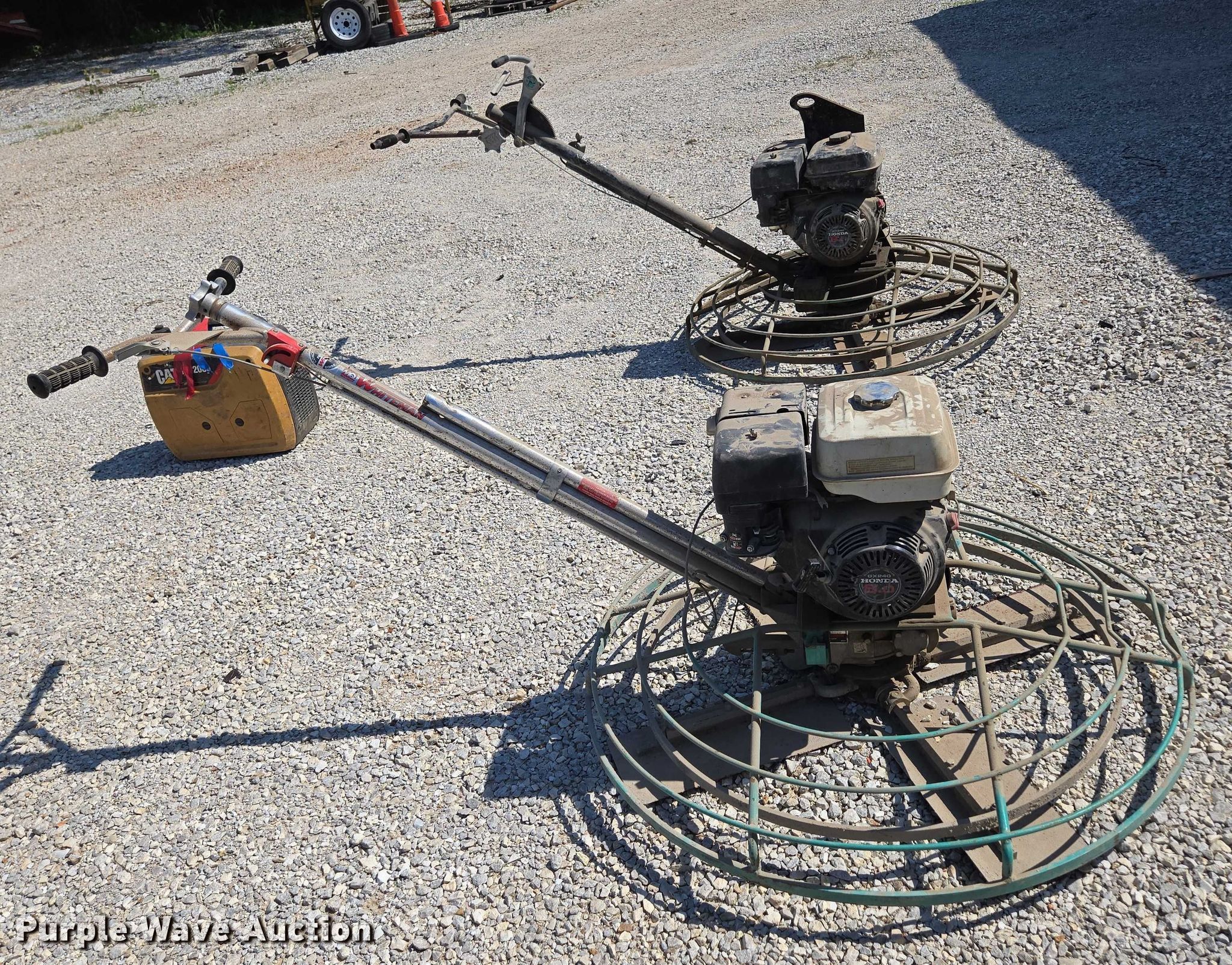 Purple Wave is selling a used Concrete Equip. or Acces. in Missouri. This item is a Concrete equipment with the following: Allen Engineering 45" power trowel, Unit #: 015202, Engine, Honda GX340, Non-operational unit, Whiteman B48H power trowel, Serial: GG0102003, Engine, Honda GX240, Non-operational unit, Whiteman B-4-8H power trowel, Serial: HB63155, Engine, Honda GX240,, Whiteman BA48H power trowel, Serial: DH0120599, Engine, Honda GX240, Fuel Leak, Caterpillar INV2000 generator, Non-operational unit, Multiquip QP-2TH pump, Serial: 2TH-29955, Engine, Honda, Pump issues, cracked, Wacker Plate compactor, Engine, Kohler SH Series, Displacement: 196 cc, HP: 6.5, Plate: 22" x 19", Non-operational unit