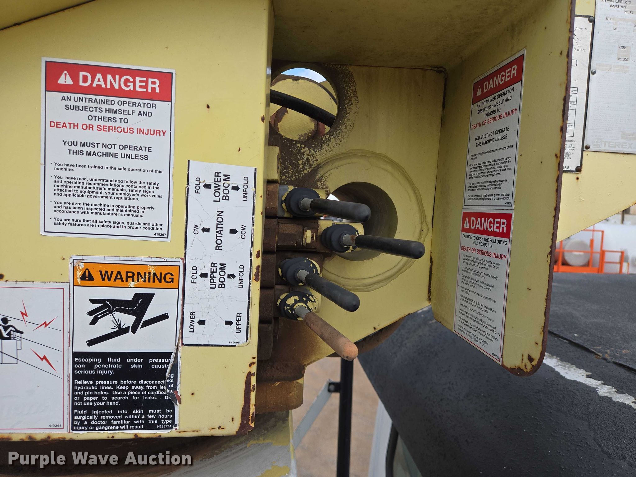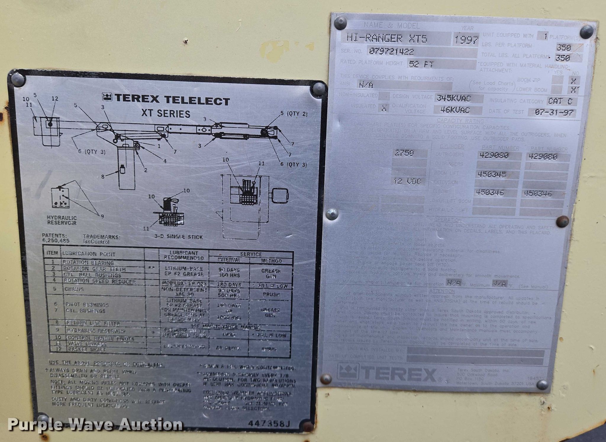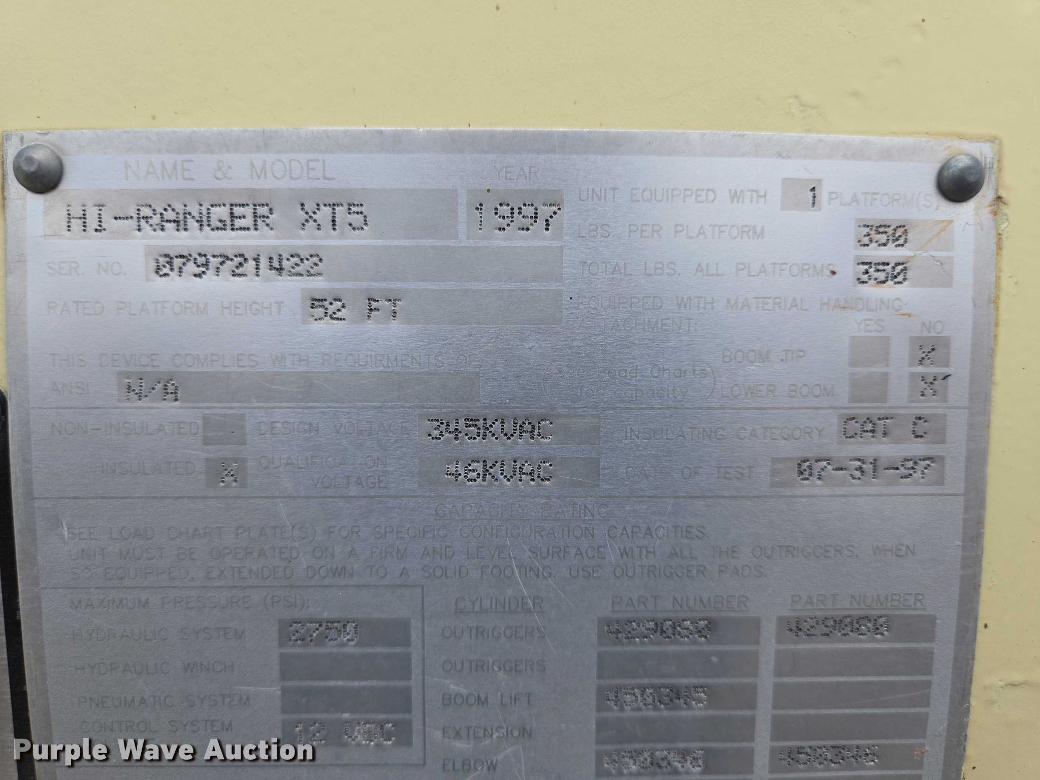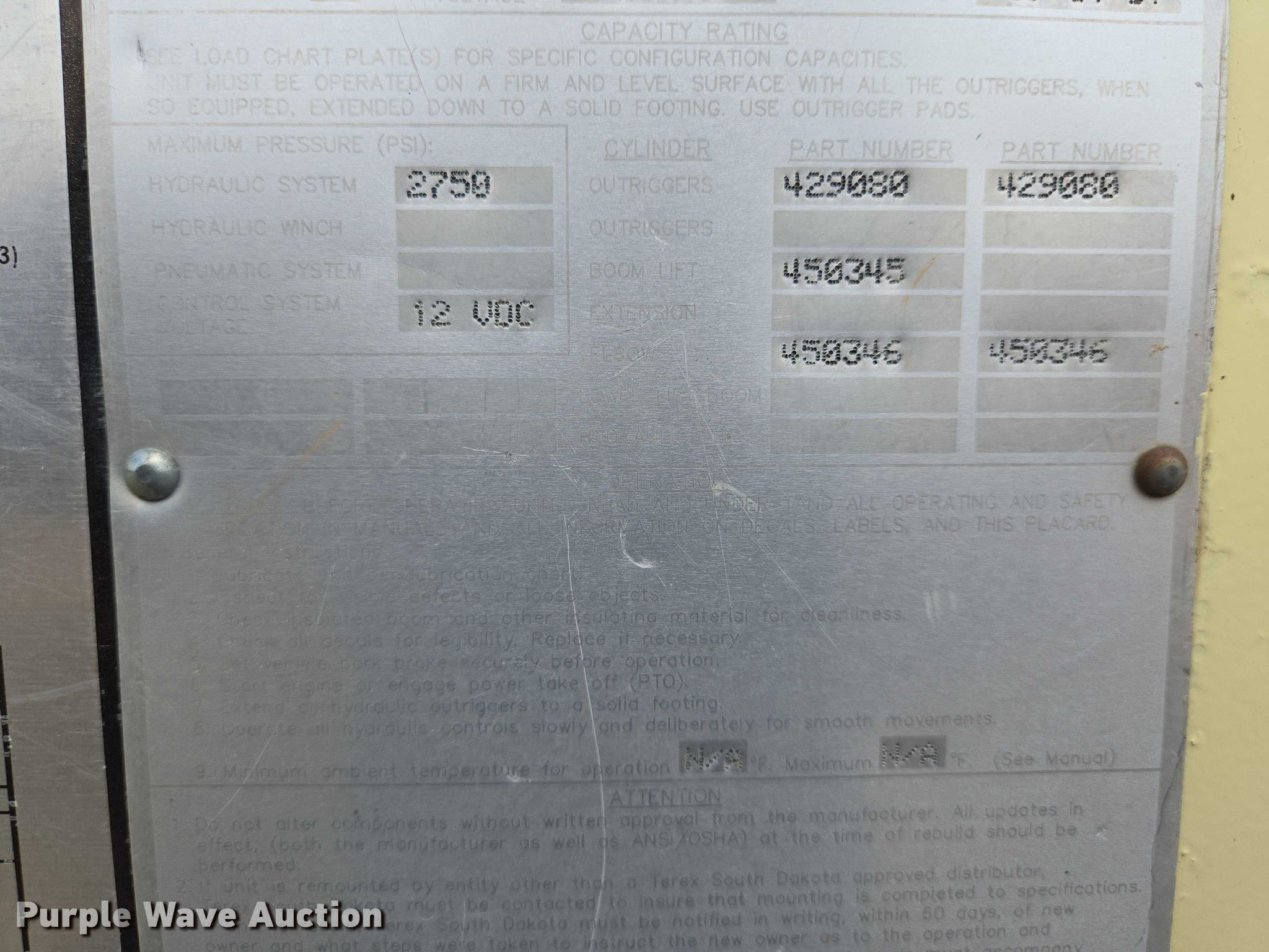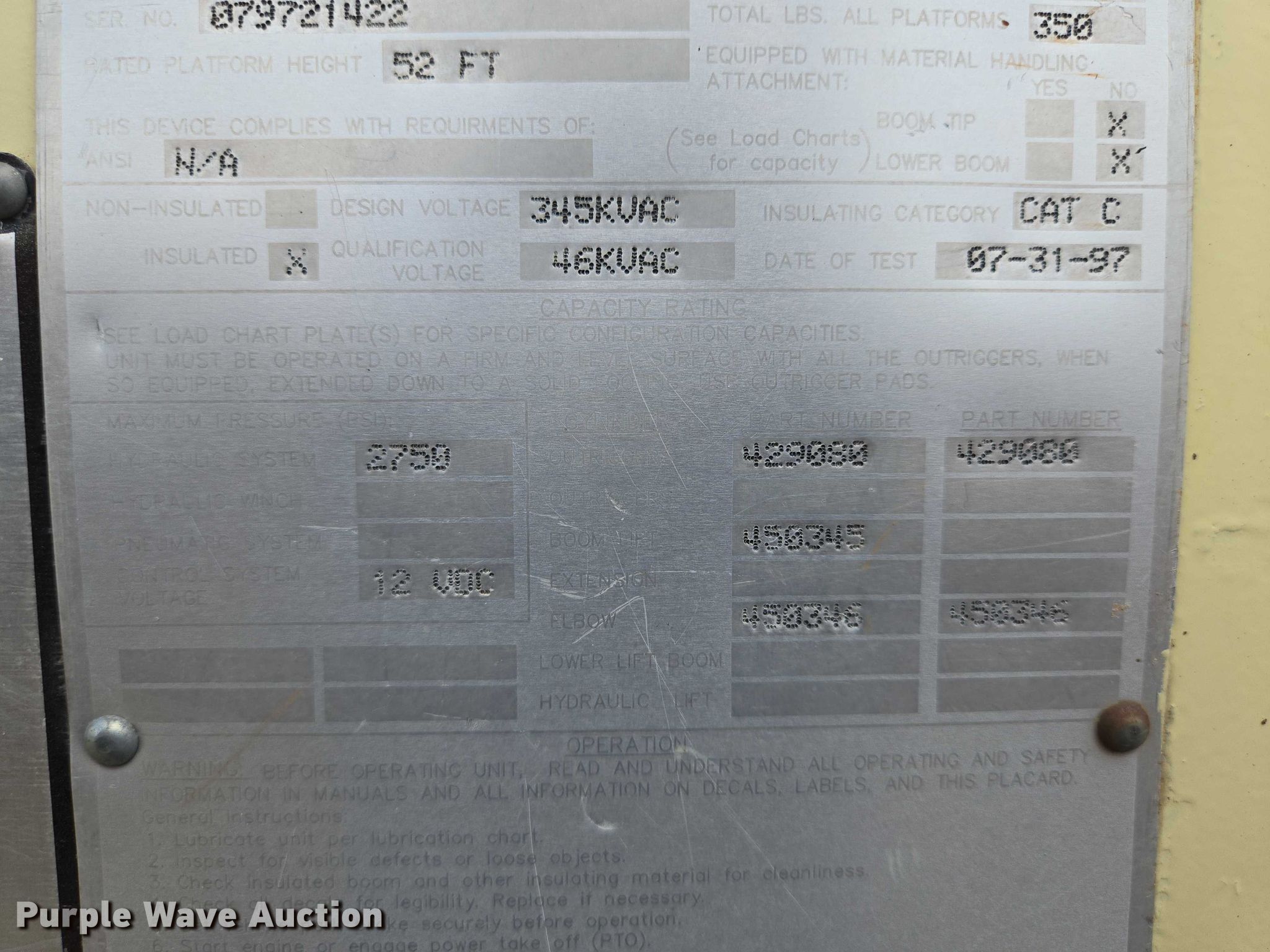 1998 International 4700 forestry bucket truck. Miles: 120,607 on odometer, VIN: 1HTSCABN5WH543212. Engine International, Displacement: 7.3L, Cylinders: 8, Fuel type: Diesel. Transmission Automatic. Chassis Axles: Single, Suspension: Spring, PTO. Interior AC, Heat. Features Boom Terex Hi-Ranger XT Series, Maximum lift capacity: 350 lbs, Maximum lift height: 52', Boom type: Articulating, Insulated. Tires Front: 11R22.5, Rear: 255/75R22.5. Oklahoma title. Title distribution may be delayed up to 14 days from verification of funds. TerraStar Inc. Kingfisher, OK 73750