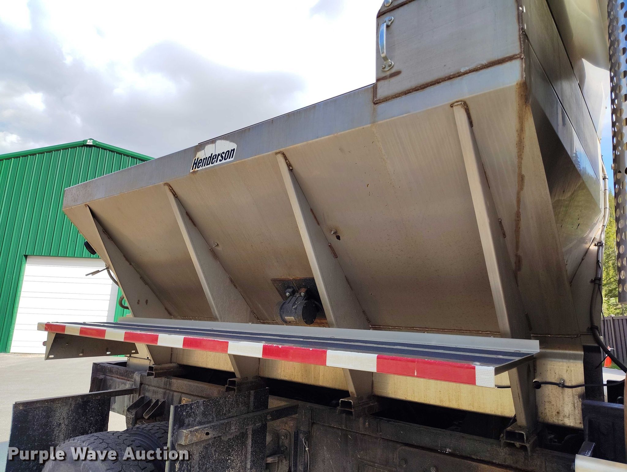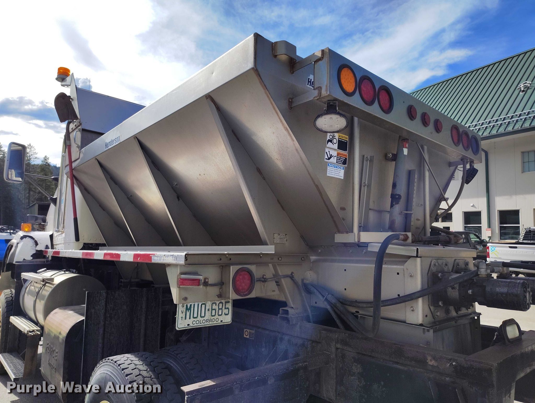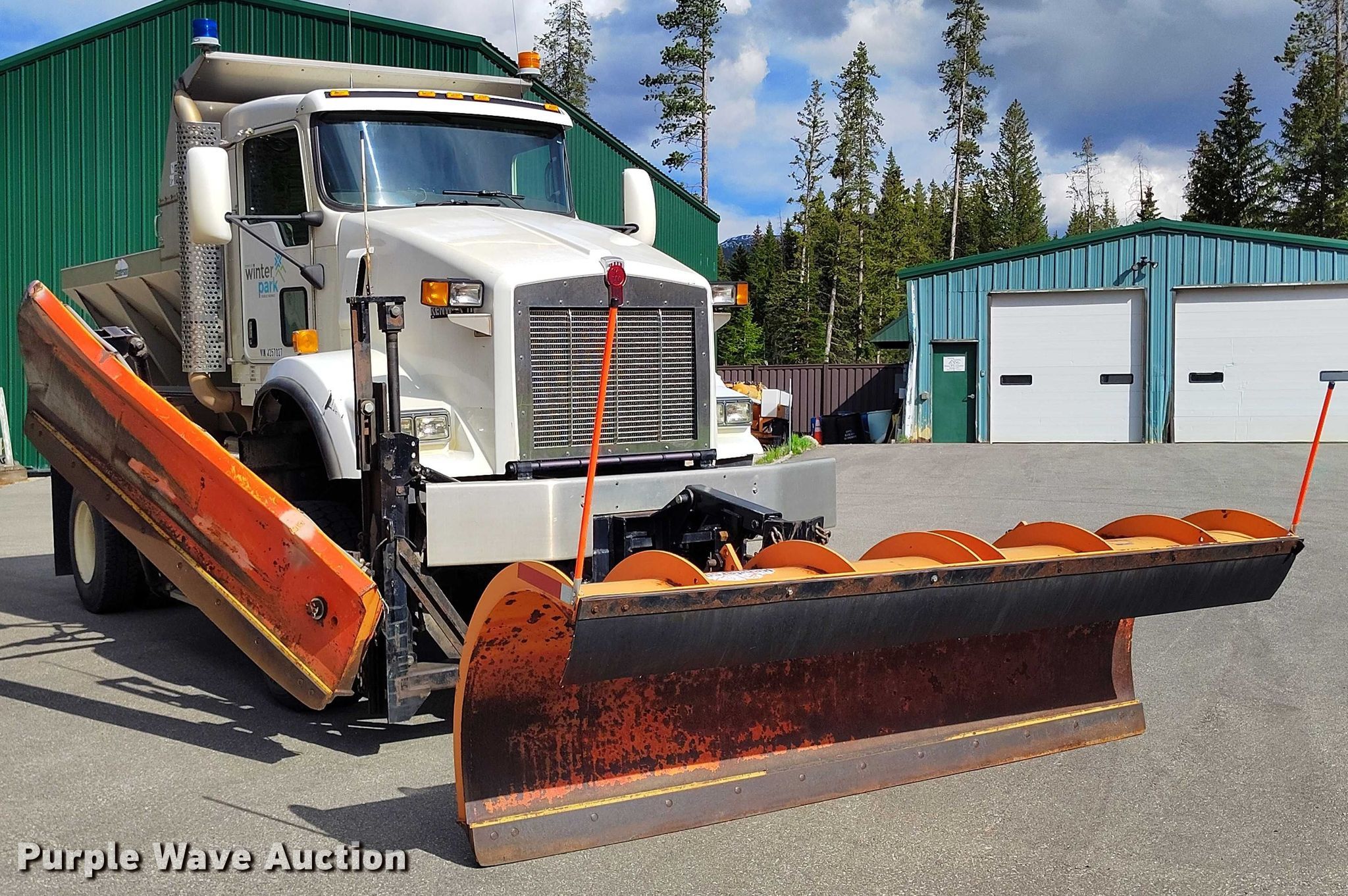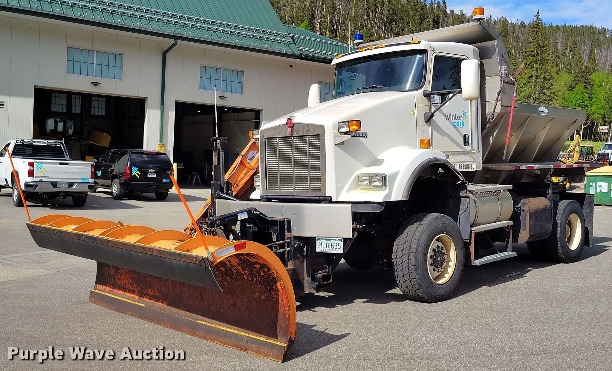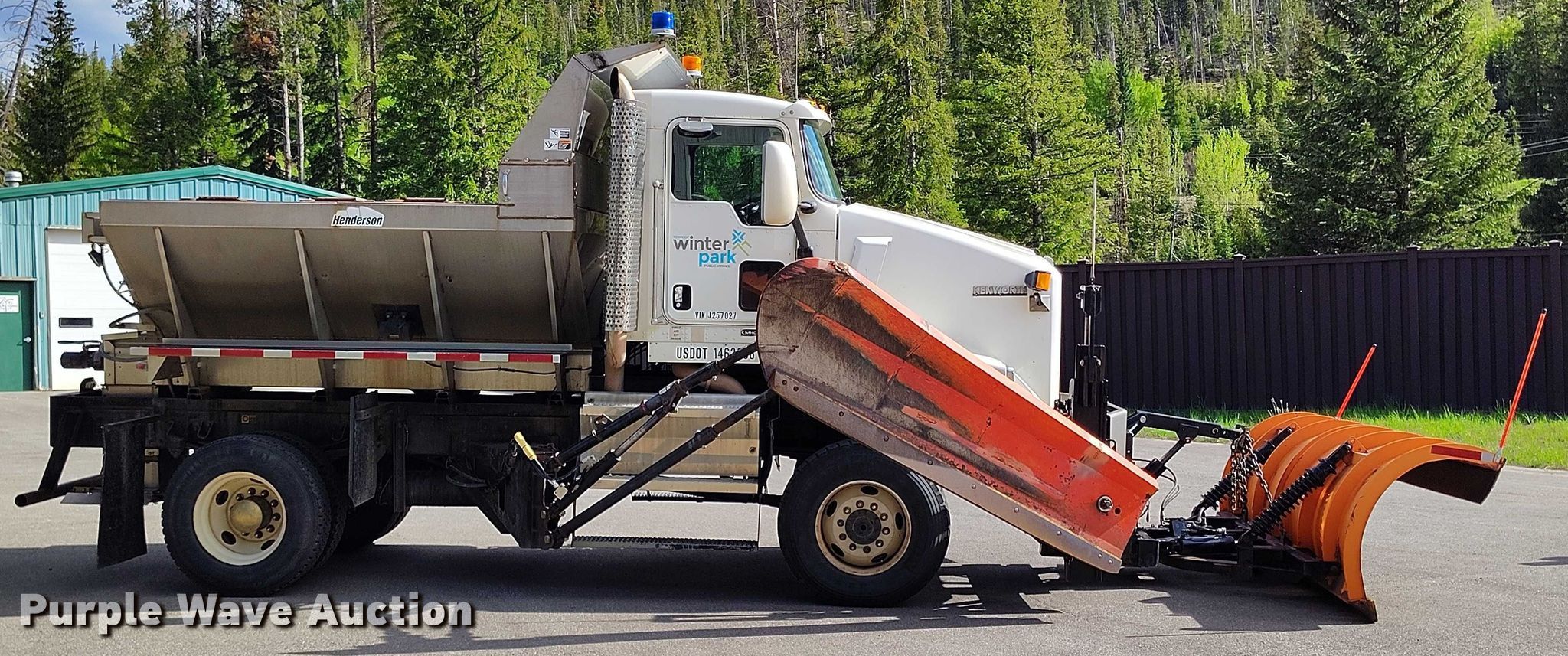 2009 Kenworth T800 spreader truck. Miles: 52,899 on odometer, Hours: 4,853 on meter, VIN: 1NKDH58X09J257027. Engine Cummins, Displacement: 8.9L, Cylinders: 6, Fuel type: Diesel, Engine brake. Transmission Allison, Automatic. Chassis Axles: Single, Gear ratio: 6.14, Differential lock: Inter-axle, Suspension: Spring, Brakes: Air, PTO, GVWR: 41,740 lbs RAWR: 23,000 lbs. Interior AC, Heat, Cruise control. Features Dump bed 12' L x 96" W, Side height: 36", Bed type: Aluminum, Spreader Henderson, Plow Henderson, Width: 132", Wing plow Henderson, Width: 100". Tires Front: 385/65R22.5, Rear: 11R22.5. Notes Turbo replaced, Repair documents available upon request at [email protected]. Colorado title. Title distribution may be delayed up to 30 days from verification of funds. Town of Winter Park. Winter Park, CO 80482