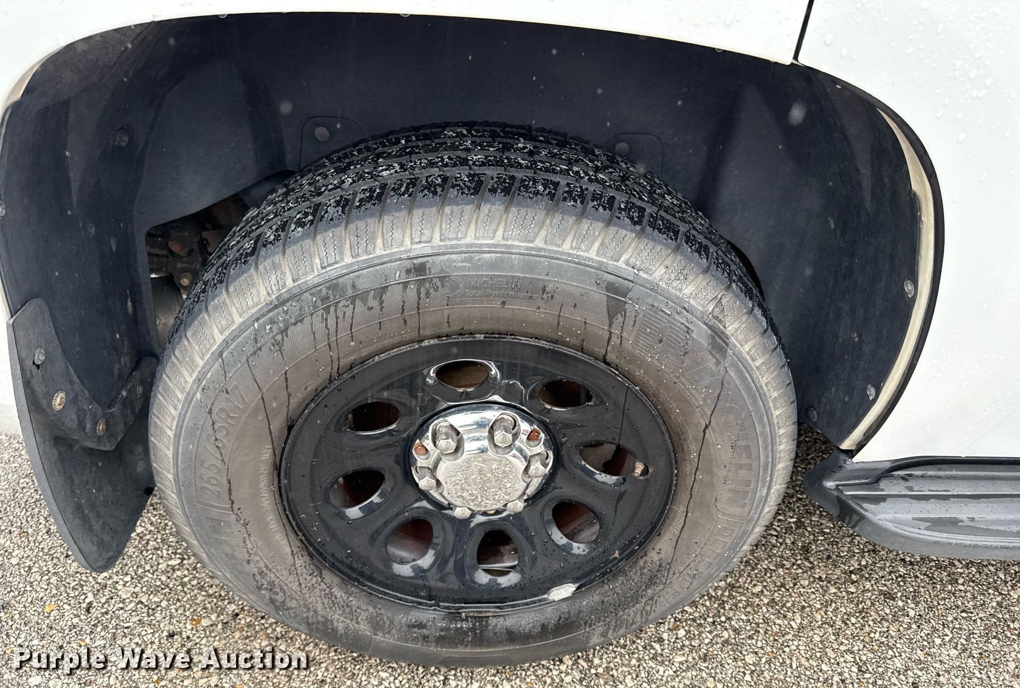 2014 Chevrolet Tahoe Police SUV. Miles: 86,418 on odometer, VIN: 1GNLC2E06ER167370. Engine Displacement: 5.3L V8 OHV, Cylinders: 8, Fuel type: Gas. Transmission Automatic. Interior AC, Heat, Power windows, Power locks, Cruise control. Tires Size: 265/60R17. Notes Possible engine issues , Unknown operating condition Unit must be towed or hauled. Kansas title. Title distribution may be delayed up to 14 days from verification of funds. Kansas City Kansas Community College. Kansas City, KS 66102