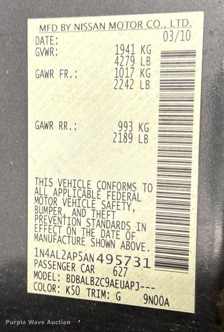 Purple Wave is selling a used Passenger Vehicle in Kansas. This item is a 2010 Nissan Altima with the following: Miles: 112,793 on odometer, VIN: 1N4AL2AP5AN495731