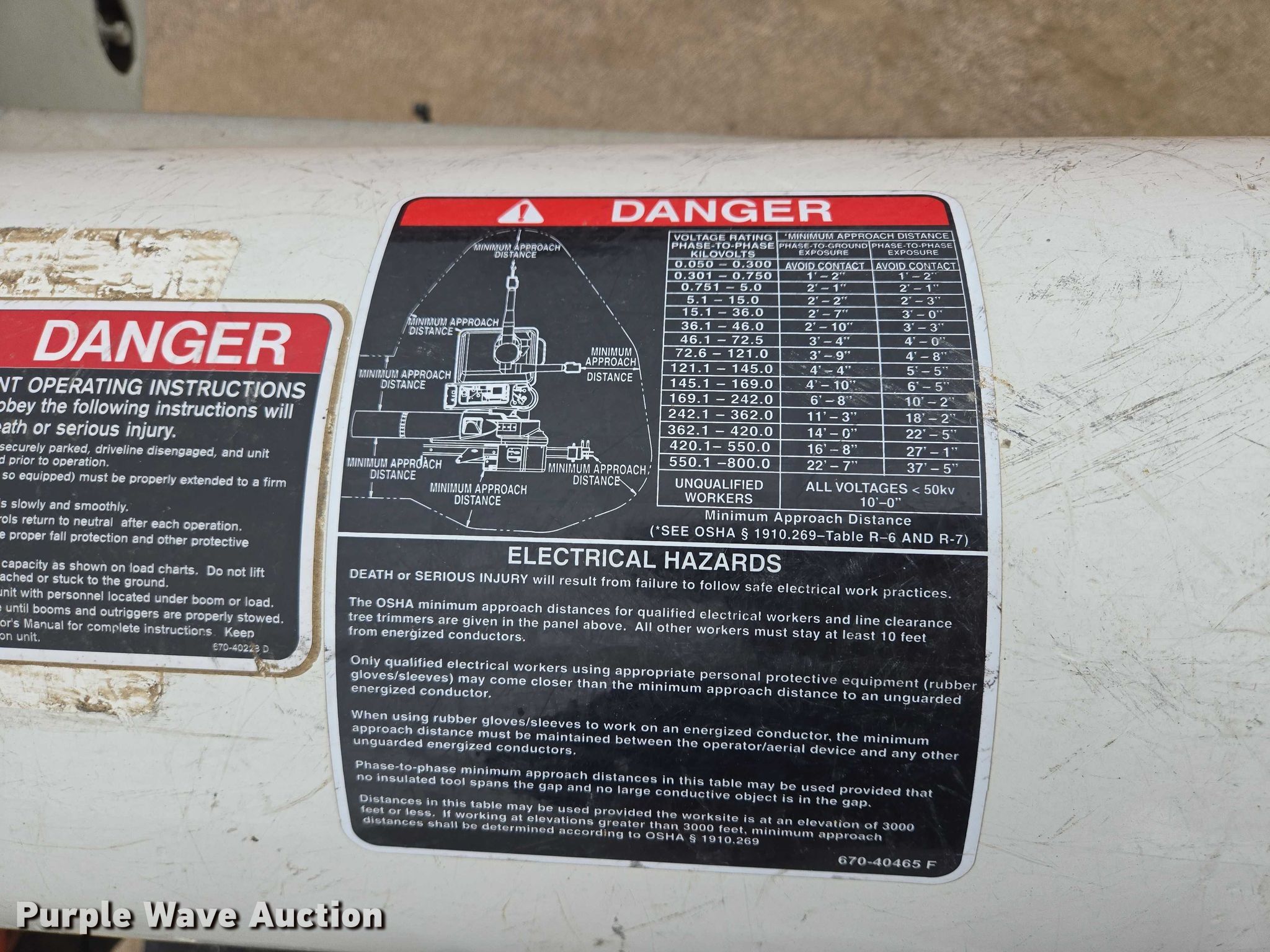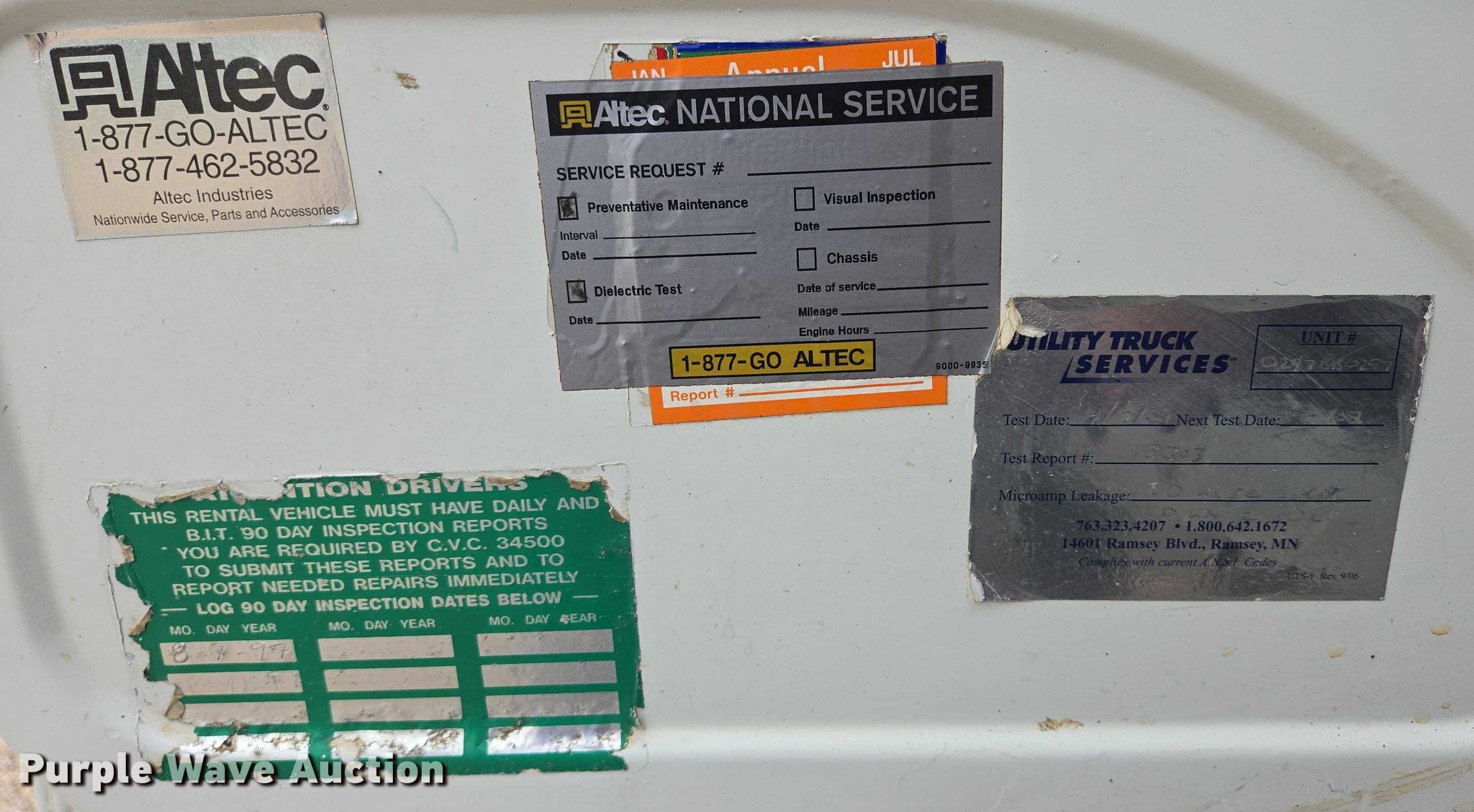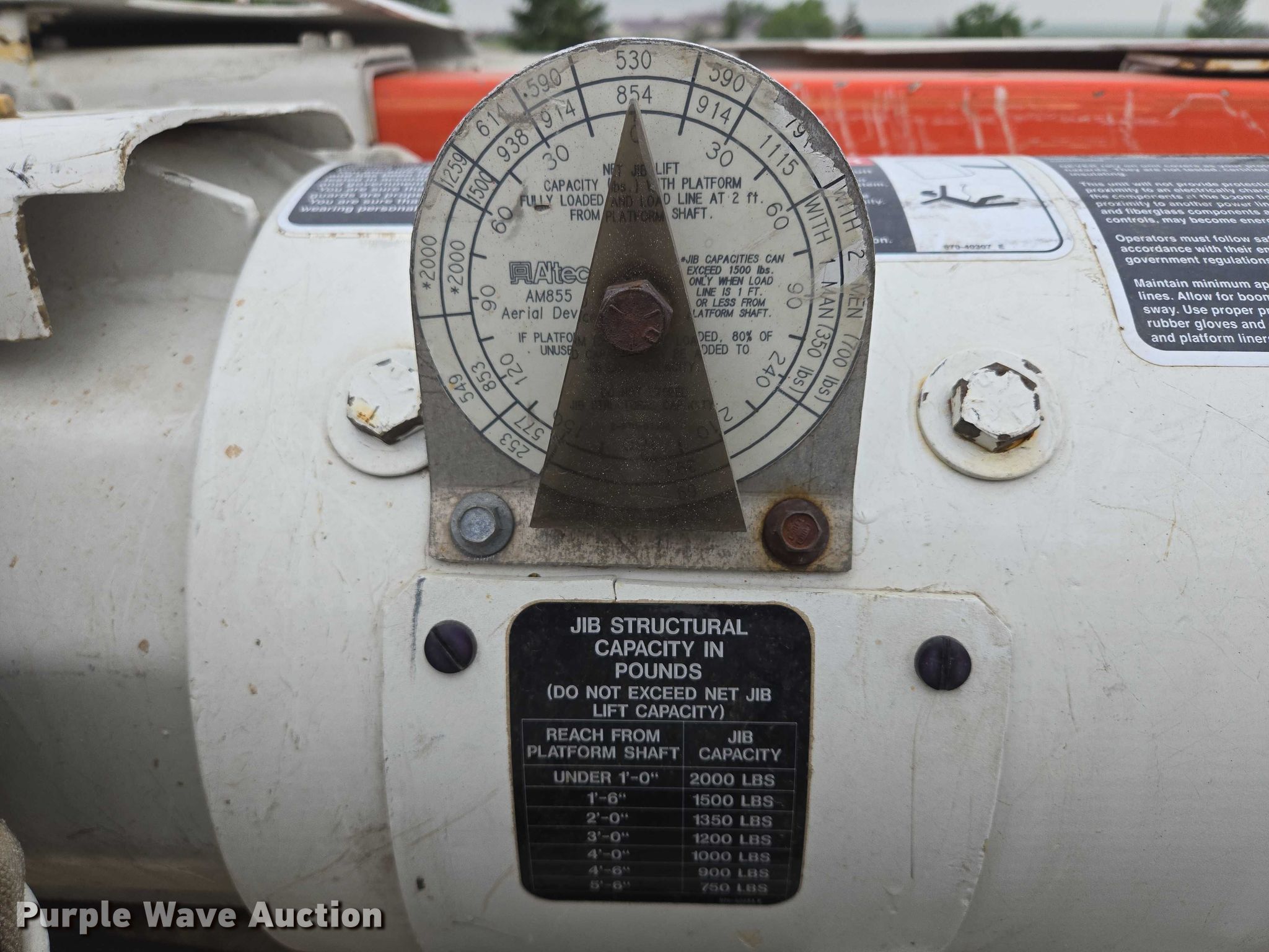 1995 Freightliner FL70 bucket truck. Miles: 72,012 on odometer, Hours: 13,027 on meter, VIN: 1FV6HFBA4SL753659. Engine Cummins, Displacement: 5.9L, Cylinders: 6, Fuel type: Diesel. Transmission Allison, Automatic. Chassis Axles: Single, Suspension: Spring, Brakes: Air, PTO. Interior Heat, Brake controller. Features Bed Altec, 14' 10" L x 93" W, Boom Altec AM855, Serial: 0295BB0297, Maximum lift capacity: 700 lbs, Maximum lift height: 55', Boom type: Articulating, Insulated, Man basket, Boom controls Ground, Platform/ basket, Material handler. Tires Size: 11R22.5. Notes Hydraulic leak. South Dakota title. Title distribution may be delayed up to 14 days from verification of funds. City of Faith, SD. Faith, SD 57626
