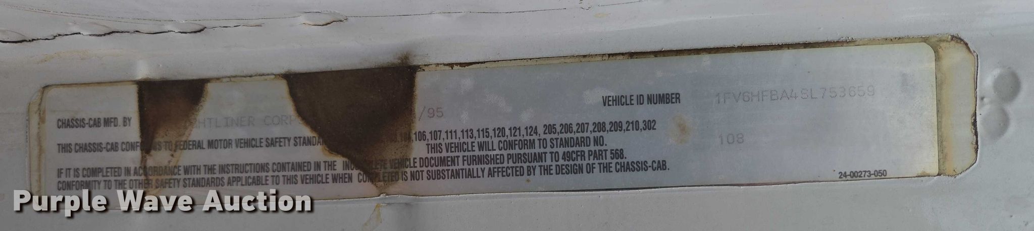 Purple Wave is selling a used Bucket Truck in South Dakota. This item is a 1995 Freightliner FL70 bucket truck with the following: Miles: 72,012 on odometer, Hours: 13,027 on meter, VIN: 1FV6HFBA4SL753659