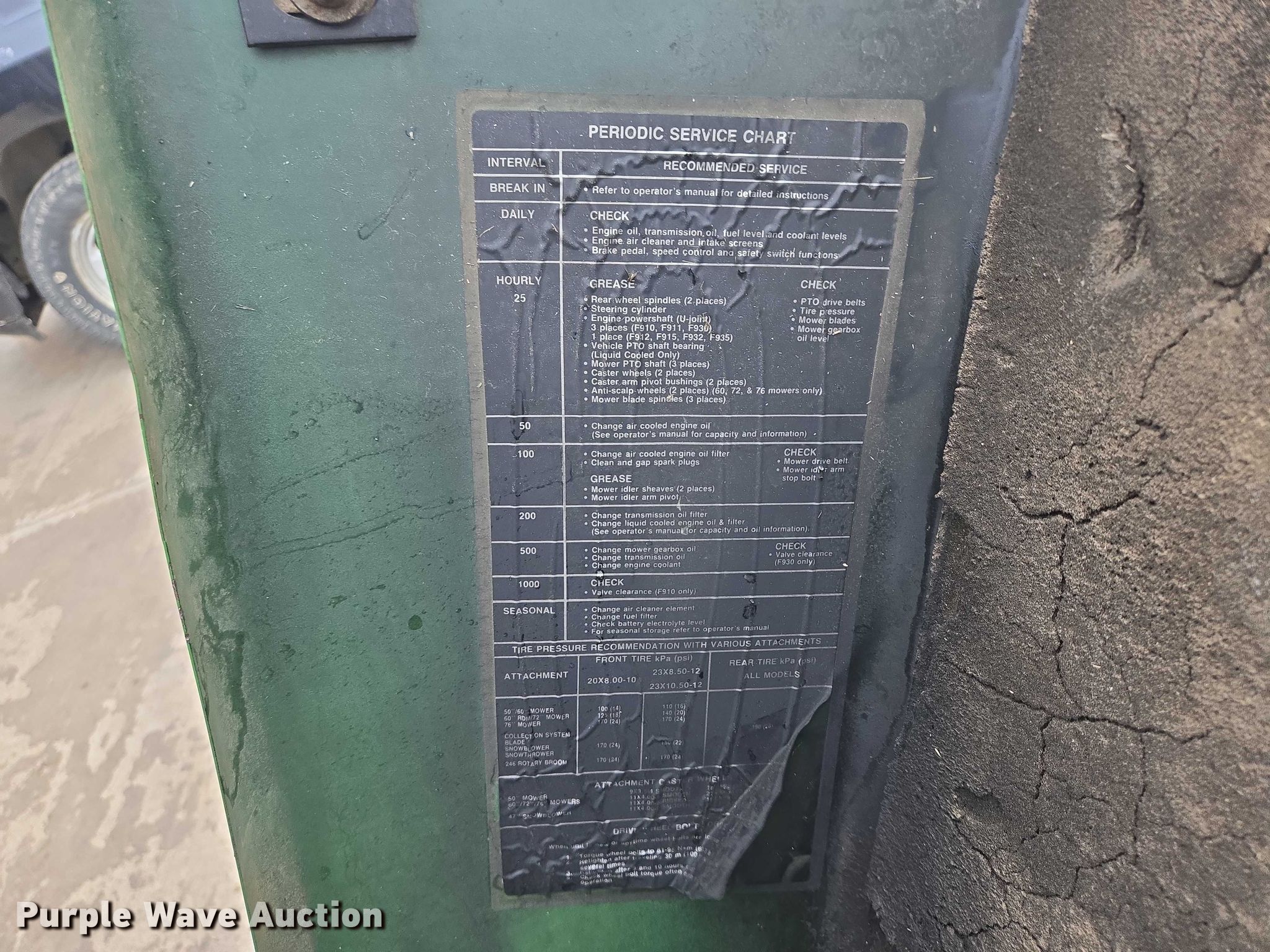Take a look at this used John Deere F935 lawn mower being sold on July 22nd, 2025 in the SOLD! July 22 Government Auction made by John Deere. Take a look at all of the item information below or take a look at similar auctions for Mowers and Other Ag Equipment.