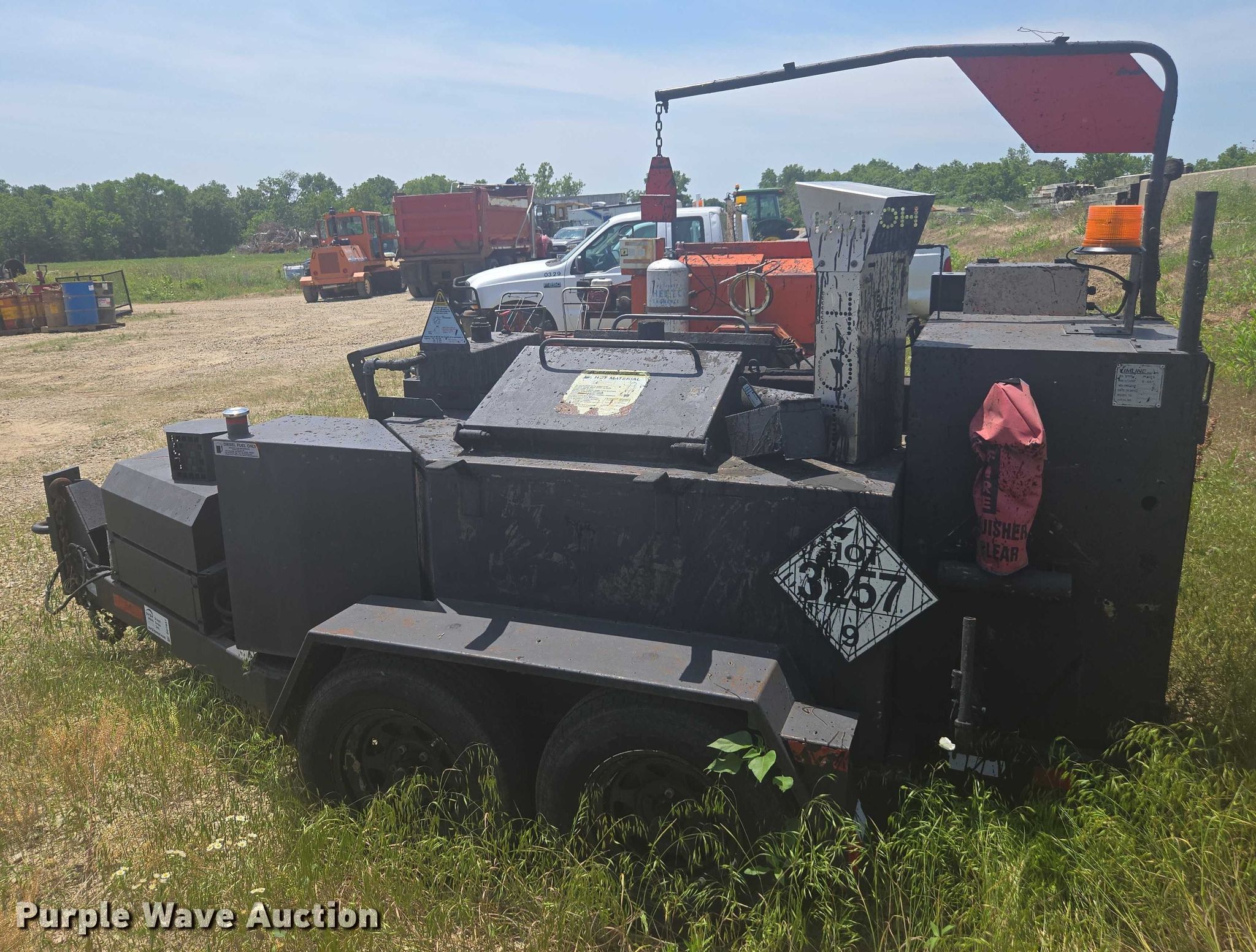 Cimline 230 Magma melter applicator. Hours: 2,094 on meter, Serial: 03-230-143. Engine Cylinders: 3, Fuel type: Diesel, Electric start. Features Material pump, Max material temp: 425°F, Agitator, Tank Capacity: 230 gallons. Chassis Hitch: Pintle, Axles: Tandem. Tires Size: 205/75R15. Jefferson County Public Works. Oskaloosa, KS 66066