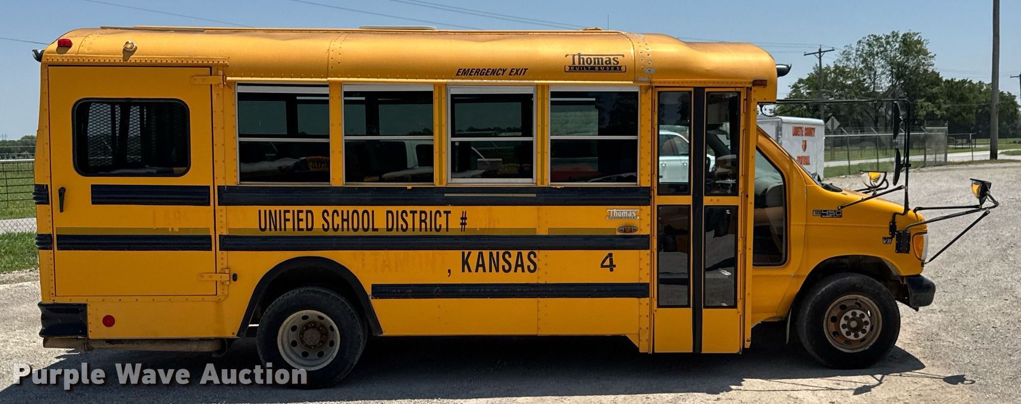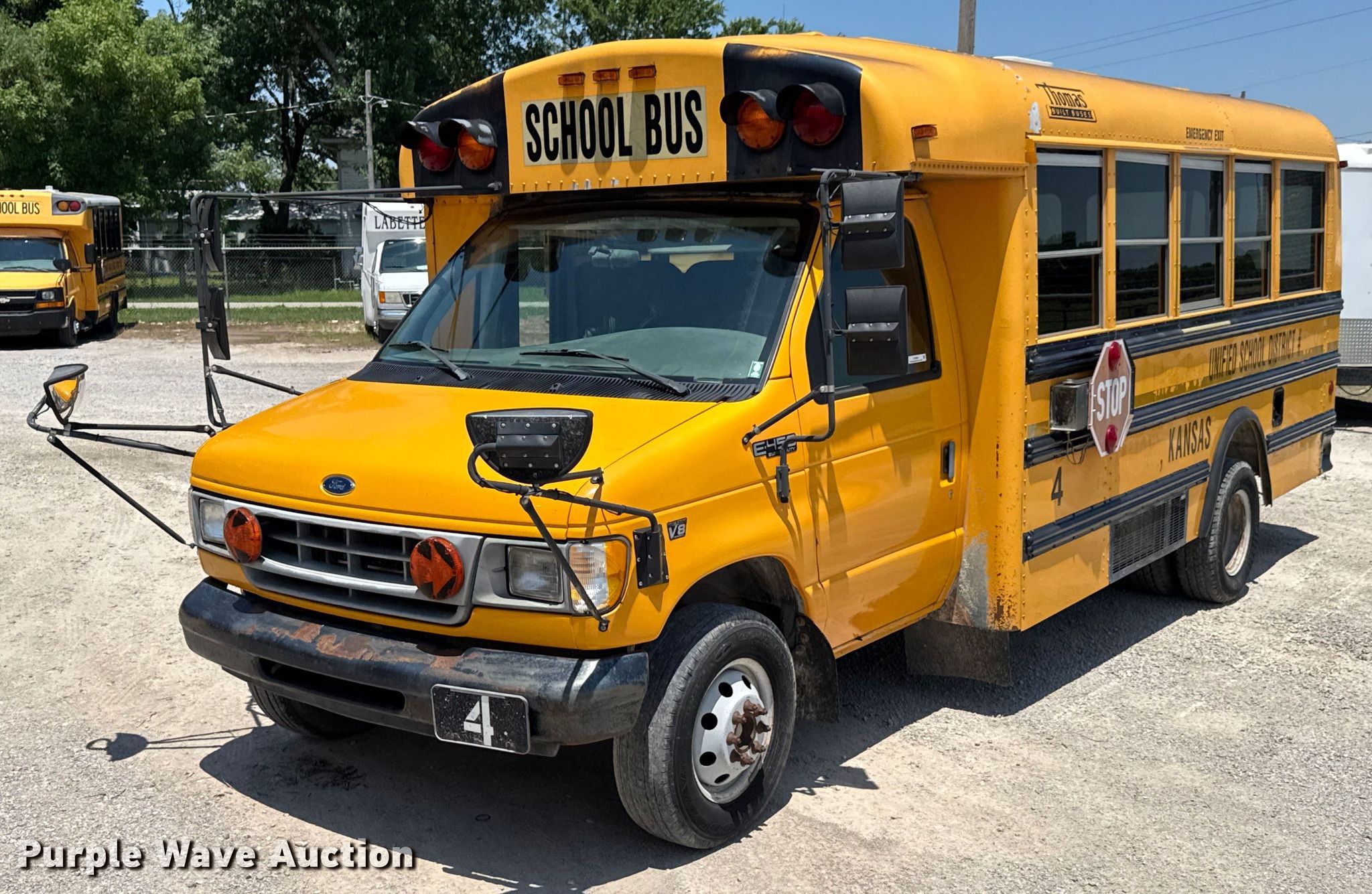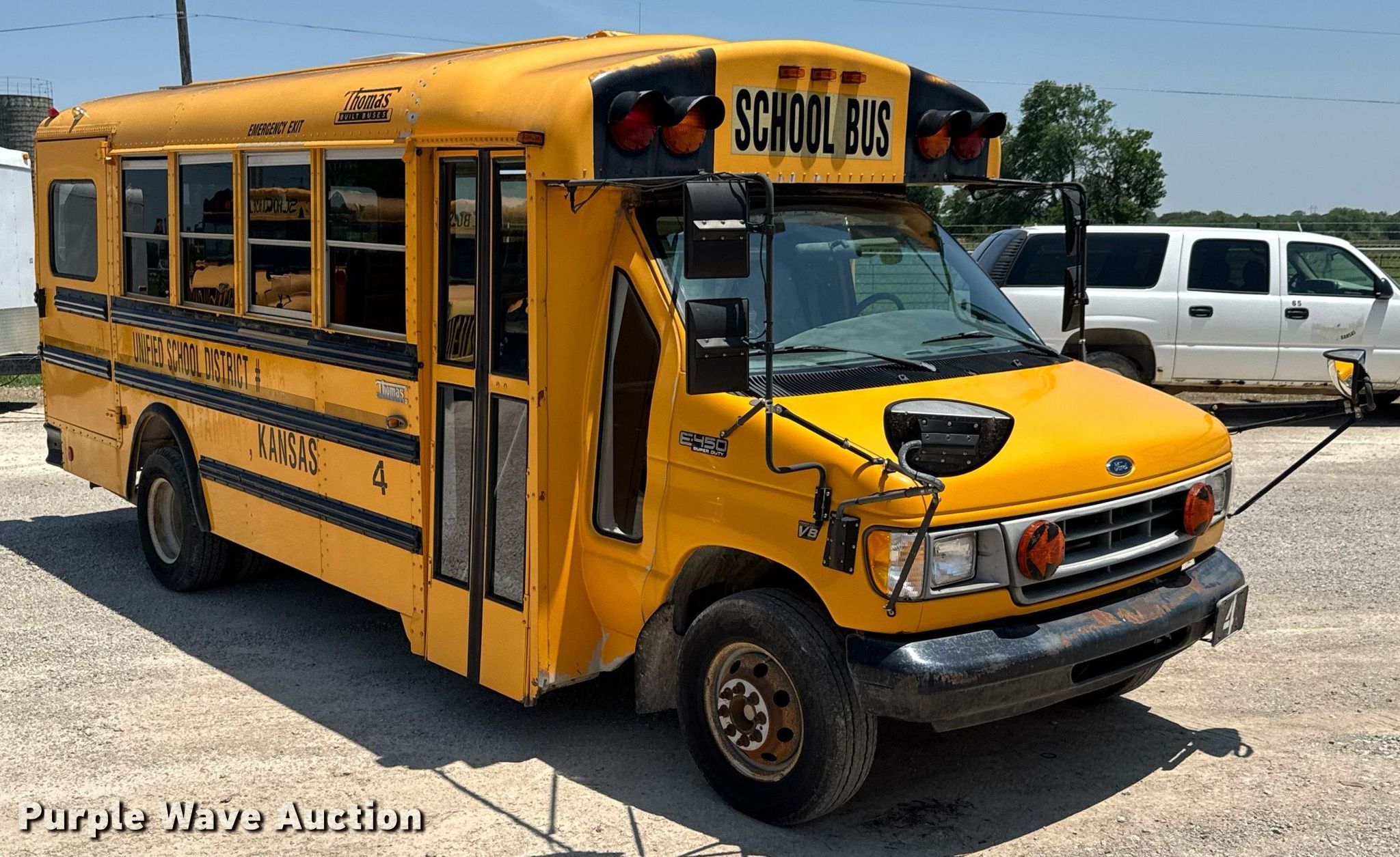 Purple Wave is selling a used Bus in Kansas. This item is a 2001 Ford E450 Super Duty school bus with the following: Miles: 183,032 on odometer, VIN: 1FDXE45F11HA86454
