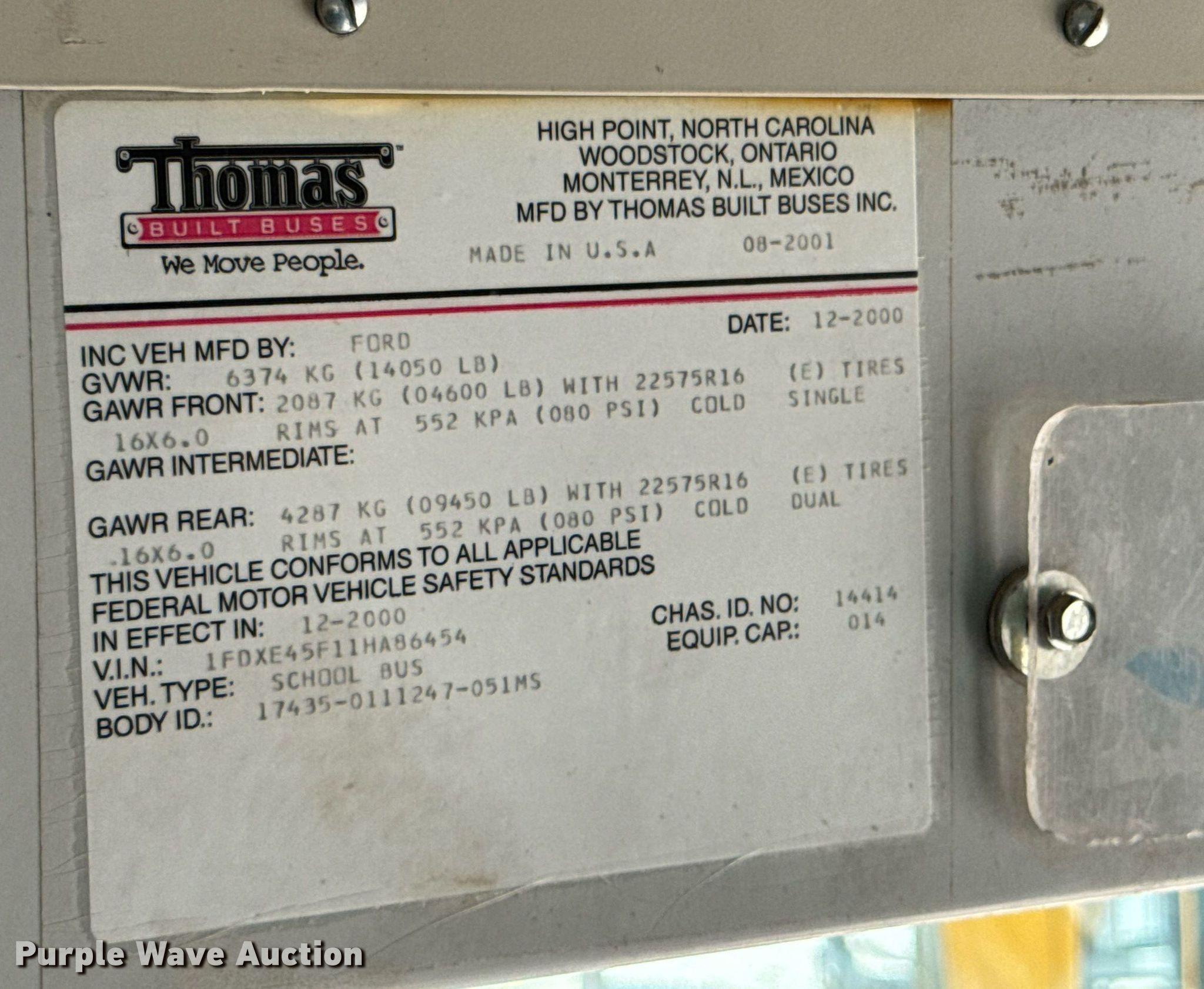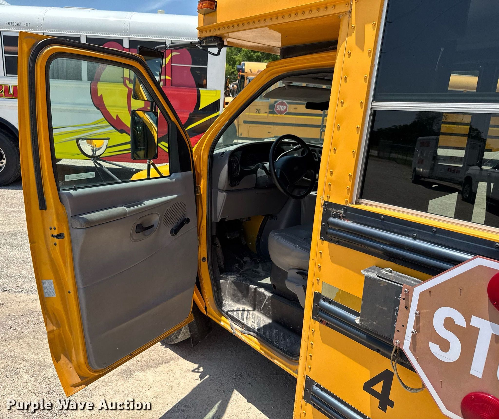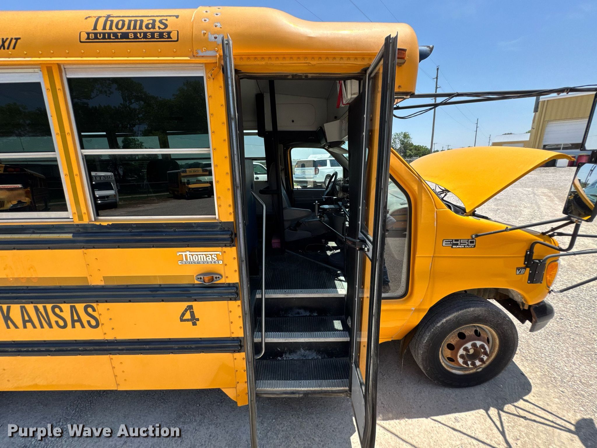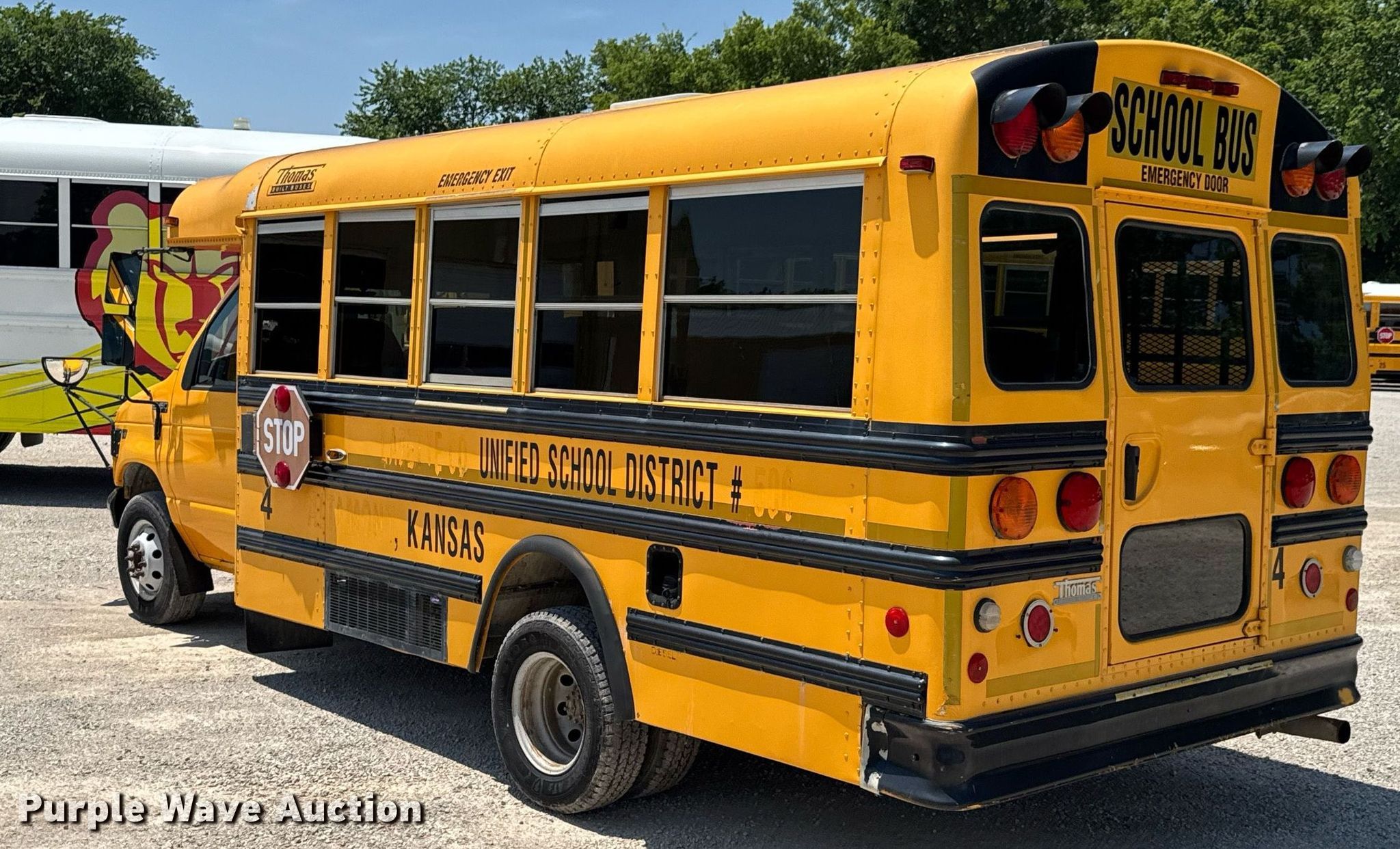 Purple Wave is selling a used Bus in Kansas. This item is a 2001 Ford E450 Super Duty school bus with the following: Miles: 183,032 on odometer, VIN: 1FDXE45F11HA86454