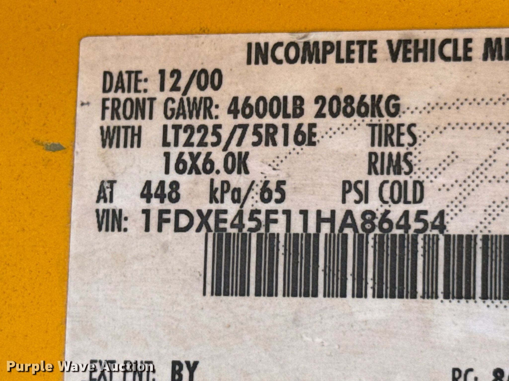 • VIN: 1FDXE45F11HA86454