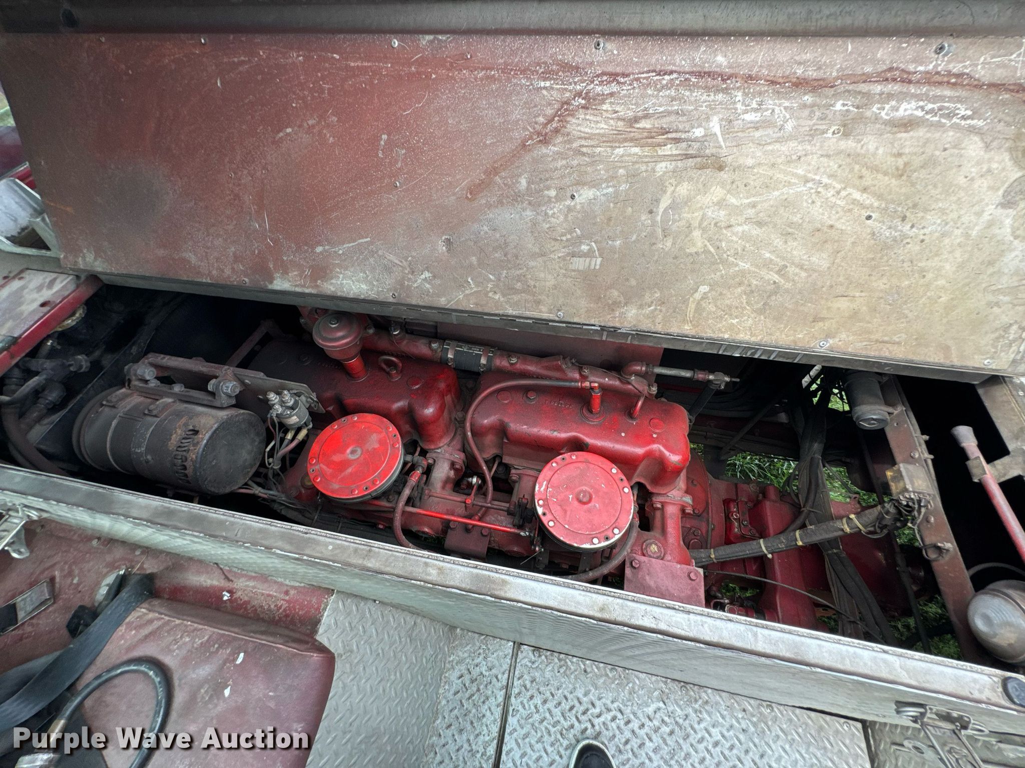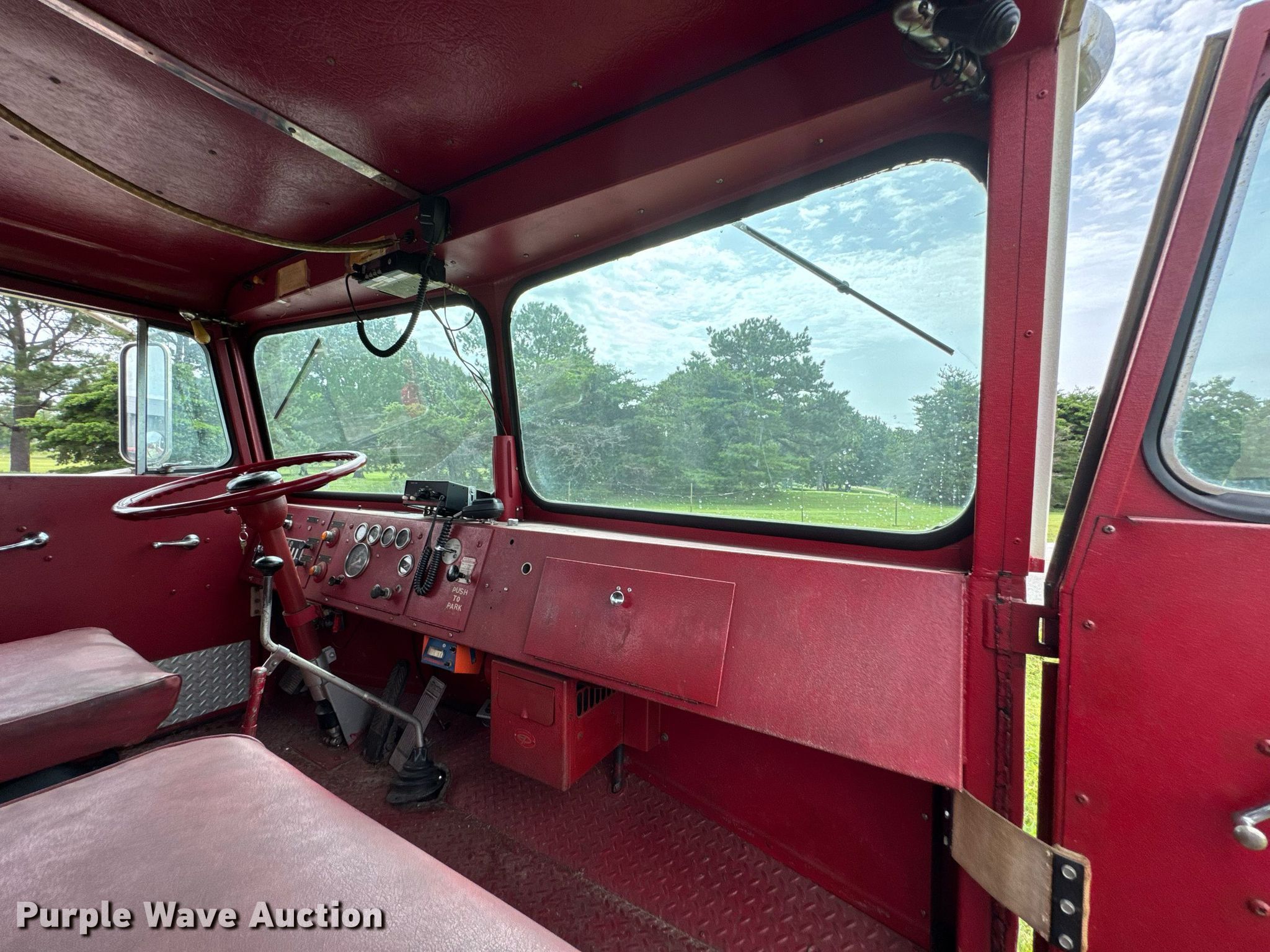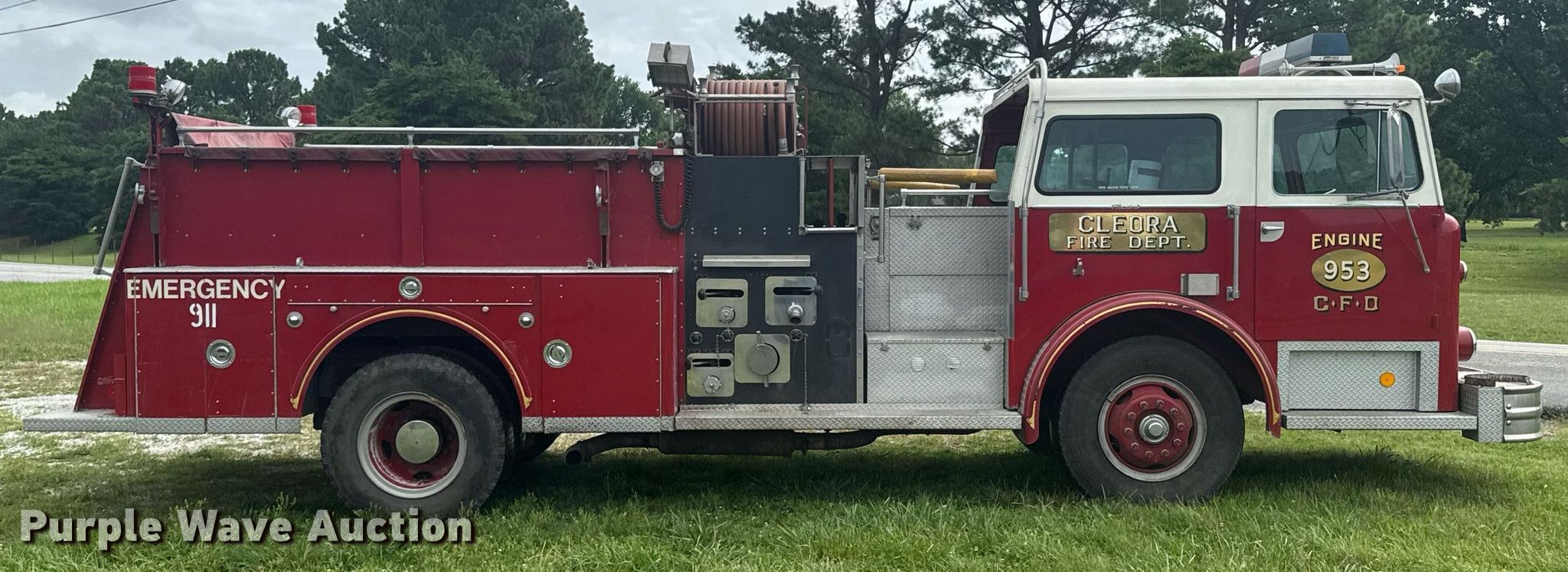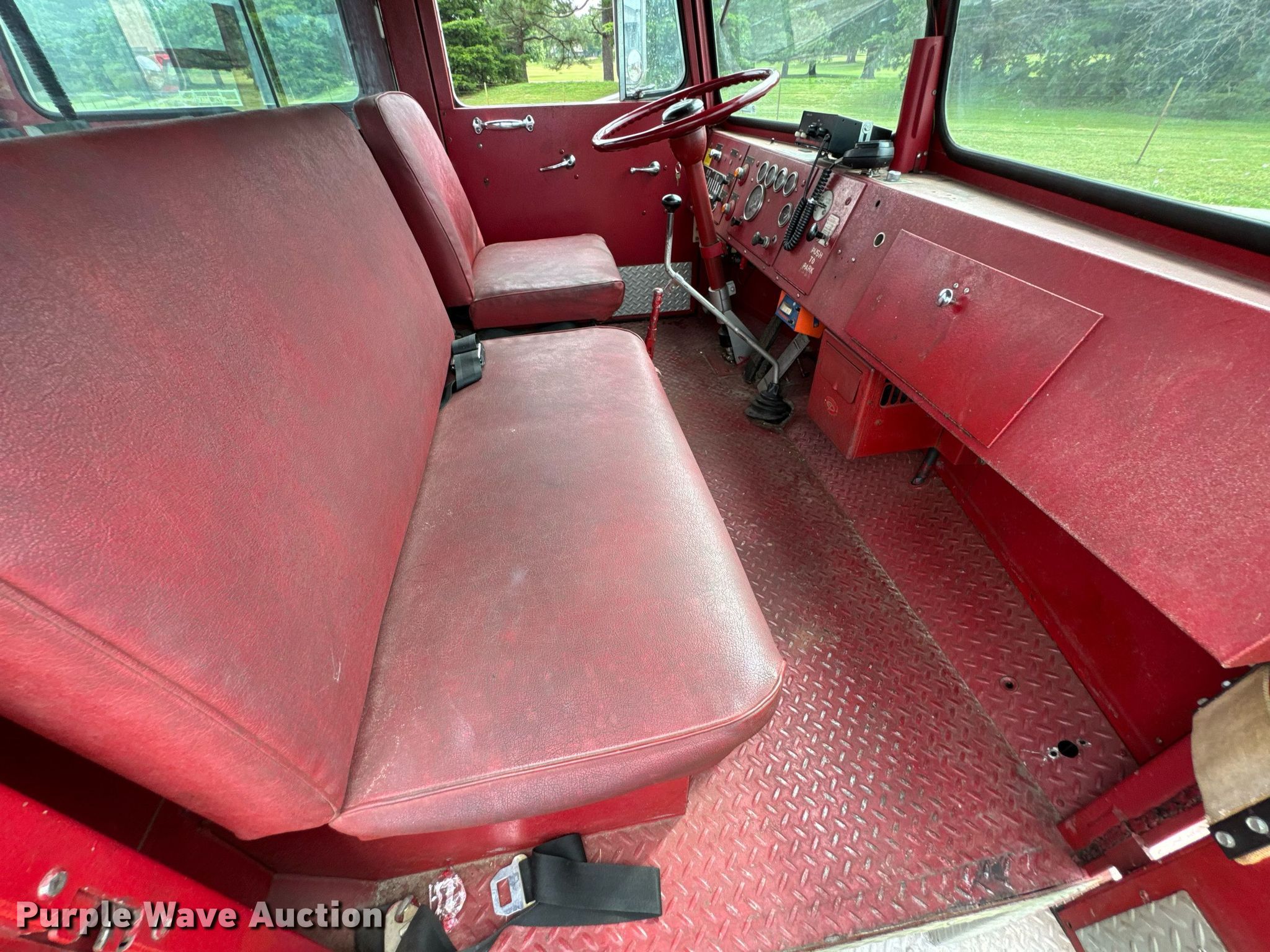 1975 Maxim Motor pumper fire truck. Miles: 24,710 on odometer, VIN: 43249. Engine Cylinders: 6, Fuel type: Gas. Transmission Manual, Speed: 5. Chassis Axles: Single, Suspension: Spring, Brakes: Air, GVWR: 33,280 lbs. Interior Auxiliary controls. Features Fire truck body Maxim Fire, Tank Capacity: 1,500 gallons, Pump 1,000 gpm, PA/ siren controls, Dynamote inverter. Tires Size: 10.00R20. Notes Radio will be removed prior to auction. Oklahoma title. Title distribution may be delayed up to 30 days from verification of funds. Cleora Fire Department. Afton, OK 74331