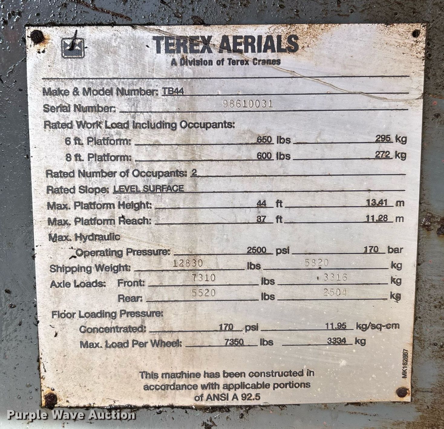 This 1998 Terex TB44 boom lift will sell to the highest bidder regardless of price.