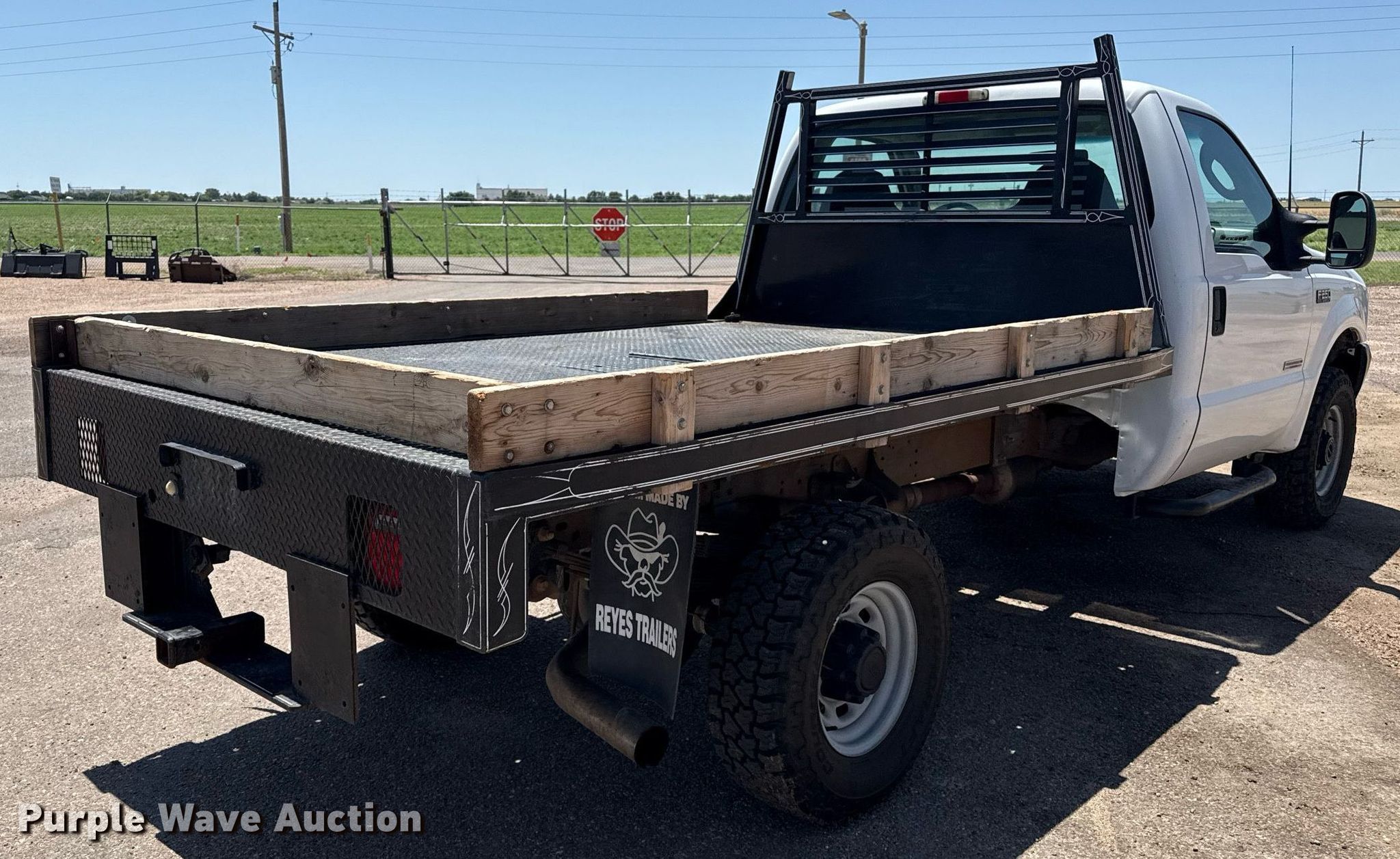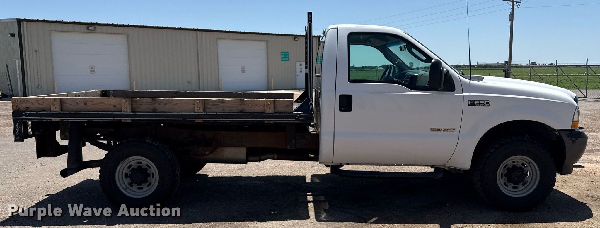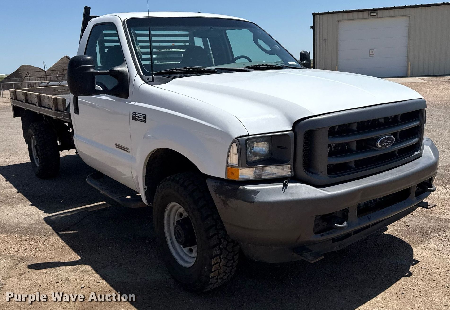 2003 Ford F250 Super Duty flatbed pickup truck. Miles: 130,042 on odometer, VIN: 1FTNF21P93ED28438. Engine Displacement: 6.0L V8 OHV, Cylinders: 8, Fuel type: Diesel. Transmission Automatic, Four wheel drive. Interior AC, Heat, Power windows, Power locks, Cruise control. Features Flatbed 10' L x 77" W. Tires Size: 265/75R16. Kansas title. Title distribution may be delayed up to 14 days from verification of funds. Grant County, KS. Ulysses, KS 67880