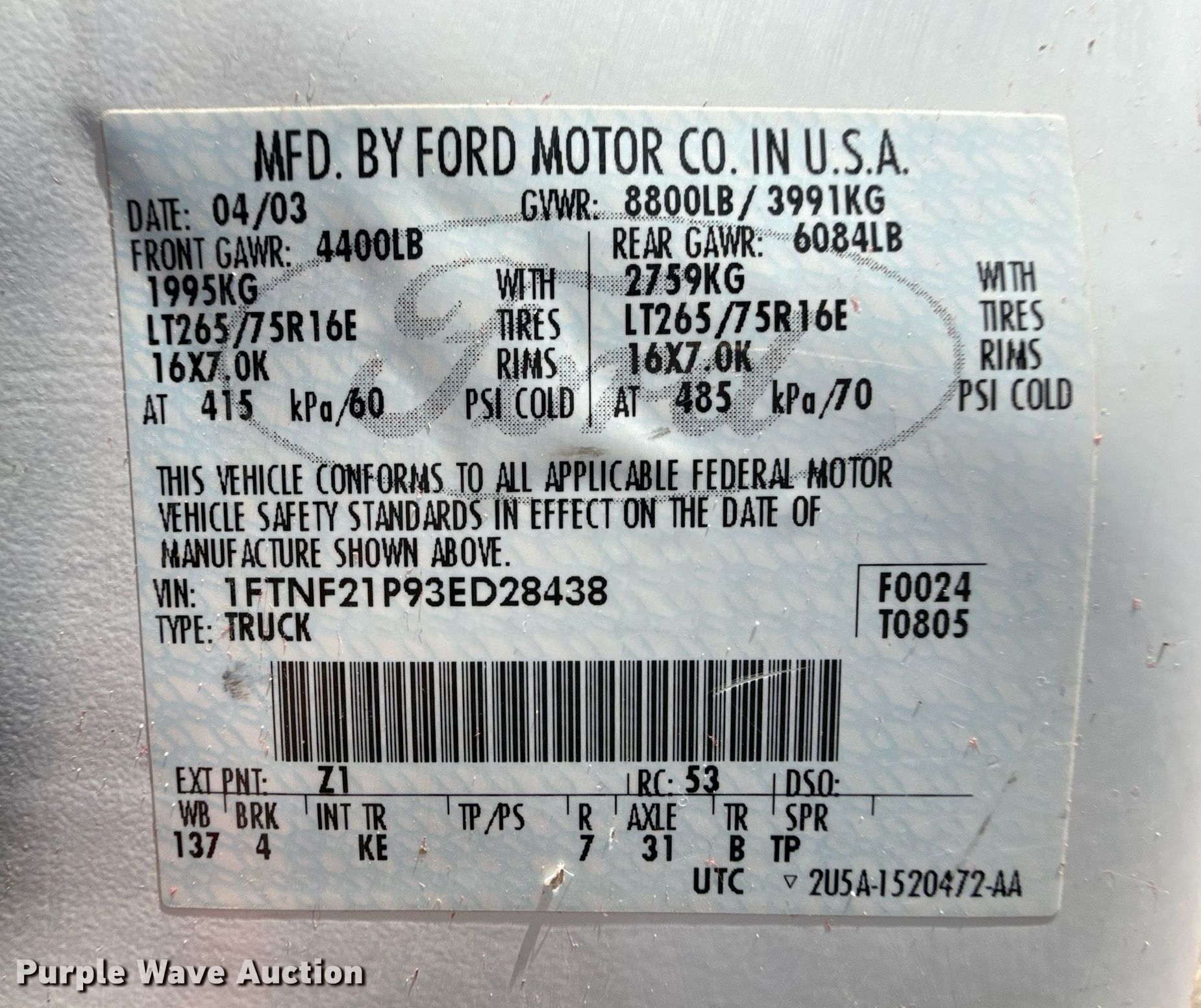 Purple Wave is selling a used 3/4 or 1 Ton Pickup or Van in Kansas. This item is a 2003 Ford F250 Super Duty flatbed pickup truck with the following: Miles: 130,042 on odometer, VIN: 1FTNF21P93ED28438