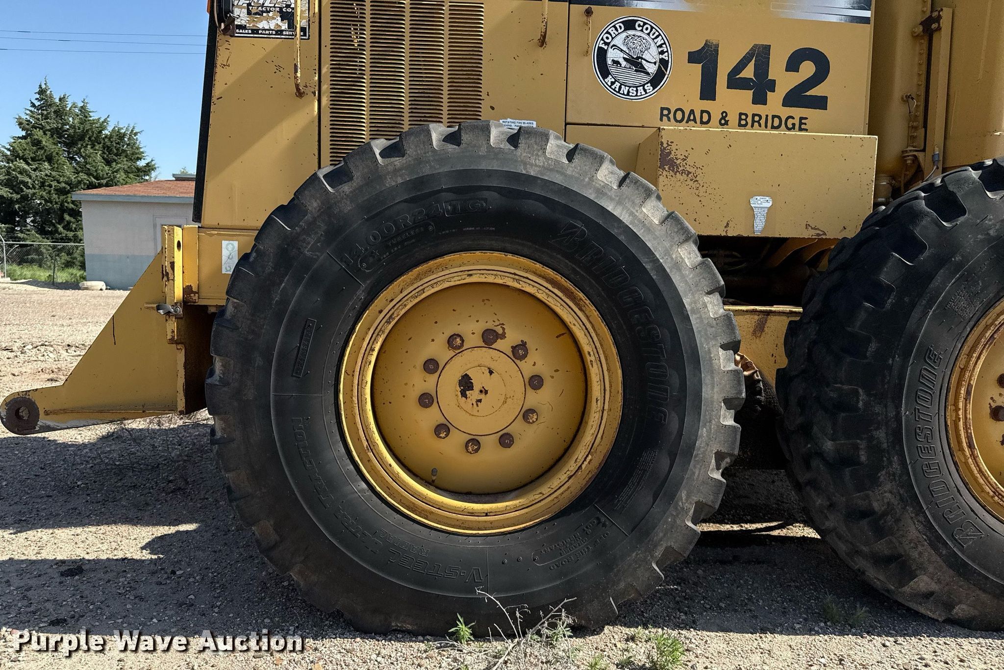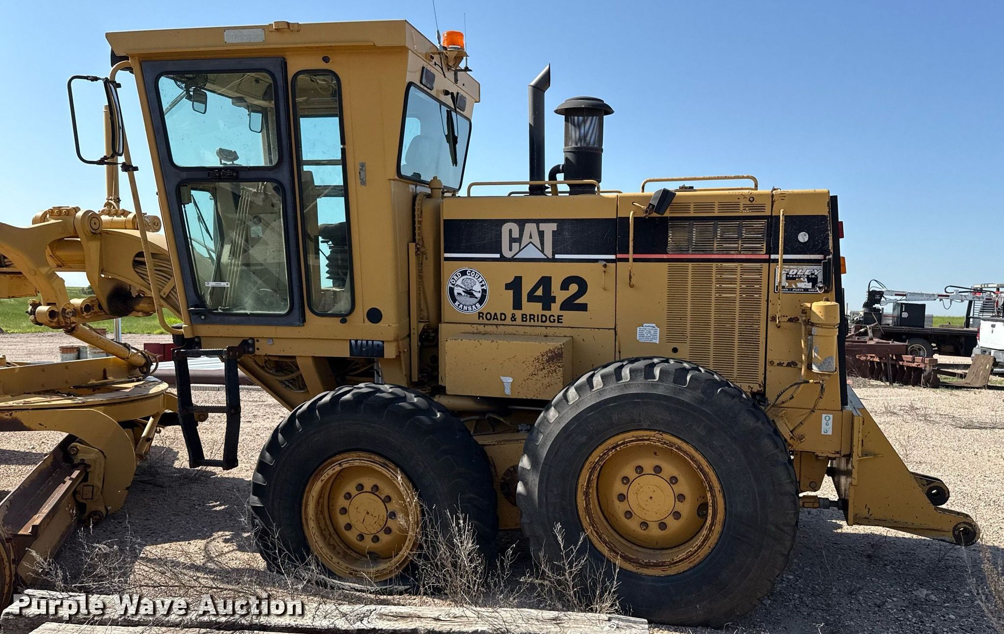 1996 Caterpillar 140H motor grader. Hours: 13,491 on meter, Serial: 2ZK01385. Engine Caterpillar, Cylinders: 6, Fuel type: Diesel. Transmission Powershift, 8F - 6R. Operators station Enclosed cab, Heat, Hydraulic control valves: 9. Features Moldboard: Tip control, Side shift, Moldboard total width: 14', Front-mounted lift group Make: Caterpillar, Scarifier Make: Balderson, Scarifier type: Front-mounted. Tires Size: 14.00R24. Notes Flat tire, Transmission issues , Non-operational unit. Ford County Road & Bridge. Dodge City, KS 67801
