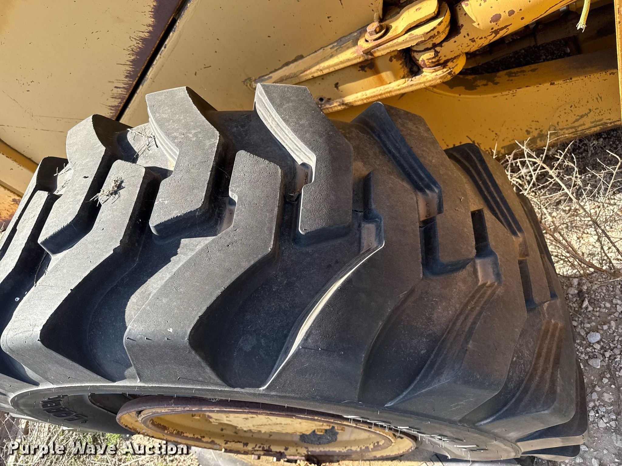 1984 Caterpillar 950B wheel loader. Hours: 6,746 on meter, Serial: 31R01773. Engine Caterpillar, Cylinders: 4, Fuel type: Diesel. Transmission Powershift, 4F - 4R. Operators station Enclosed cab, Heat, Bucket controls: Two-lever. Features Bucket Width: 108", Self- leveling bucket, Cutting edge: Bolt-on. Tires Size: 20.5-25. Notes Flat tires, Glass cracked, Driveshaft issues, Non-operational unit. Ford County Road & Bridge. Dodge City, KS 67801