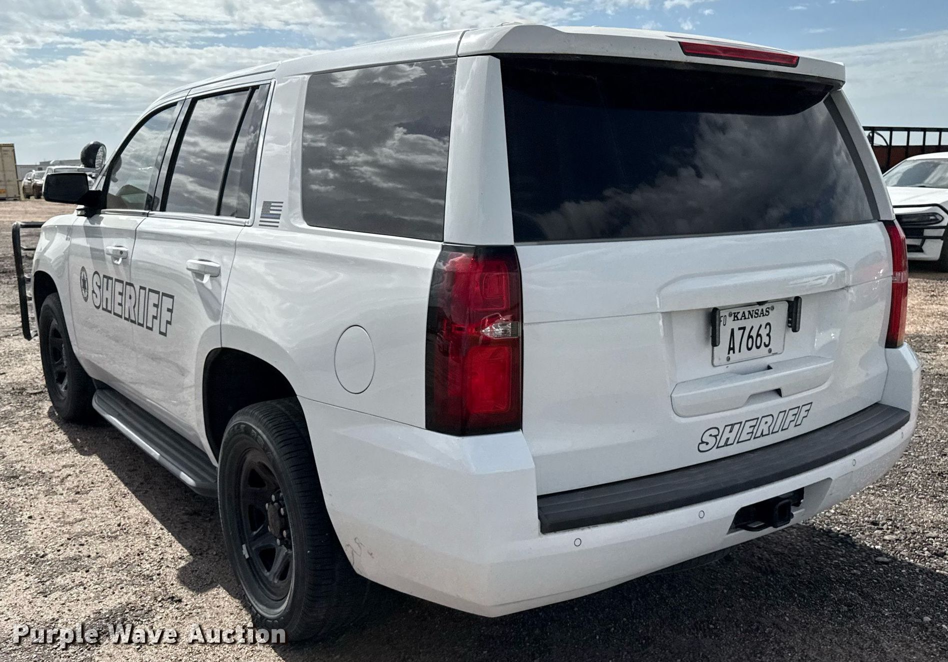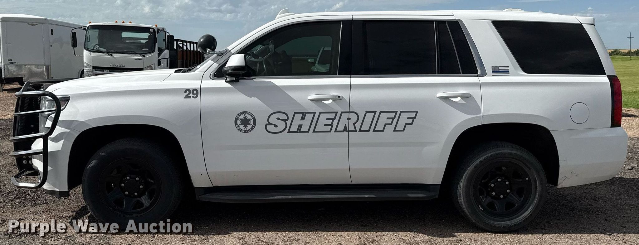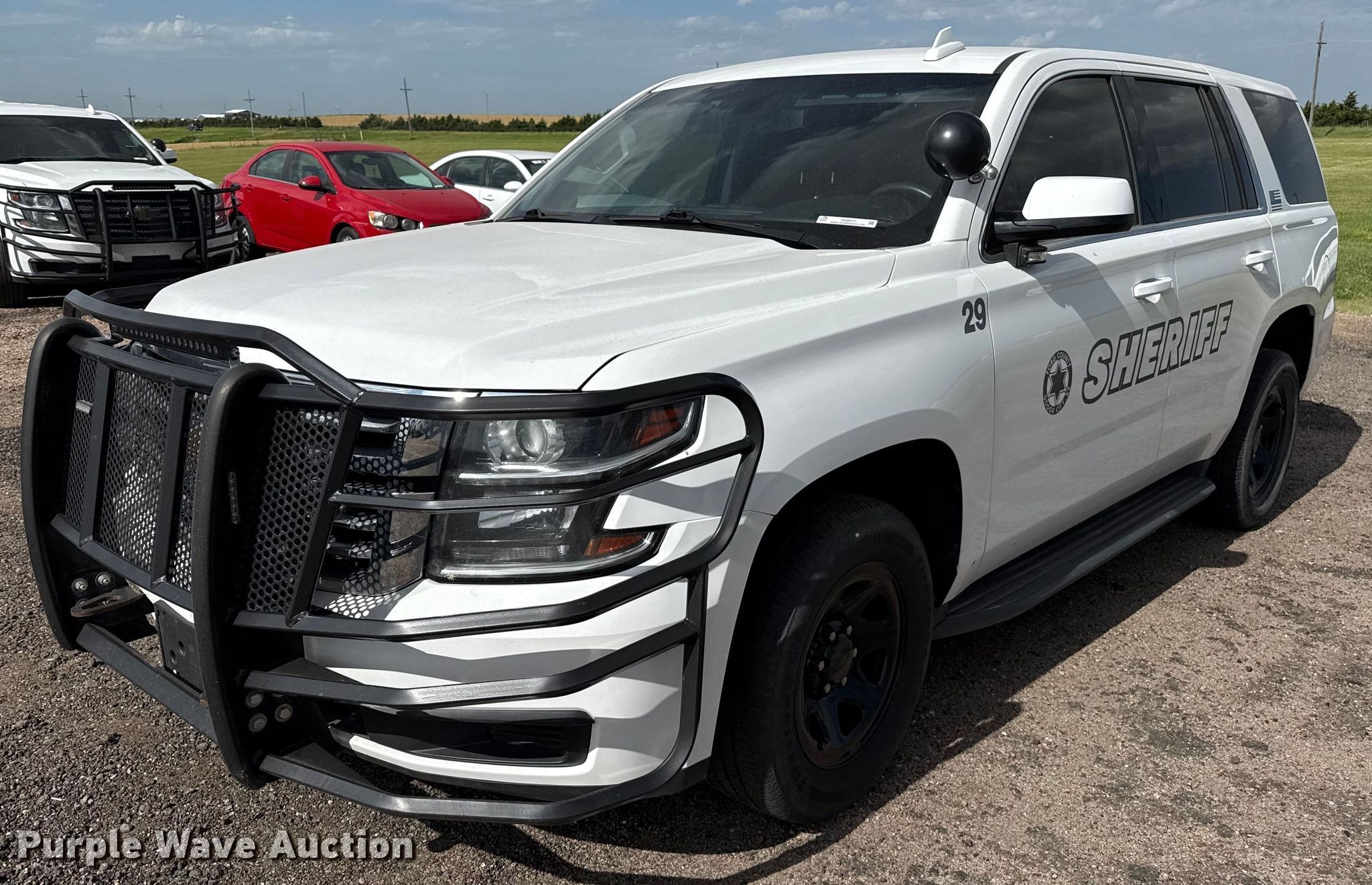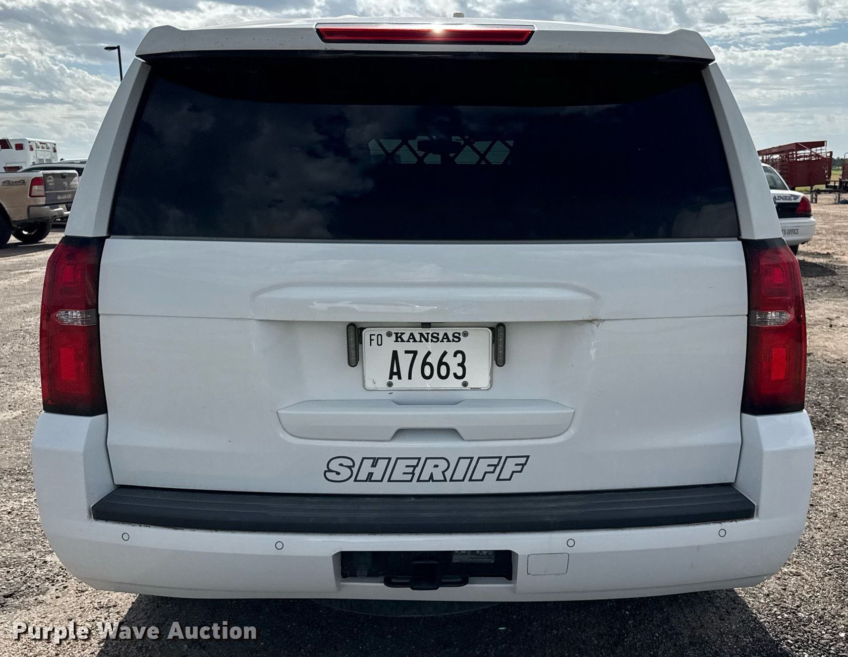 2020 Chevrolet Tahoe Police SUV. Miles: 119,931 on odometer, VIN: 1GNSKDEC0LR269913. Engine Displacement: 5.3L V8 OHV, Cylinders: 8, Fuel type: Gas. Transmission Automatic, Four wheel drive. Interior AC, Heat, Seat: Power driver, Power passenger, Power windows, Power locks, Cruise control. Tires Size: 265/60R17. Kansas title. Title distribution may be delayed up to 14 days from verification of funds. Ford County Sheriff's Office. Dodge City, KS 67801