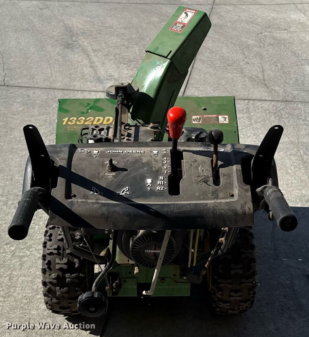 Purple Wave is selling a used Lawn and Garden in Kansas. This item is a John Deere 1332 DDE snow blower with the following: Tecumseh, Cylinders: 1, Fuel type: Gas