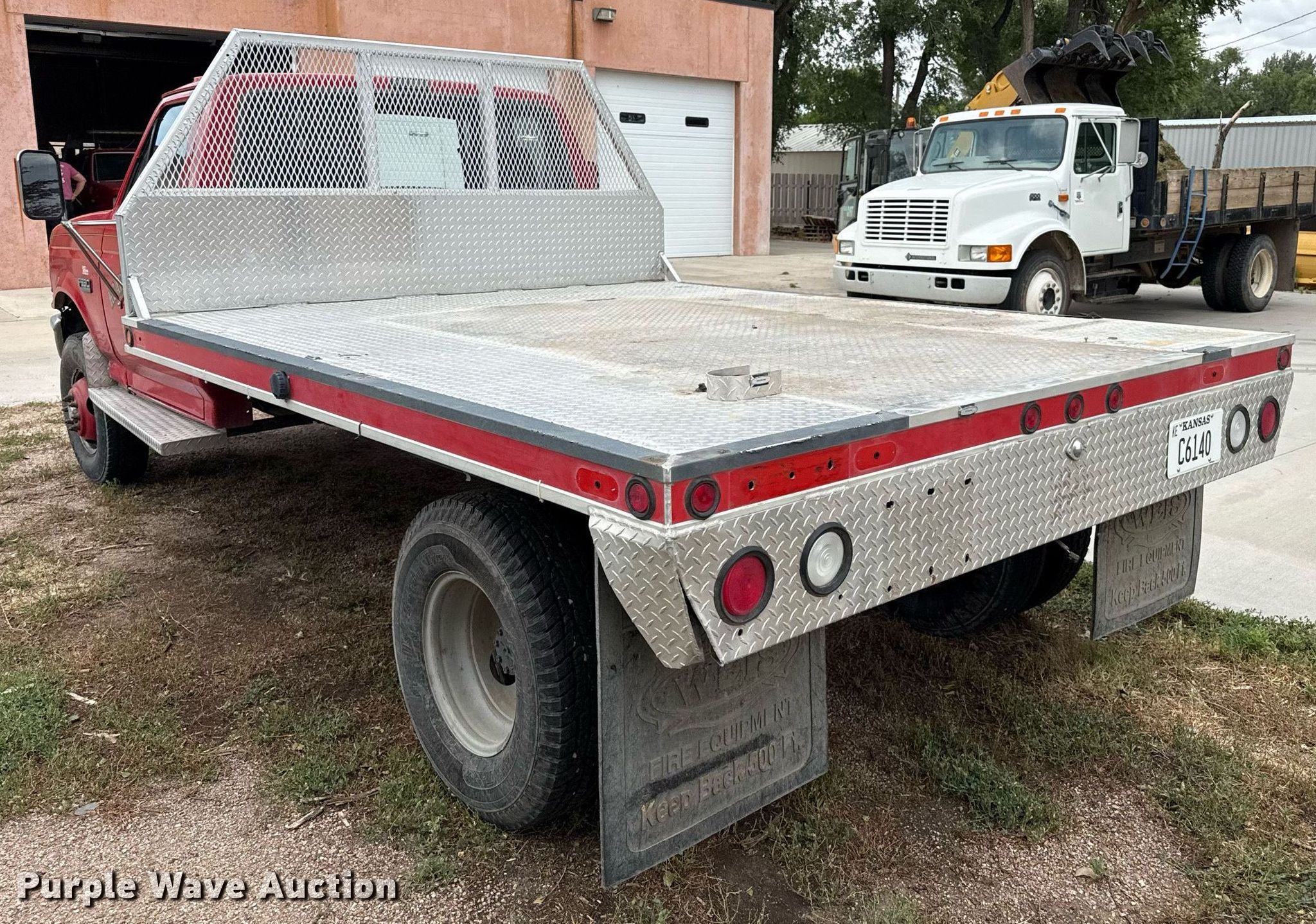 This 1993 Ford F350 flatbed pickup truck will sell to the highest bidder regardless of price.