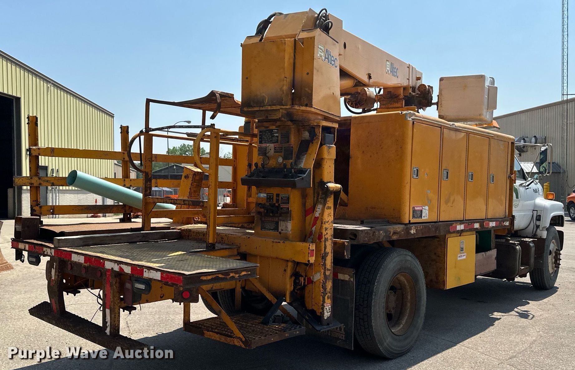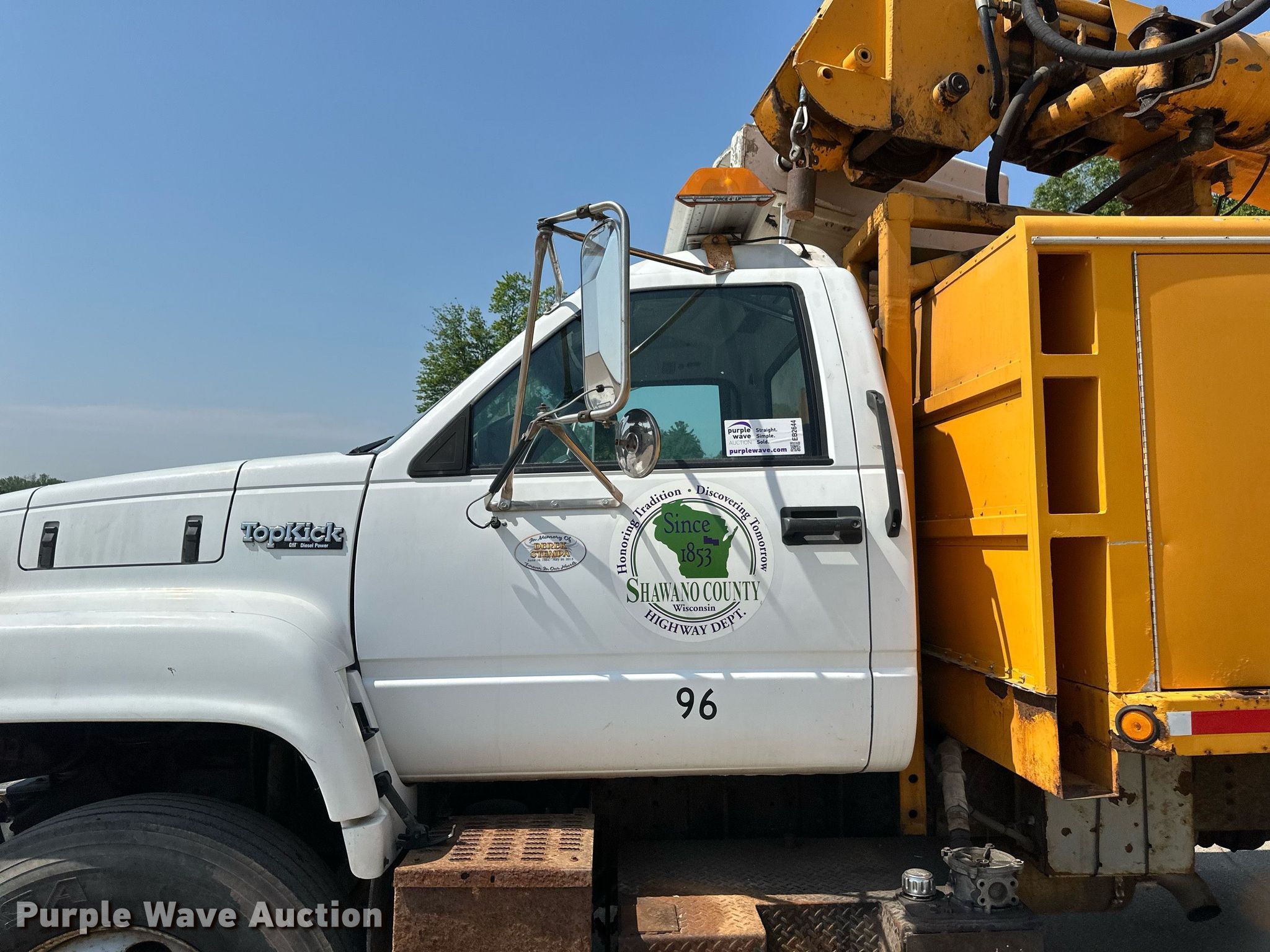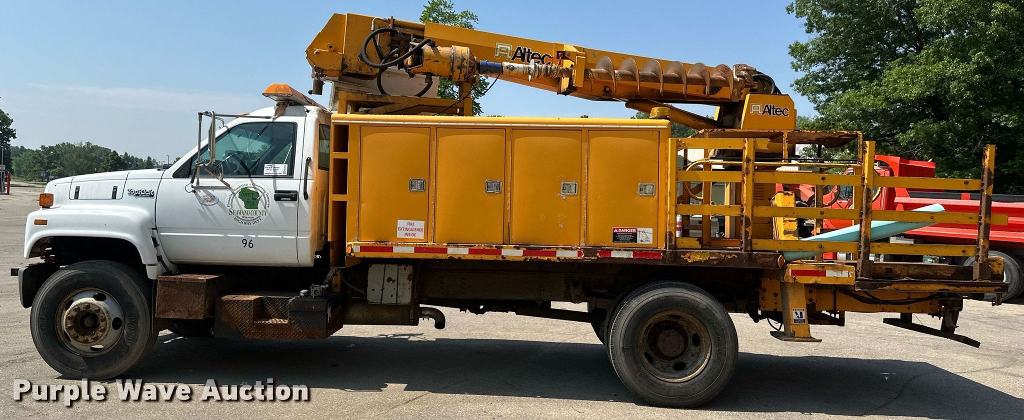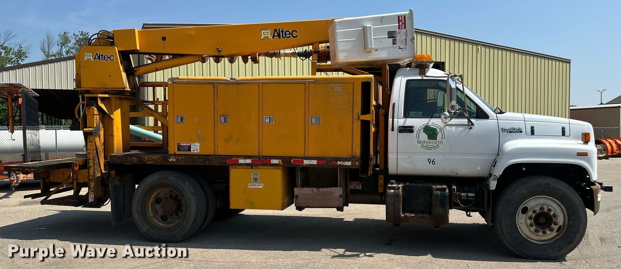 1996 GMC TopKick digger derrick truck. Miles: 198,943 on odometer, Hours: 10,359 on meter, VIN: 1GDM7H1J6TJ500340. Engine Caterpillar 3116, Displacement: 6.6L, Cylinders: 6, Fuel type: Diesel. Transmission Allison, Automatic. Chassis Axles: Single, Suspension: Spring, Brakes: Air, PTO. Interior AC, Heat. Features Bed Dueco, 18' 5" L x 8' W, Boom Altec D800BC, Serial: 0280-A0547, Boom length: 27', Mast height: 36', Boom type: Articulating, Telescopic, Man basket, Boom controls Ground, Auger Diameter: 16".. Tires Size: 11R22.5. Wisconsin title. Seller is a government entity who will be assigning and distributing the title. Please contact the seller for distribution questions. Shawano County Highway Department, WI. Shawano, WI 54166
