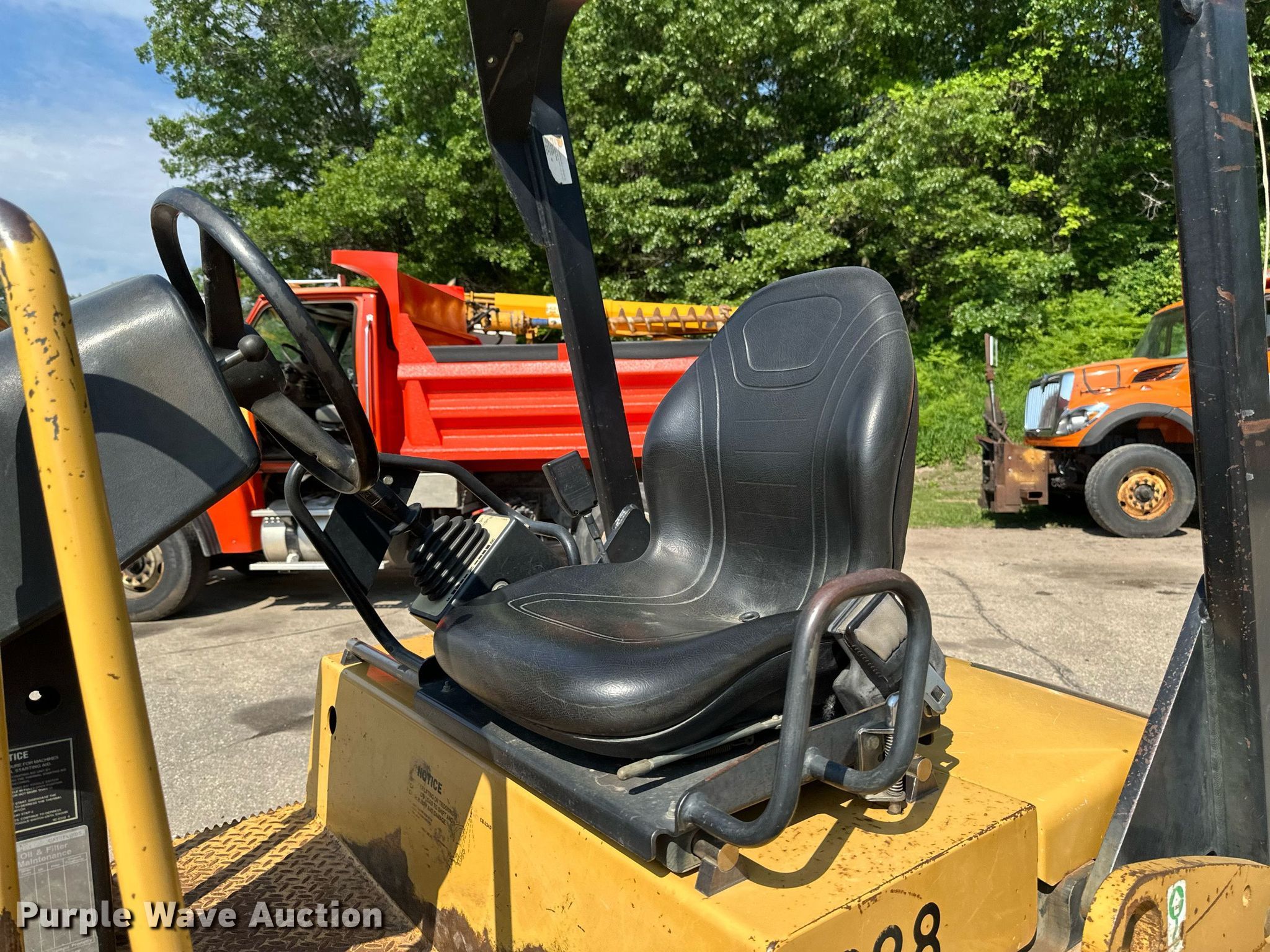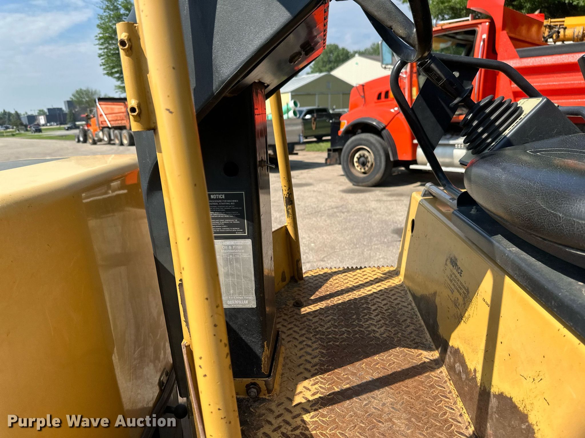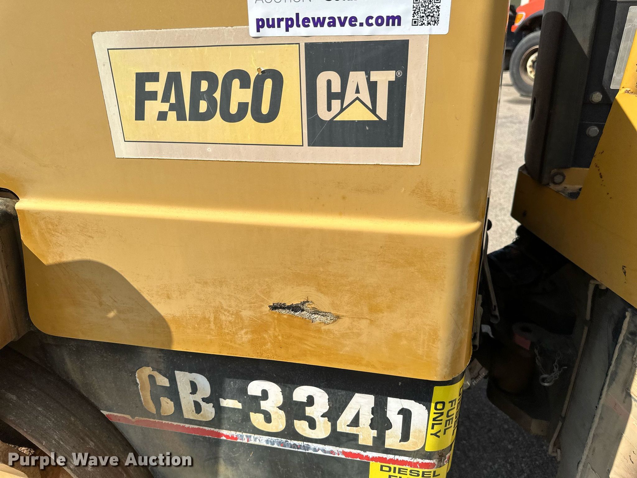 2000 Caterpillar CB334D double drum roller. Hours: 5,778 on meter, Serial: 4HW00216. Engine Caterpillar Perkins, Cylinders: 4, Fuel type: Diesel. Transmission Hydrostatic. Operators station Vandal cover. Features Drum: Smooth, Vibratory system: Double, Independent drum controls, Front drum Width: 51", Diameter: 31", Rear drum Width: 51", Diameter: 31", Drum scrapers: Front, Rear, Water spray applicator: Front, Rear. Shawano County Highway Department, WI. Shawano, WI 54166