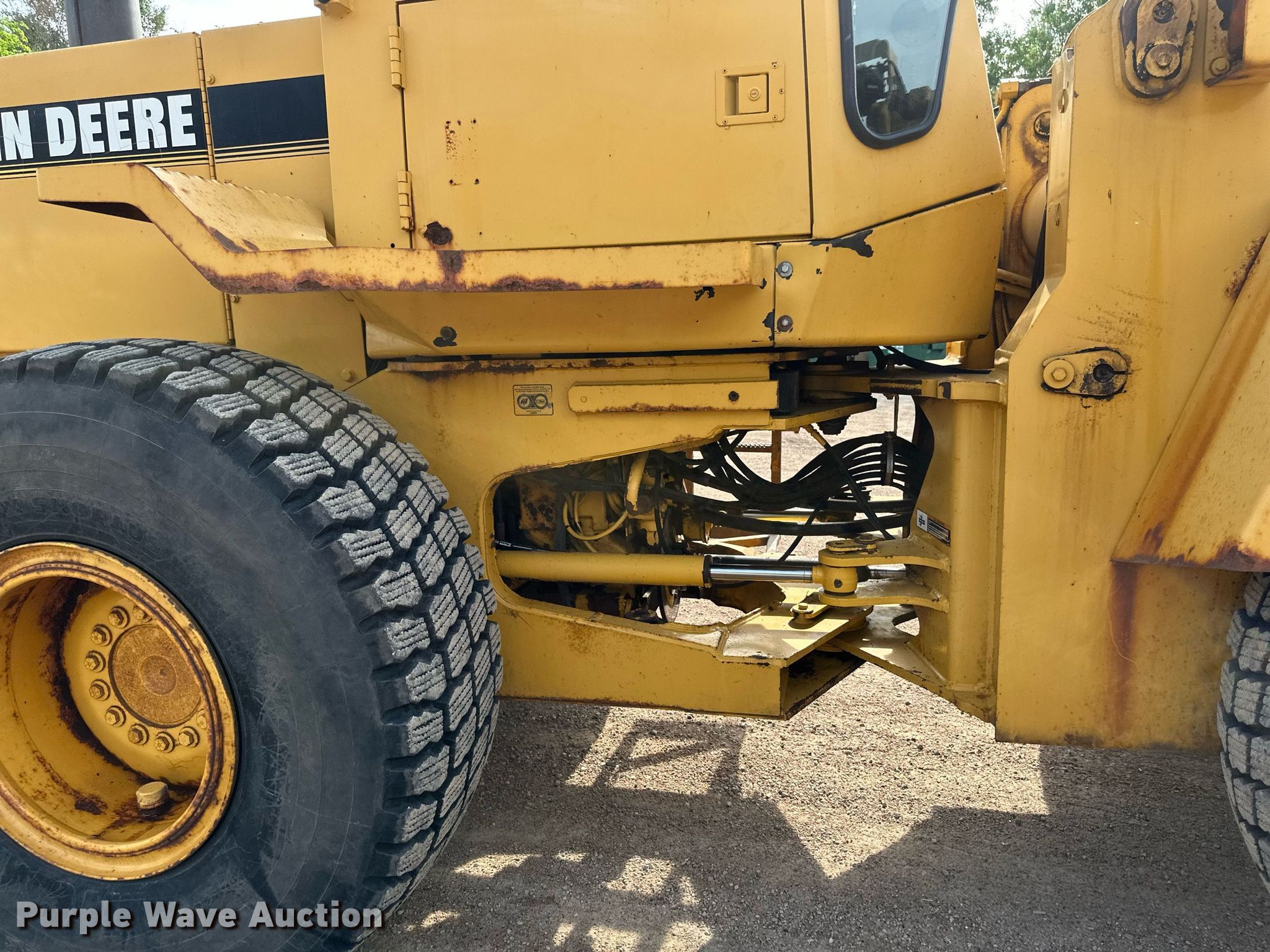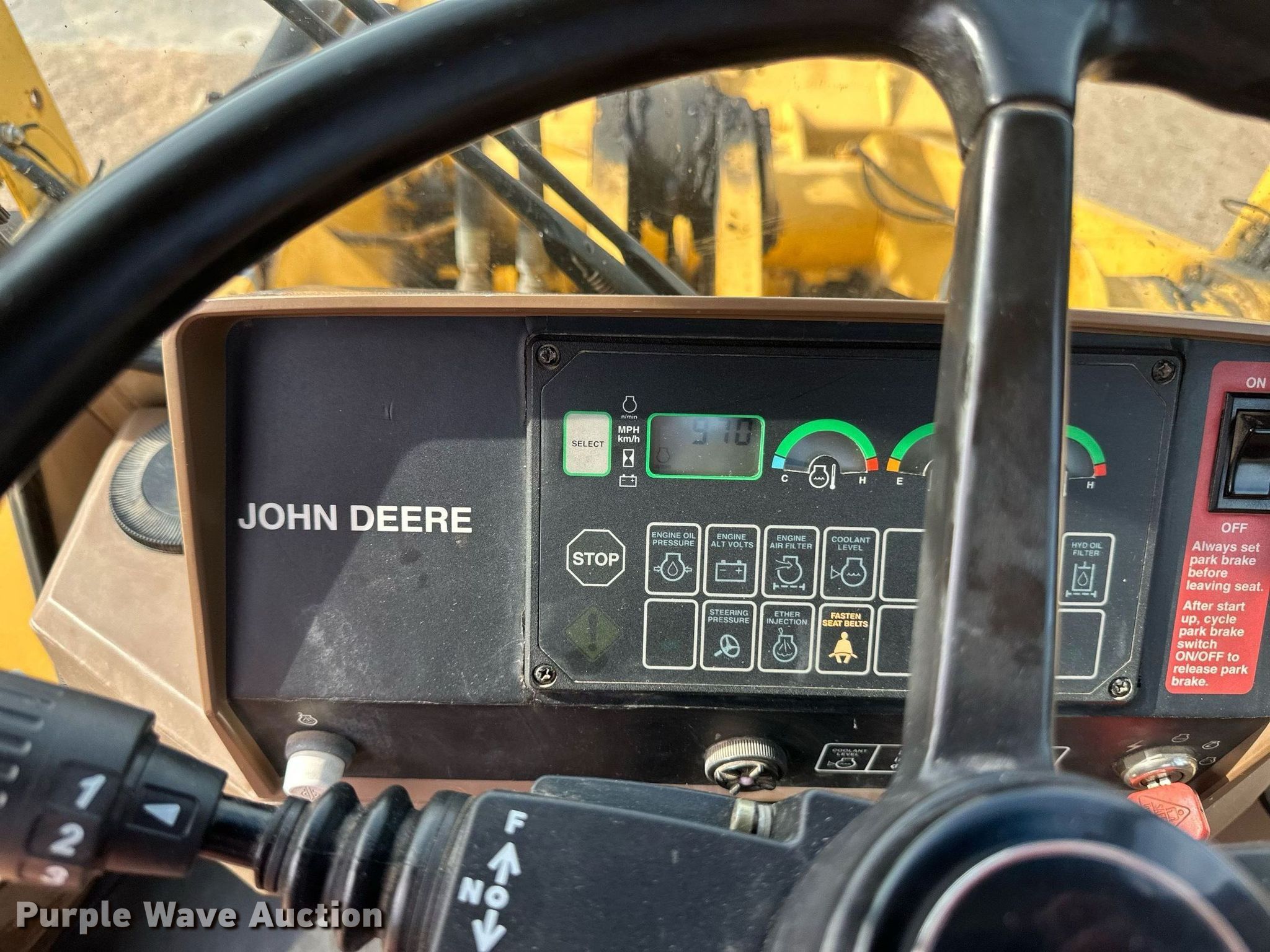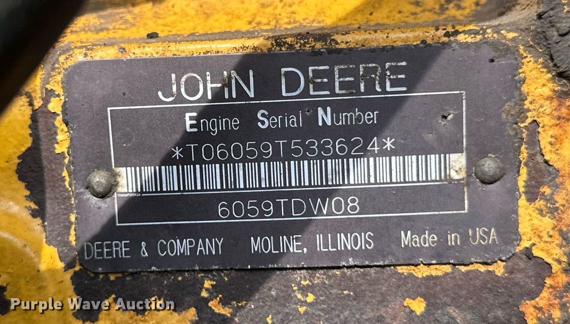 John Deere 544G wheel loader. Hours: 7,188 on meter. Engine John Deere 6059TDW08, Serial: T0659T533624, Cylinders: 6, Fuel type: Diesel. Transmission Powershift, 4F - 4R. Operators station Enclosed cab, Heat, Bucket controls: Joystick. Features Auxiliary hydraulics: Front, Auxiliary electrical outlet, Quick coupler: Hydraulic, Counter weights, Bucket ACS, Width: 99", Cutting edge: Bolt-on. Tires Size: 20.5R25. Notes Differential lock. Bloomington, MN 55438