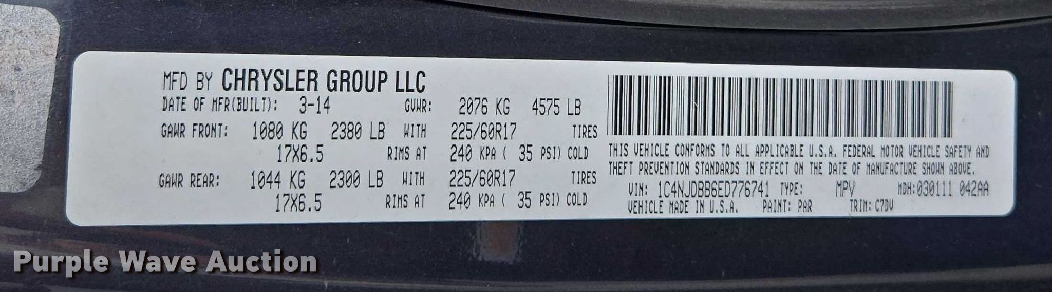 Purple Wave is selling a used Passenger Vehicle in Arkansas. This item is a 2014 Jeep Compass SUV with the following: Miles: 163,517 on odometer, VIN: 1C4NJDBB6ED776741, Unit #: 3422