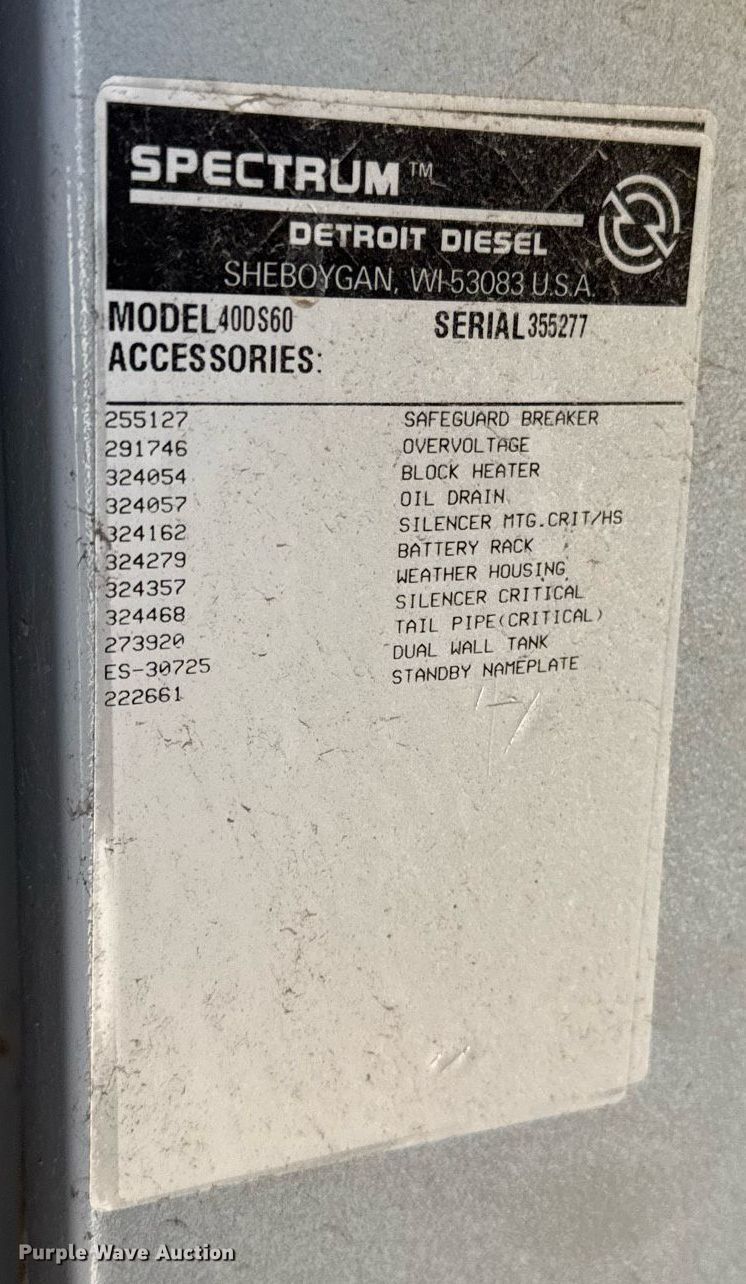 Purple Wave is selling a used Generator Set in Kansas. This item is a Spectrum 40DS60 generator with the following: Hours: 1,124 on meter