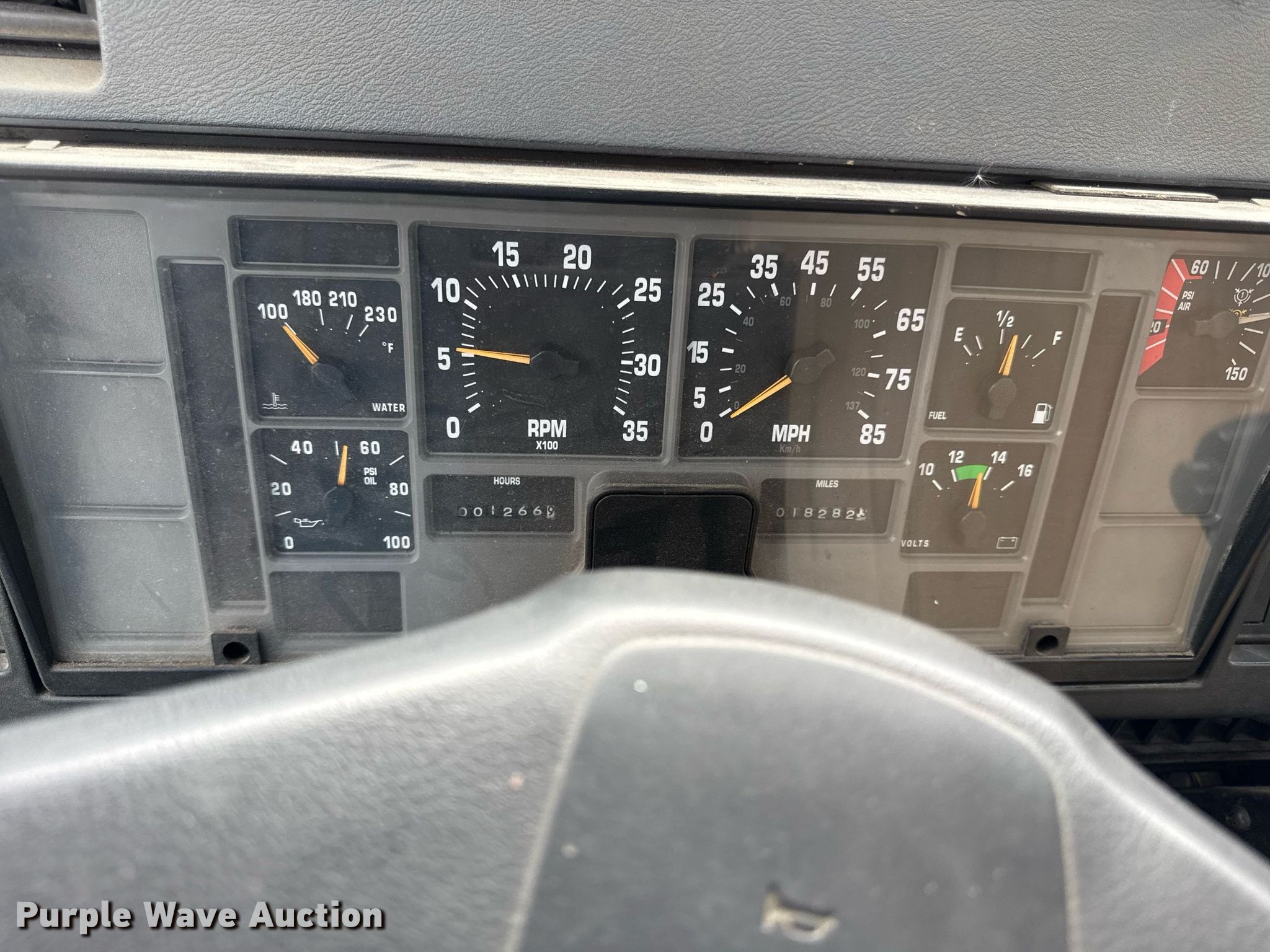 1994 International 4900 pumper fire truck. Miles: 18,283 on odometer, Hours: 1,267 on meter, VIN: 1HTSDAAR5RH593100. Engine Cummins, Displacement: 14.01L, Cylinders: 6, Fuel type: Diesel. Transmission Automatic. Chassis Axles: Single, Suspension: Spring, Brakes: Air. Interior Heat. Features Fire truck body W.S Darley & Co, Elevated deck gun, Pump 1,500 gpm.. Tires Front: 11R22.5, Rear: 10R22.5. Kansas title. Title distribution may be delayed up to 30 days from verification of funds. Douglas County. Lawrence, KS 66046