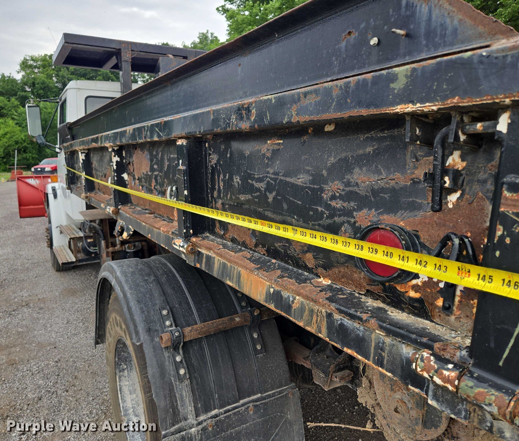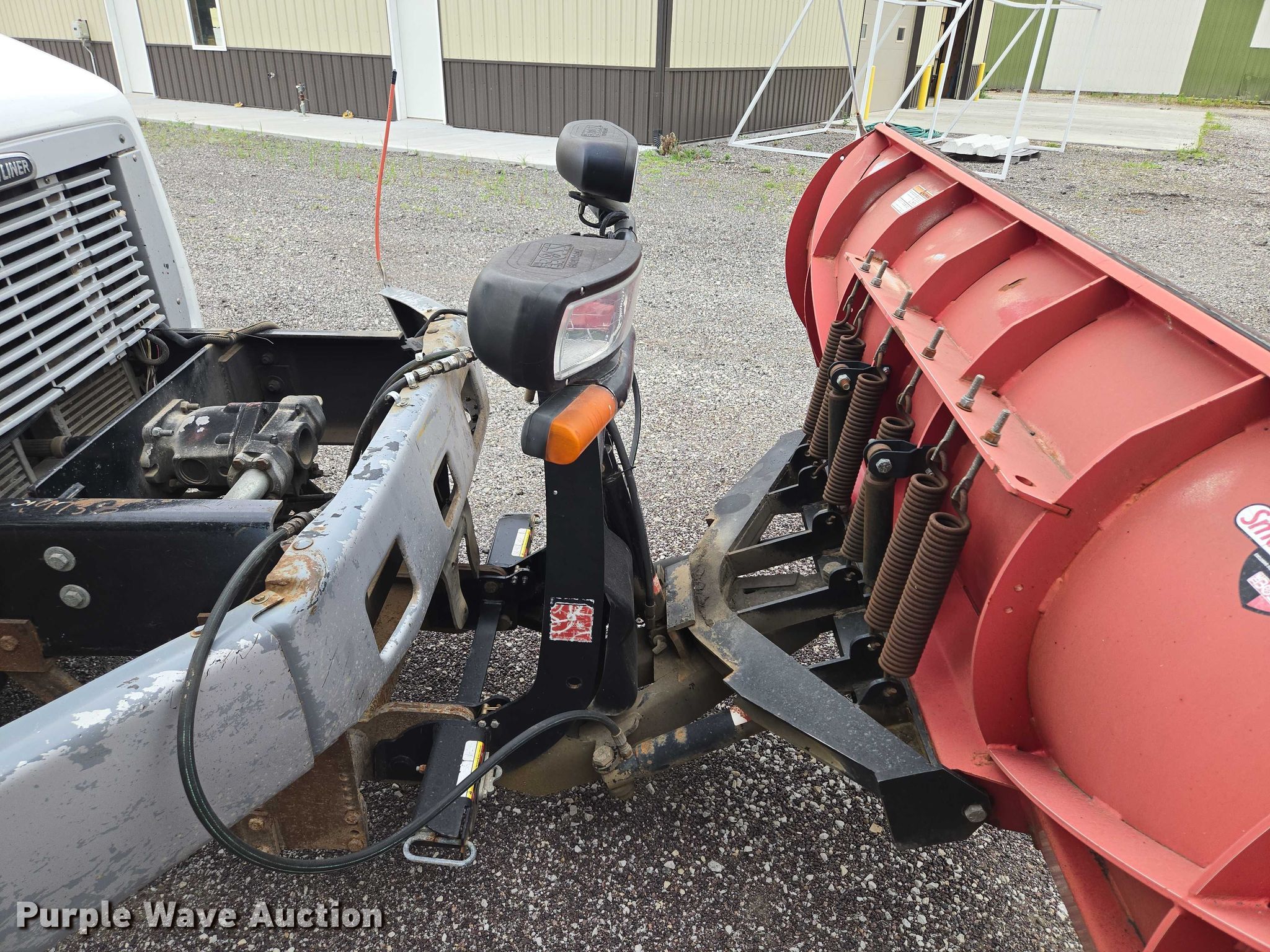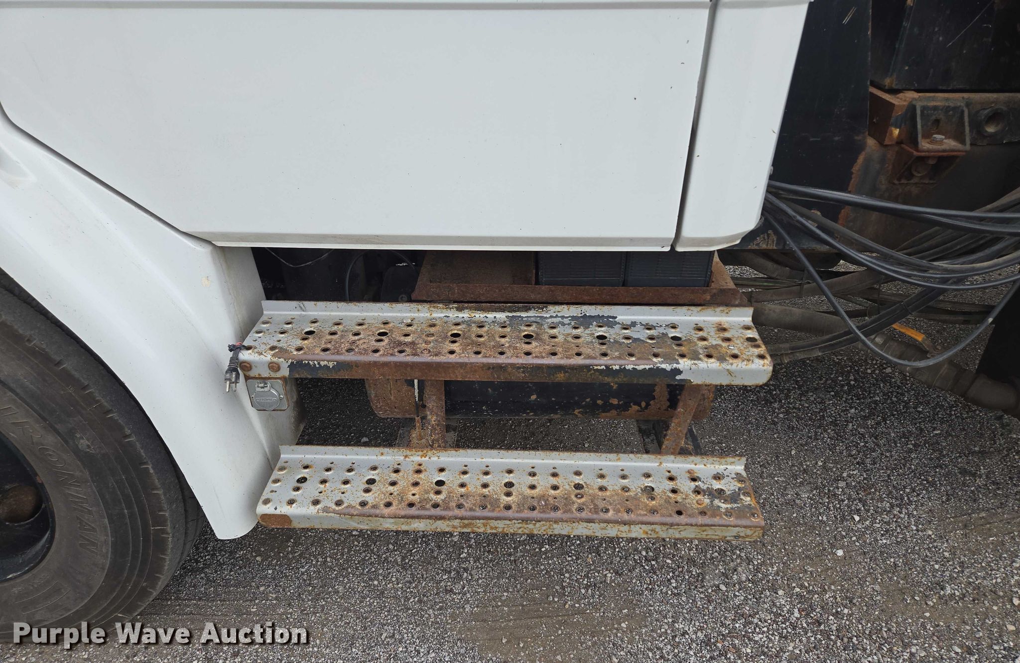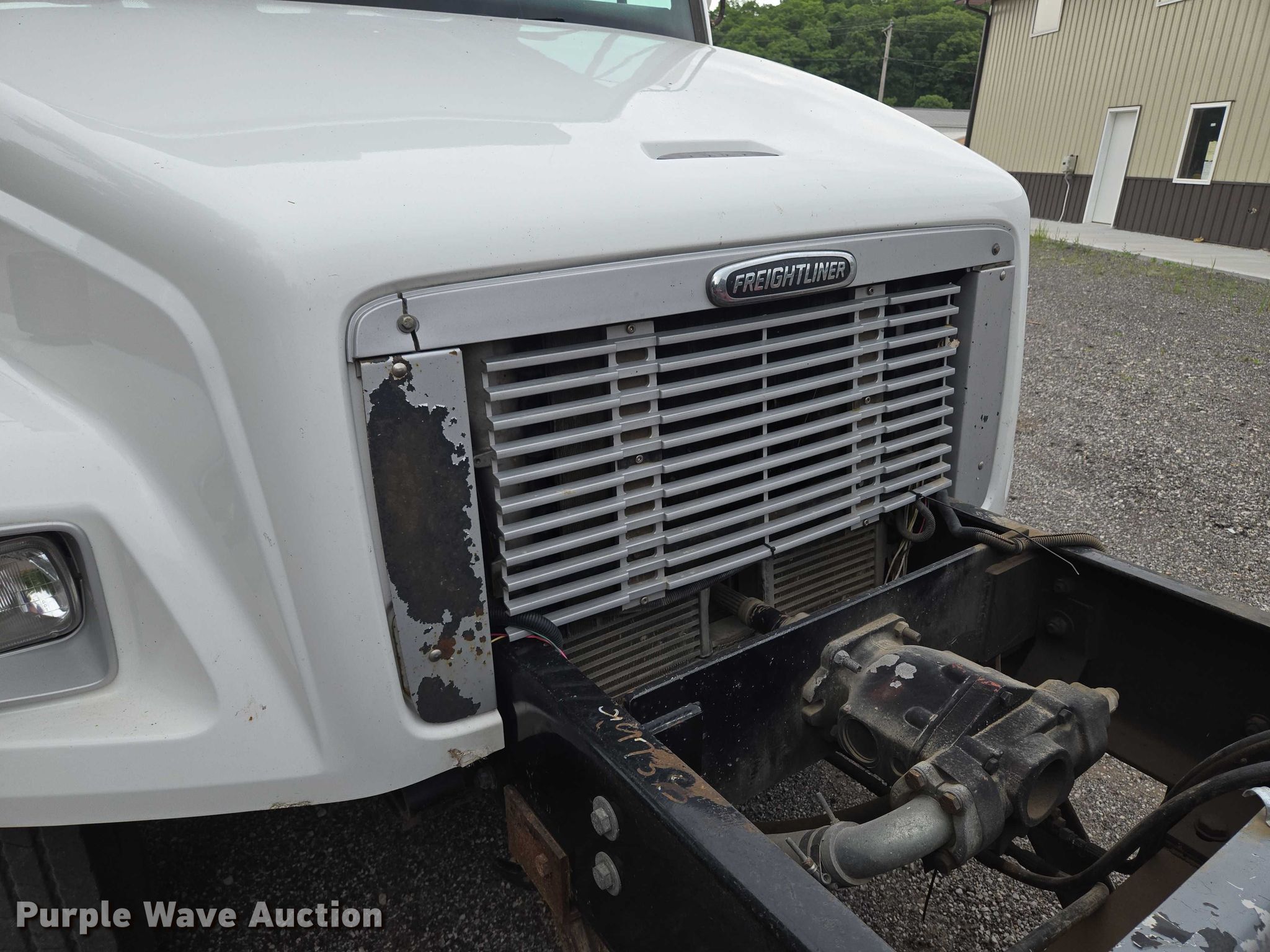 2003 Freightliner FL80 hook lift truck. Miles: 163,464 on odometer, VIN: 1FVABXAK53DL99738. Engine Caterpillar 3126, Displacement: 7.2L, Cylinders: 6, Fuel type: Diesel. Transmission Manual. Chassis Axles: Single, Suspension: Spring, Brakes: Air, Front mount PTO, Wet kit, GVWR: 37,000 lbs. Interior AC, Heat, Cruise control, Brake controller. Features Hook lift bed Stellar 120-16-20, Serial: C103ZH233S, 14' L x 90" W, Ram: Single, Boss plow Width: 10'. Tires Size: 12R22.5. Notes Unknown operating condition of AC, Dead battery, Left headlight missing, Right headlight housing damaged. Missouri title. Title distribution may be delayed up to 14 days from verification of funds. City of Excelsior Springs, MO. Excelsior Springs, MO 64024