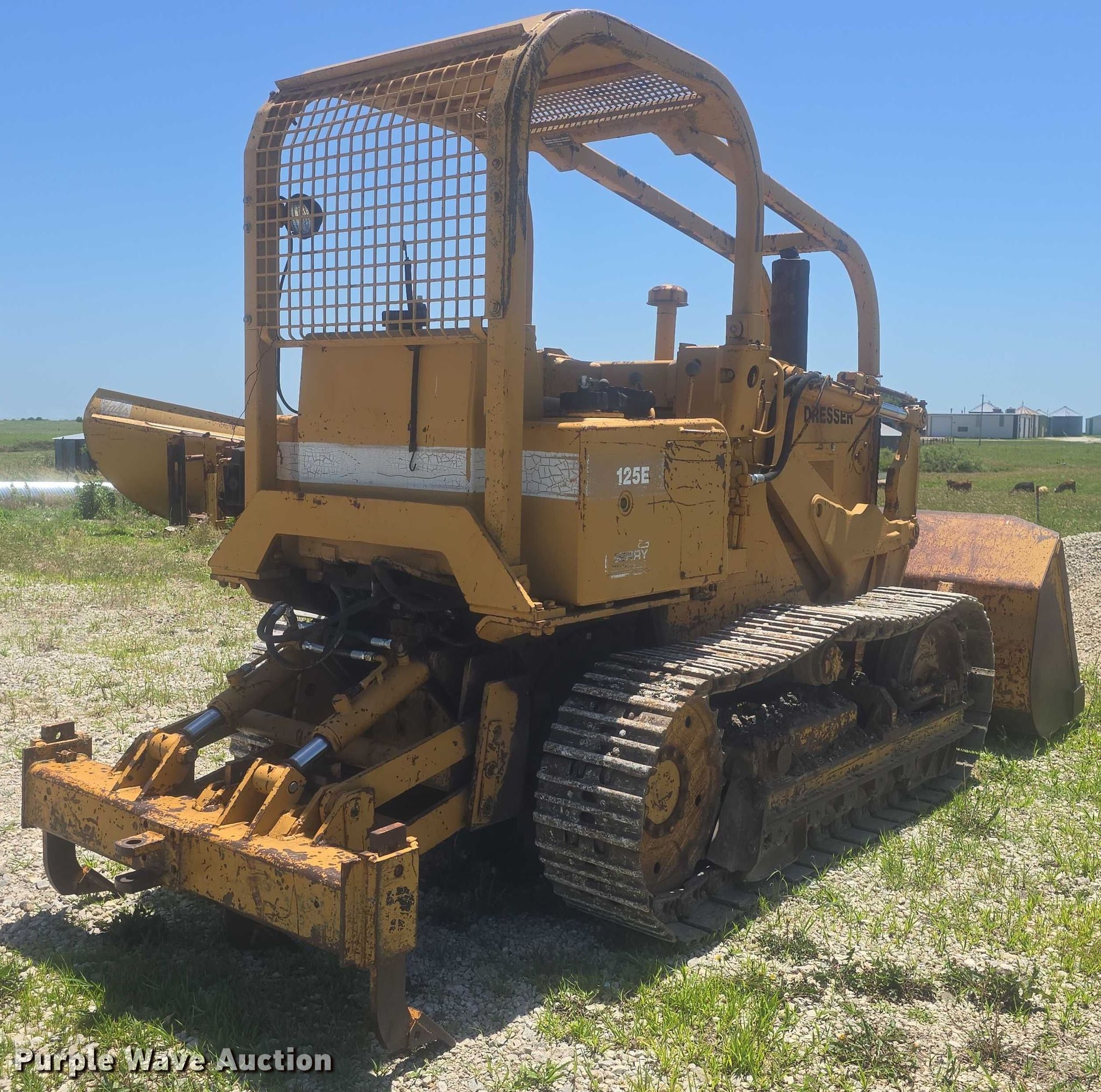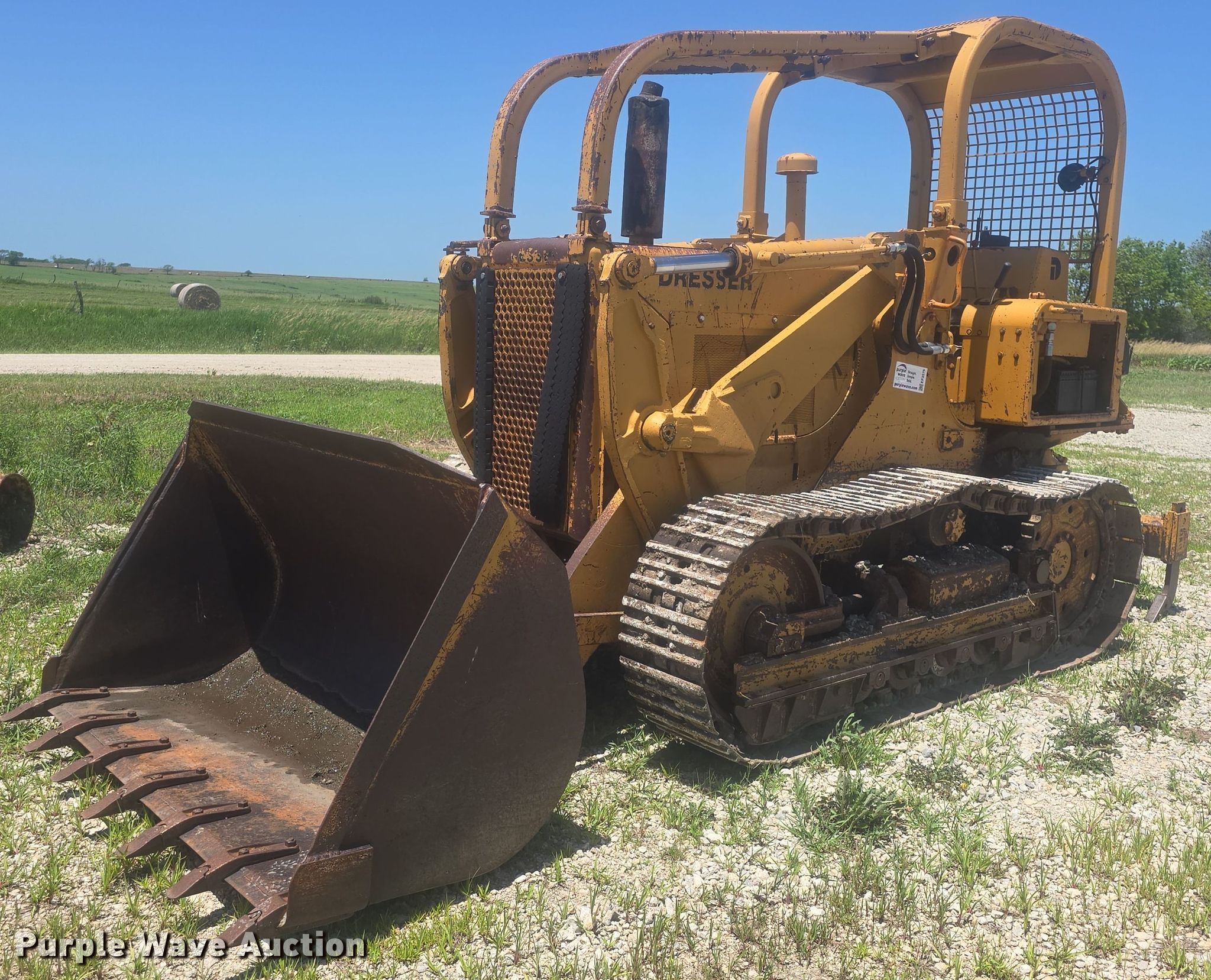 1987 Dresser 125E track loader. Hours: 2,505 on meter, Serial: 4500011U009866. Engine Fuel type: Diesel. Transmission Powershift, 3F - 3R. Operators station OROPS, Bucket controls: Two-lever, Vandal cover. Features Bucket Width: 72", Teeth: 7, Rear ripper Dresser, Shanks: 3. Tracks Width: 14", Grouser pads: Triple. Notes Dead battery. Mission Creek Township. Eskridge, KS 66423