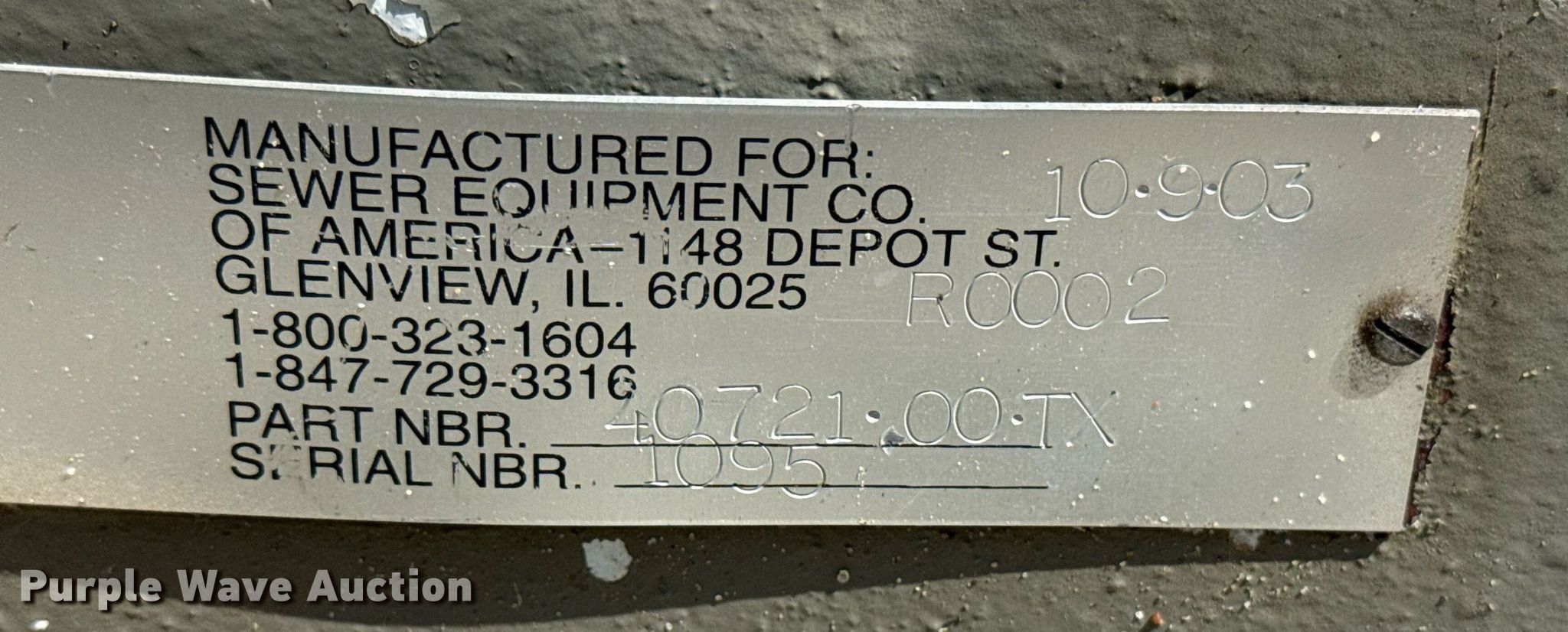 Purple Wave is selling a used Pump in Oklahoma. This item is a 2003 Bean 4072100TX pump with the following: Serial: 1095