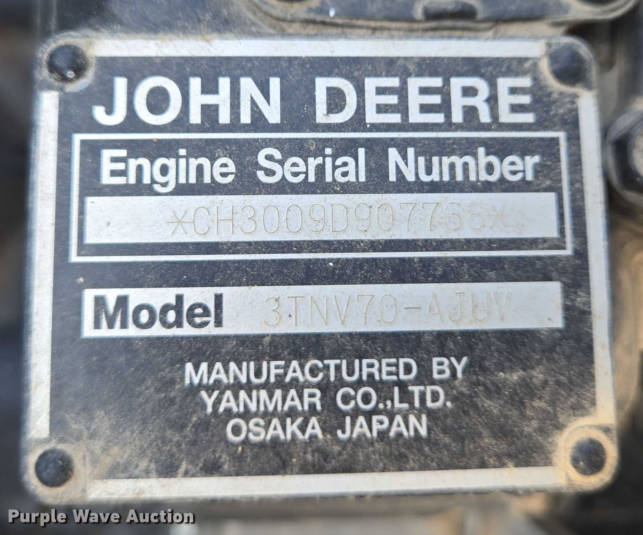 2010 John Deere Gator utility vehicle. Hours: 161 on meter, VIN: 1M0855DSEAM011406. Engine John Deere 3TNV70-AJUV, Displacement: 0.854L, Cylinders: 3, Fuel type: Diesel, Electric start. Transmission Automatic. Chassis Four wheel drive/ All wheel drive. Operators station OROPS. Features Grille guard, Receiver hitch, Dump bed 45" L x 56" W, Dump bed type: Electric/ Hydraulic. Tires Front: 26x9.00-12, Rear: 26x11.00-12. Notes Transmission issues, will not go into reverse Possible linkage issues. Transfer of ownership documentation will be a bill of sale. City of Bernie. Bernie, MO 63822
