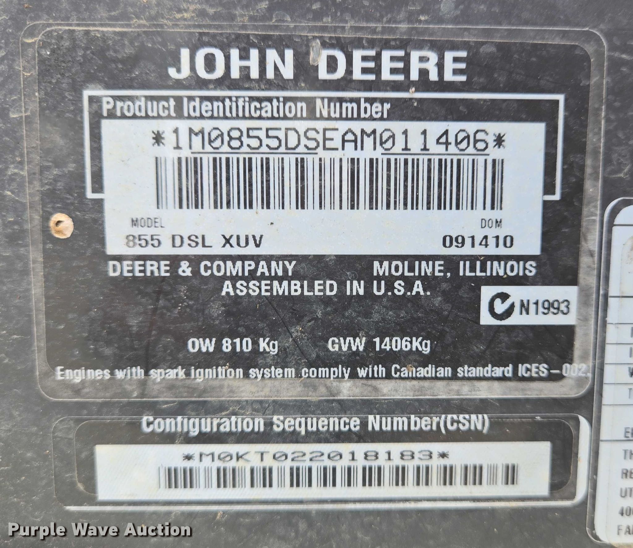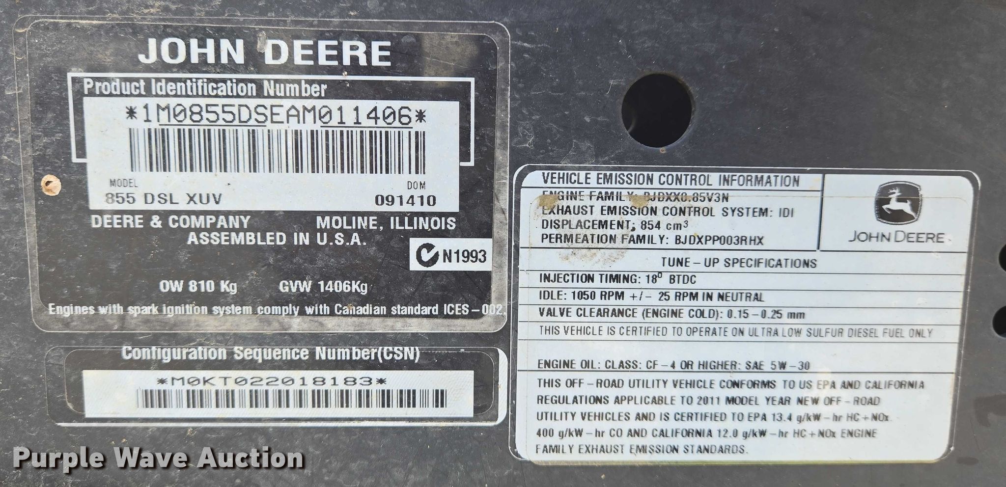 Purple Wave is selling a used Utility Vehicle in Missouri. This item is a 2010 John Deere Gator utility vehicle with the following: Hours: 161 on meter, VIN: 1M0855DSEAM011406