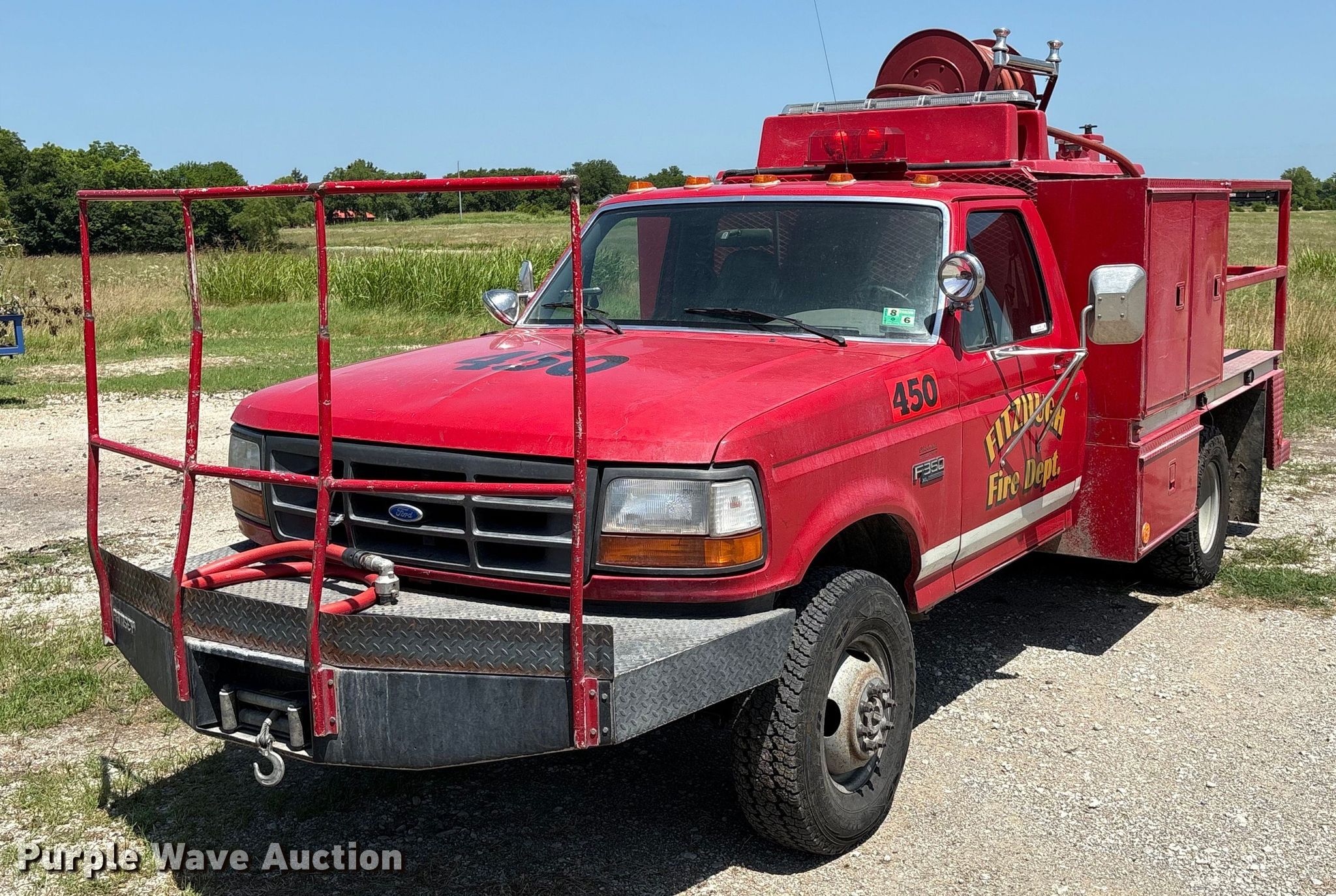Purple Wave is selling a used Fire Truck or Emergency Vehicle in Oklahoma. This item is a 1995 Ford F350 XL brush fire truck with the following: Miles: 10,636 on odometer, VIN: 2FDKF38G5SCA69476