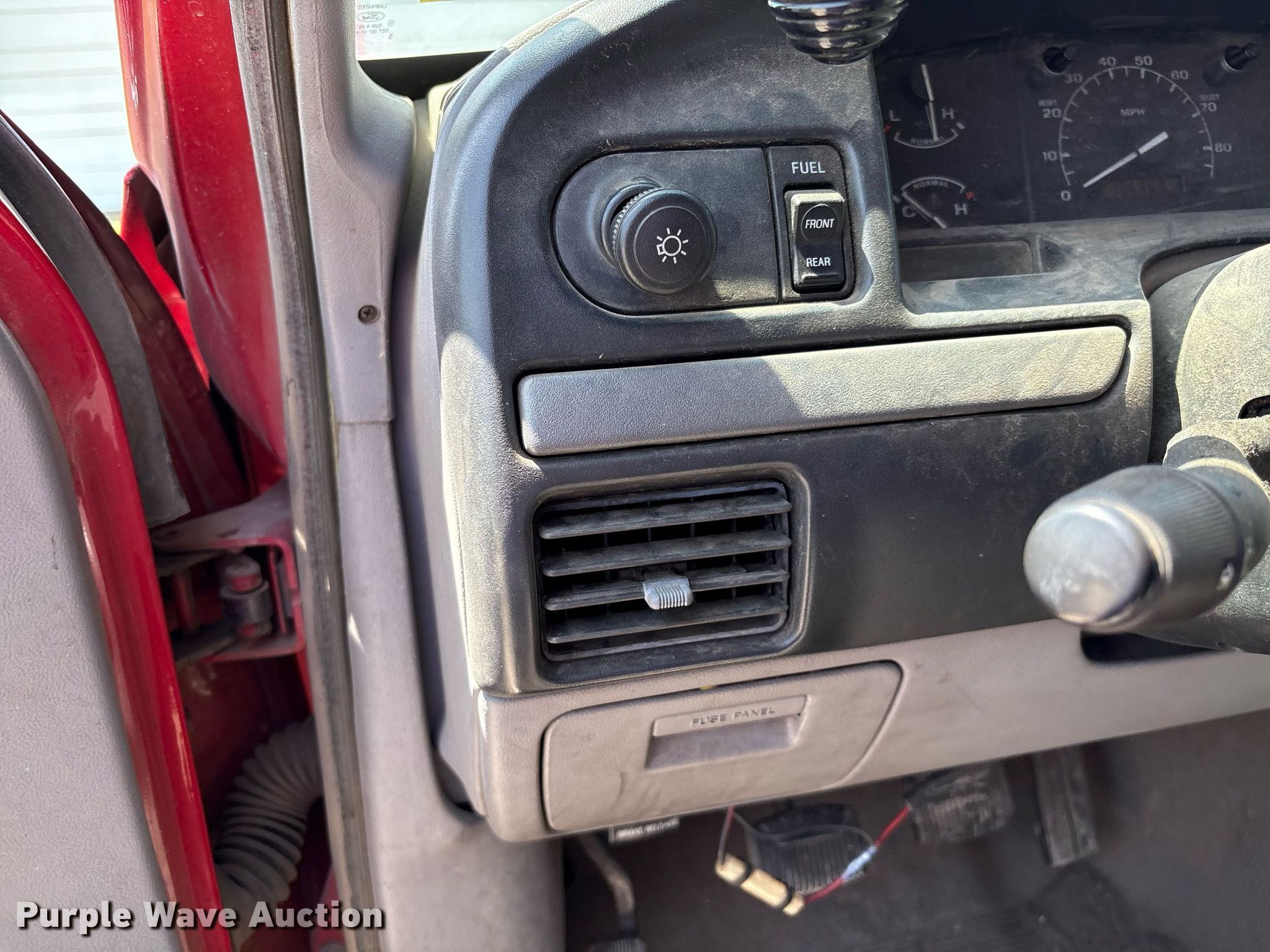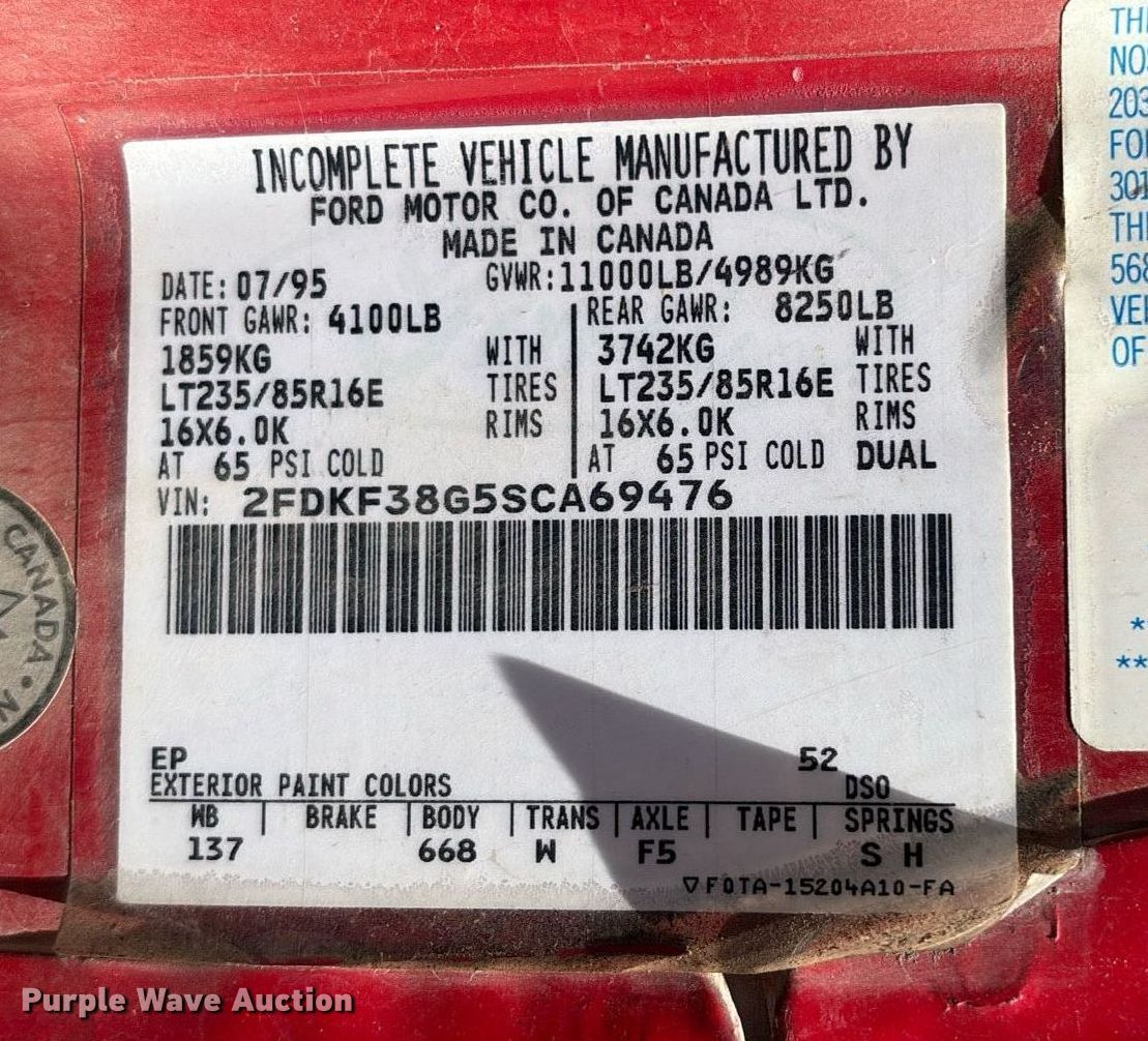 1995 Ford F350 XL brush fire truck. Miles: 10,636 on odometer, VIN: 2FDKF38G5SCA69476. Engine Displacement: 7.5L V8 OHV, Cylinders: 8, Fuel type: Gas. Transmission Manual, Speed: 5. Chassis Four wheel drive, Axles: Single, Suspension: Spring, Brakes: Hydraulic, GVWR: 11,000 lbs, Wheelbase: 137". Interior AC, Heat. Features Fire truck body Chief, Tank Capacity: 300 gallons, Pump Pump engine Briggs & Stratton Vanguard, Displacement: 570 cc, Cylinders: 2, Fuel type: Gas, HP: 18, Hose reel. Tires Size: LT235/85R16. Notes Dash warning indicator: Brake. Oklahoma title. Title distribution may be delayed up to 14 days from verification of funds. Roff, OK 74865