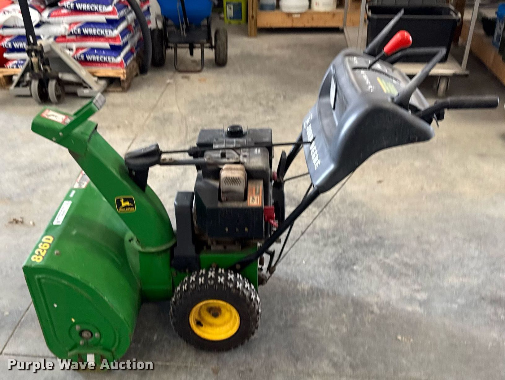 Purple Wave is selling a used Lawn and Garden in Iowa. This item is a John Deere 826D snow blower with the following: Serial: M0826DX190021