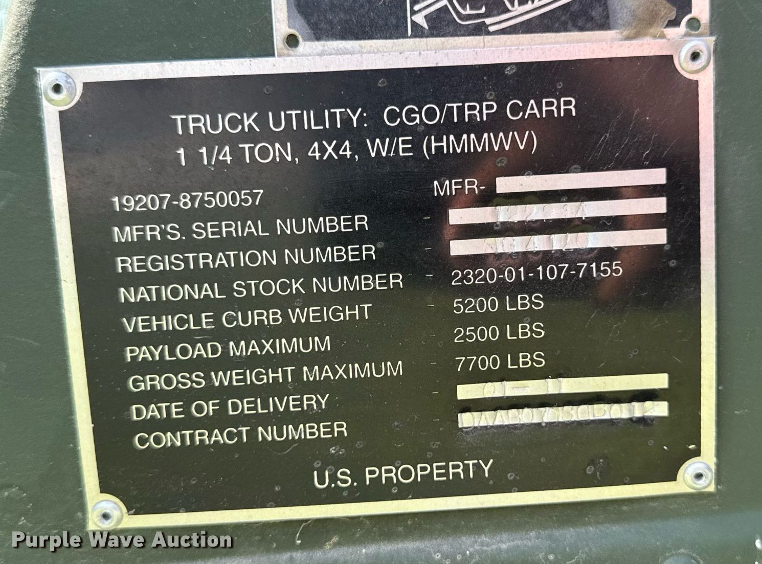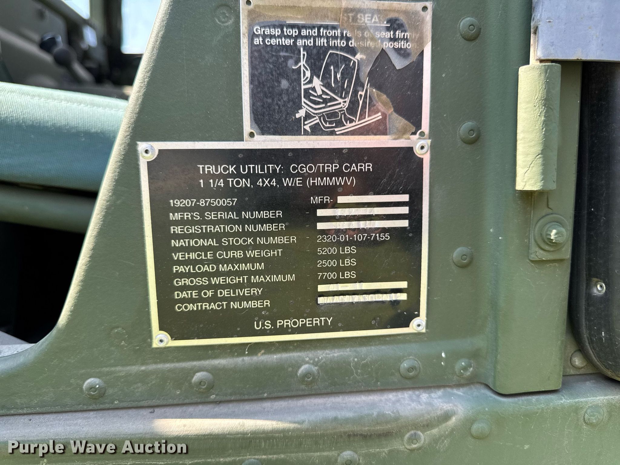 Purple Wave is selling a used Passenger Vehicle in Iowa. This item is a 2011 AM General M998 SUV with the following: Miles: 6,053 on odometer, VIN: 122214