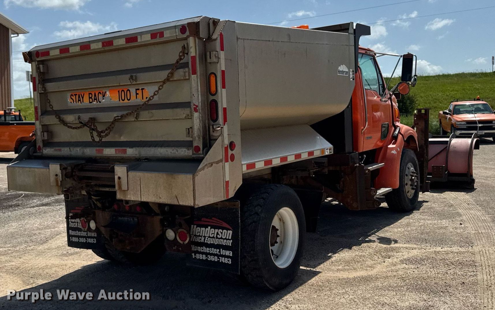 2005 Sterling L7500 series dump truck. Miles: 106,077 on odometer, VIN: 2FZAATDC75AU91995. Engine Caterpillar C7, Displacement: 7.2L, Cylinders: 6, Fuel type: Diesel. Transmission Automatic. Chassis Axles: Single, Suspension: Spring, Brakes: Air, GVWR: 39,000 lbs FAWR: 16,000 lbs, RAWR: 23,000 lbs. Interior AC, Heat, Heated mirrors, Cruise control. Features Dump bed Henderson 10x34xCONVx304ss, 6' 6" L x 96" W, Side height: 54", Bed type: Steel, Ram: Single, End gate: Air operated, Plow Henderson 11x42xISxPOLY, Width: 132", Wing plow Henserson. Tires Front: 315/80R22.5, Rear: 11R22.5. Notes Wing plow in box, Dash warning indicator: Check engine, ABS, Engine protect, Windshield chipped or cracked, Dead battery. Iowa title. Title distribution may be delayed up to 14 days from verification of funds. Marion, IA 52302