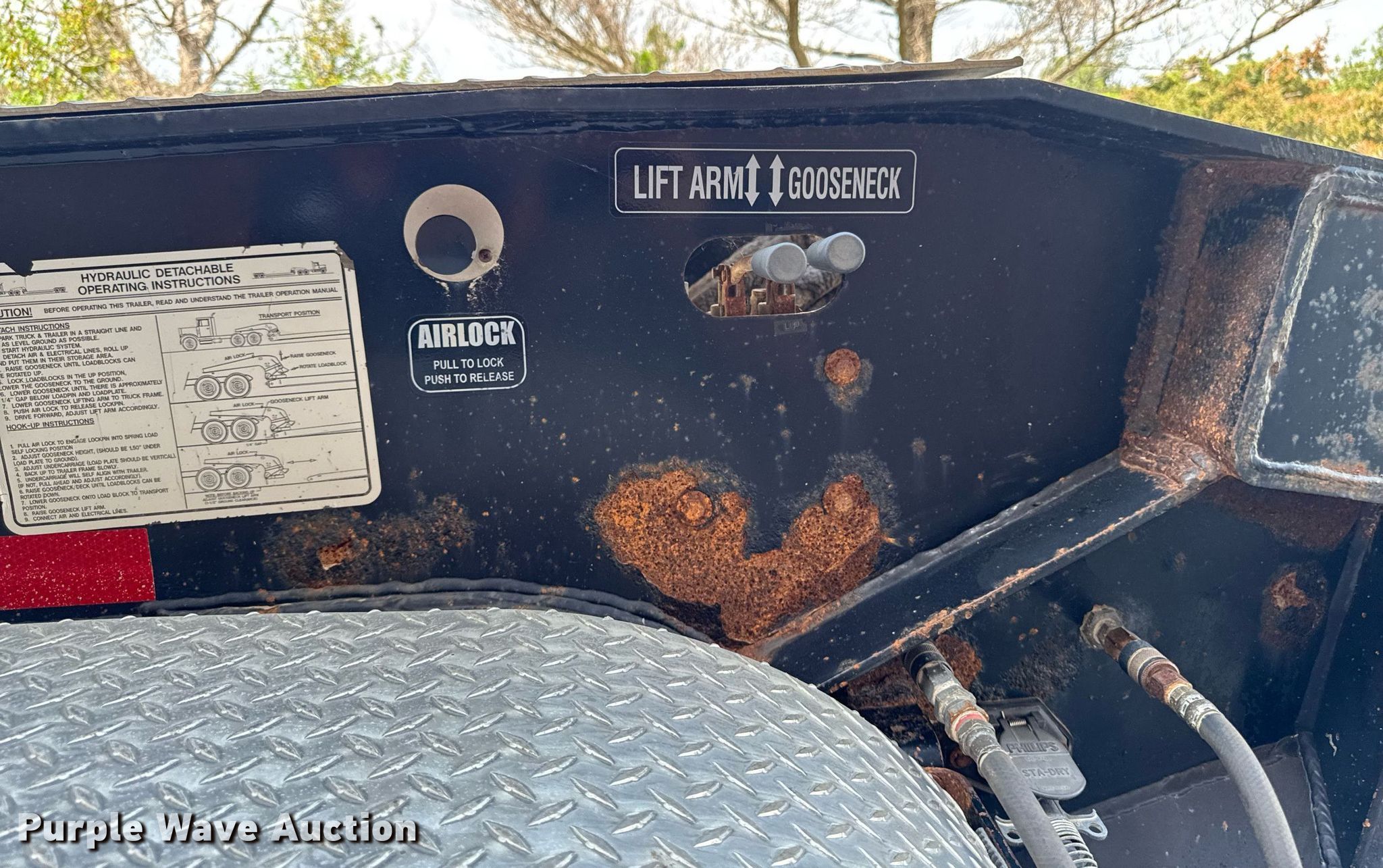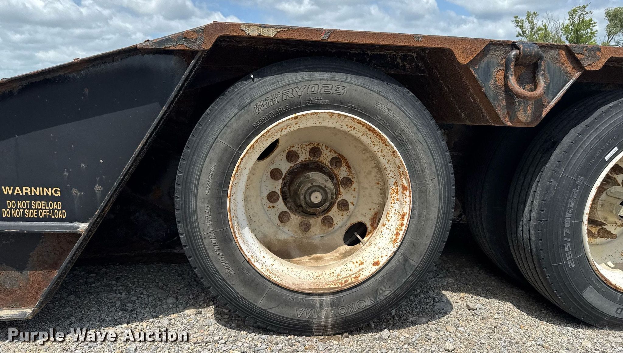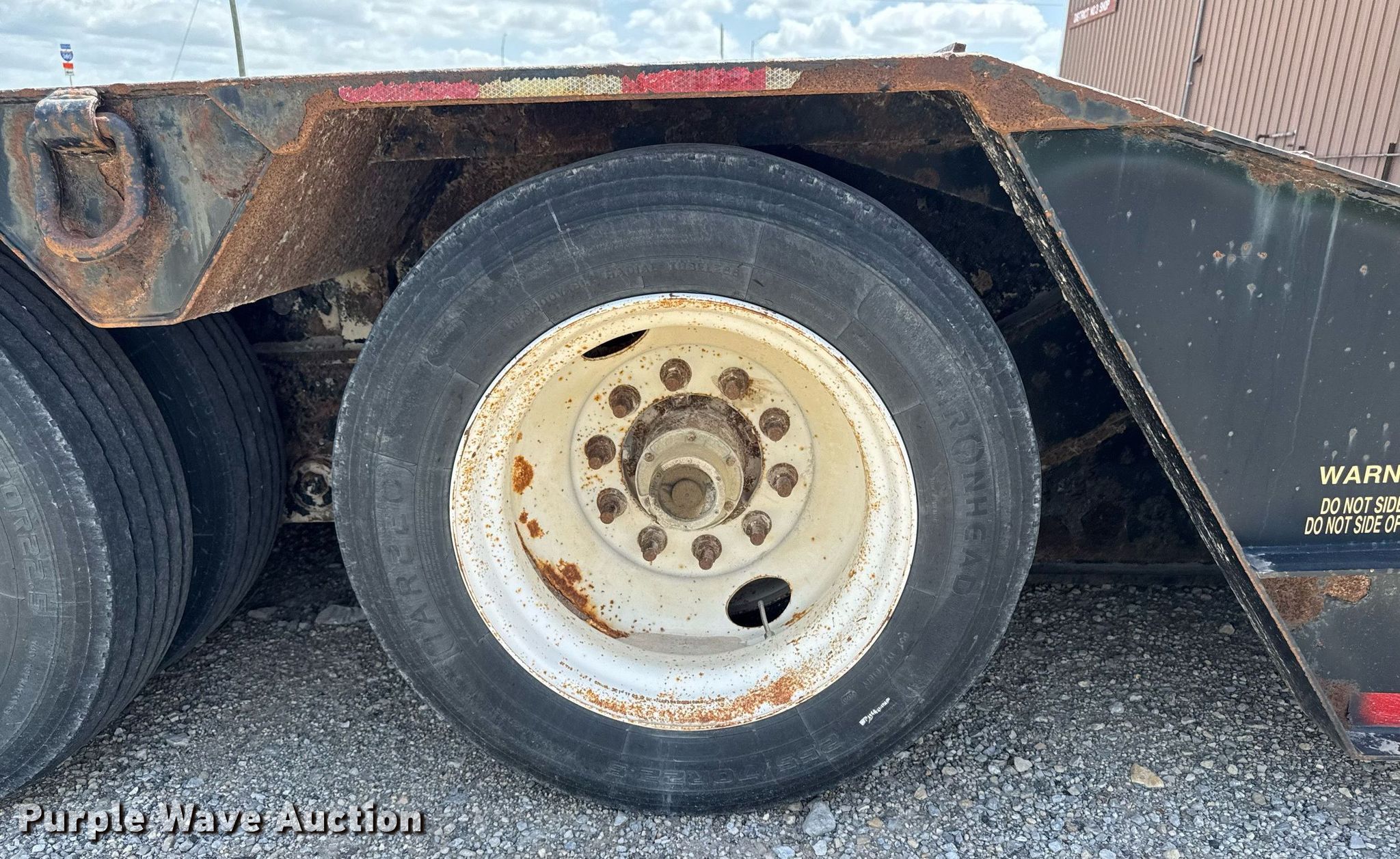 2013 Dynaweld LB52-24DPS lowboy equipment trailer. VIN: 5JYLB5239DP105209. Dimensions Overall: 52' L x 102" W, Deck: 27' L x 102" W, Rear deck length: 17', Ramps: Manual Length: 4'. Features Deck type: Steel, Wood, Outriggers: Swing-out Board size: 14", Neck type: Detachable, Hydraulic controls: Manual. Chassis Suspension: Air, Brakes: Air, Axles: Triple, GVWR: 130,500 lbs, GAWR: 20,280 lbs. Tires Steel wheels, Size: 255/70R22.5. Notes Semi not included. Iowa title. Marion, IA 52302